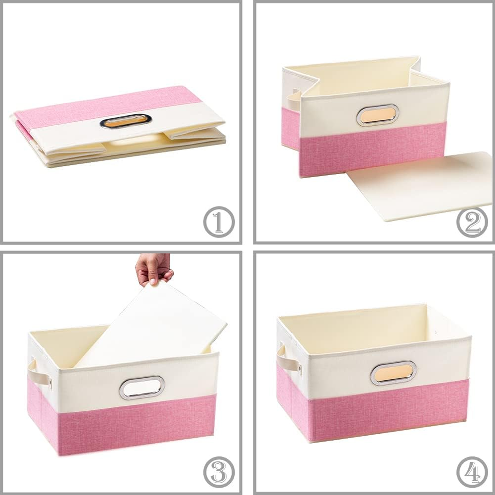 Fodable Storage Bins for Closet [3-Pack] Decorative Fabric Storage Baskets Cubes with Leather/Metal Handles for Shelves Bedroom Living Room Pink&Cream (11.5X8.5X6.7 Inch) 【High Quality】Made of high quality polyester fabrics , fabrics durable material, and it doesn't have any odor.The handle is made of stainless steel, Never rusts! 【Fashionable Bins】Designed to match interior decor and style in any room in the home or office. Enjoy the relaxing ambiance of the soft pink&Cream neutral color scheme. 【Space Saving】Sturdy side design makes these bins collapsible which will take full advantage of your closet shelf, and also can be folded flat to save space when not in use. 【Small Dimension】:In year 2025’s new inventory,we have increased the storage container dimension to 11.5”x 8.5”x 6.7”,which can allow you to hold much more stuff such as clothes,,magazines,books and anything else,it is very convenient and practical. Specifications: Material : Linen+polyester Color: Pink&Cream(3 pack) Stackable Wash: Wipe with a clean cloth,not washable Specific : No odor / No smell / Good Workmanship Size: 11.5 L x 8.5 W x 6.7H" Shipping List: 3 x Box Body 3 x Bottom Board 3 Multi-Purpose Usage: Perfect For - Closet & room clothes storage - Bathroom tissue and sundry storage - Dog, cat, or pet and treat storage - Craft room, crochet, or knitting yarn storage - Pantry dry goods organization - Shelf organizers - Beauty, makeup, and hair supplies storage - Laundry room storage - Living room DVD, book, and media storage - Kids , plush, or clothes storage - Linen and towel storage Storage Volume 0.01 Liters Style Classic Number of Items 3 Item Package Quantity 3 Unit Count 3 Count Color Pink&cream Material Polyester Item Weight 1.59 pounds Batteries required No Shape Rectangular Opening Mechanism Lift-Off Lid Recommended Uses For Product Toy storage, Books, Clothes, Bathroom tissue, Pet supplies, Yarn, Dry goods, Beauty products, Laundry items, DVDs, Books, Toys Number of pieces 3 Special Feature Collapsible Product Dimensions 11.5"L x 8.5"W x 6.7"H Size Medium(3-Pack) Shipping Fast shipping is very important for us. Returns and payment FeedBack Your feedback very important to us, after you get your package and you are satisfied with our service please leave us positive feedback If you have any problem with your order / any questions please before leave any type of feedback For any questions, using eBay contact system Please visit our eBay store to check out other items for sale! Thank you for shopping at our store.