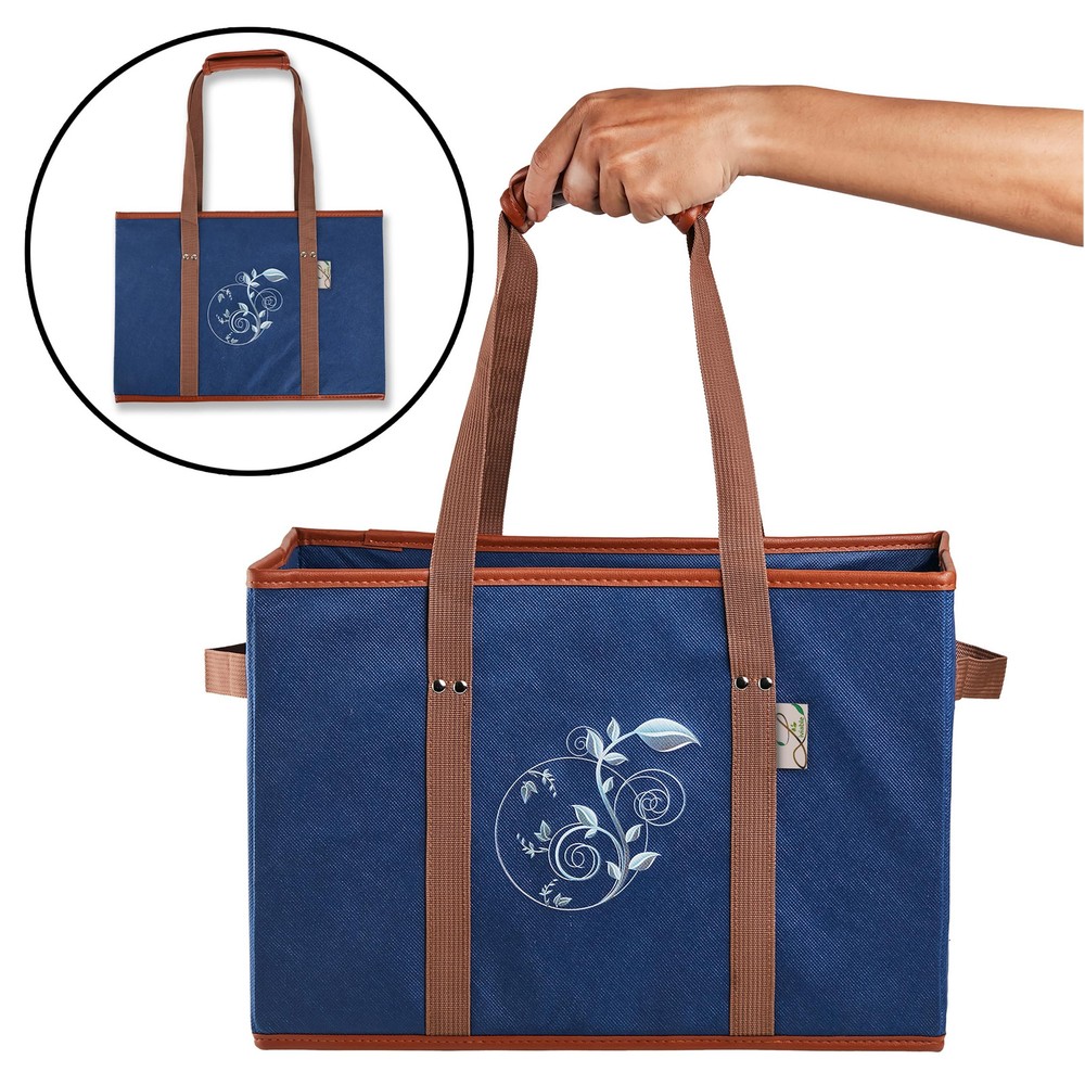 MULTIPURPOSE REUSABLE TOTE BAGS: Designed for on-the-go and eco-friendly lifestyles. A heavy-duty collapsible tote, box bags, baskets that are great for grocery, shopping, beach trips, picnics, camping, potlucks, travel, farmer’s market, and so much more. These tote bags are presentable and well-designed that can also be utilized as souvenirs, favors or gifts during holidays, birthdays, and special occasions. STRONG, REINFORCED HARD BOTTOM: Utility large tote bags that are designed with fold-out solid hard bottom that provides enhanced stability, balance, and control when you’re carrying dry food goods, bottles, and bulk groceries. Each bag can support up to 60 lbs. Durable as food container carrier for transport and travel. LIGHTWEIGHT with LONG SHOULDER HANDLES: Woven with a thick, non-woven fabric, compact and foldable for easy to go travel use. Features a well-made handle that is durable and a 12-inch-long shoulder handle so you can carry it more easily and comfortably when it’s full. SHOPPING CART, TRUNK, or CLOSET STORAGE ORGANIZATION: Has extra-large capacity that can fit 8 milk cartons (1.89L). Tote bags can also be used in areas where you need extra space-saving storage because this is suitable as storage bin and organizer for bedroom closet, kitchen, pantry, car, trunk, and children’s toys. Sturdy shopping tote bags that can fit perfectly in standard shopping cart and car trunk. ECO-FRIENDLY and SUSTAINABLE SUPPORT: A grocery shopping bags that offer long-lasting reusability which is important for reducing reliance on plastic bags and paper bags. Linings and handles are supported using polyurethane materials which are sustainable, more eco-friendly and no animal products used in any part of its creation. Overall endorses an environmental and vegan friendly tote bag. CARE DIRECTIONS: These tote bags are easy to maintain. To keep it looking new, clean with a damp cloth then simply air dry. When not in use, it is easy to . Hard bottom board is enclosed and can be folded easily. Ideal space saver when folded flat.