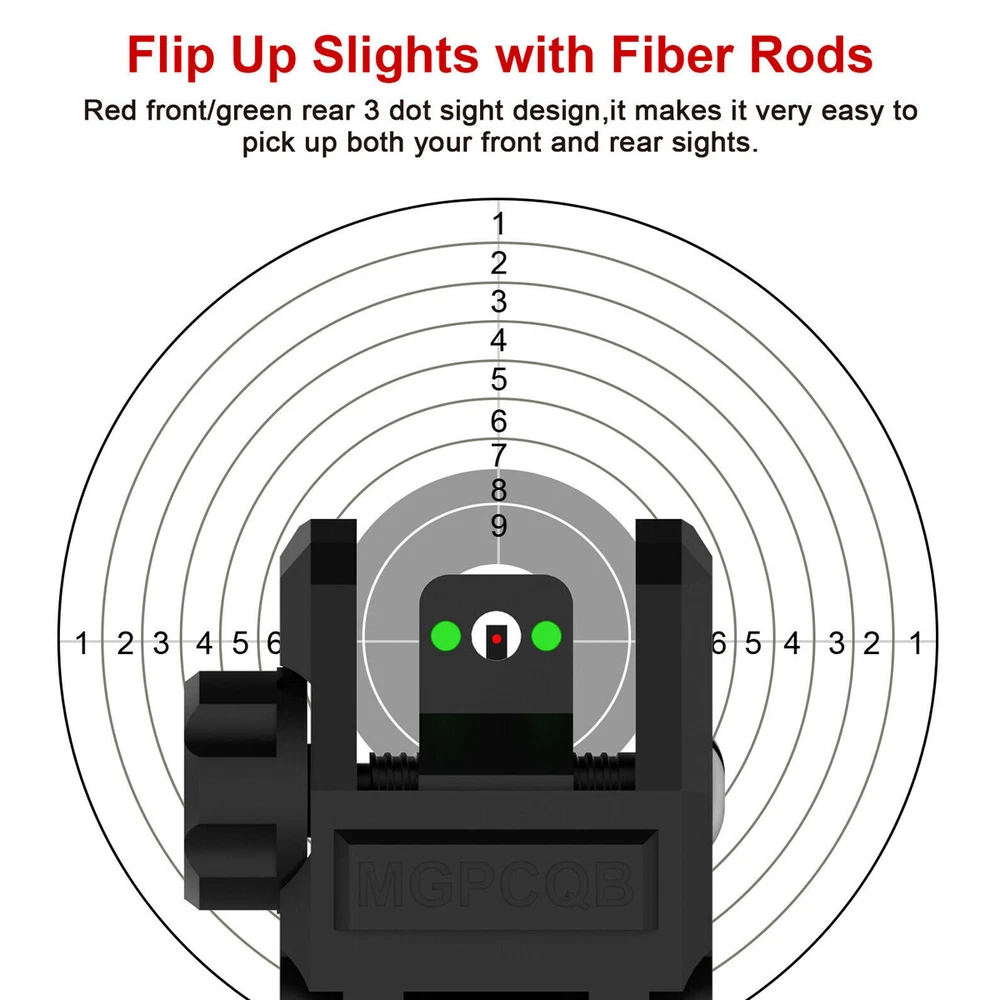 Foldable Iron Sights Flip-up Front and Rear Sight Fiber Optics Dual Aiming New