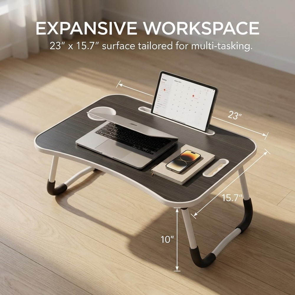 Store New Arrivals Add to Favorite View Feedback Contact Foldable Lap Desk Bed Tray Table with Cup Holder & Tablet Slot Black Description Item model number BY-LAP Deep Black Style Modern Assembly Required No Color Black-gold Material Wood Item Weight 4.76 pounds Age Range (Description) All Included Components Cup Holder, Stand Groove Special Feature Adjustable Product Dimensions 23"D x 15.7"W x 10"H PERFECT SIZE: This Laptop Bed Desk Dimensions: 23"(L)x15.5"(W)x9.65"(H). Ergonomic size and height for comfort whether you're sitting cross-legged on the sofa or lying in bed with your legs outstretched. INGENIOUS DESIGN: Foldable Lap Desk Not only comes with stand groove for iPad, phone, tablet or Kindle, but also comes with a table cup holder for great storage of cups. MULTIFUNCTIONAL LAPTOP BED DESK: Ideal for work, study, reading, watching movies, eating, on bed, sofa, balcony, floor, outdoor, etc. Widely used as laptop desk, kids bed table, dining bed tray, mini writing desk, office standing desk, book/ Tablet table, picnic table PORTABLE FOLDABLE LAPTOP TABLE:Open the table legs to use (no installation required). After use, fold this down to a compact size and store it next to the sofa or under the bed without taking up too much space. AFTER-SALES SERVICE: If there are any question about your model please free to contact with us. We will do our best to provide you with satisfactory service. Product description Our folding table, meticulously crafted to meet all your needs Experience the perfect blend of style,convenience, and durability with our folding lap desk Space-saving solution with BUYIFY versatile folding table Surprise your loved ones with a folding table – a present they’ll appreciate and use year-round! Available in multiple colors ABOUT US We offer the best prices around on high quality products. Our E-store includes media such as books, movies, music and games while offering electronics, toys, sporting apparel, clothing, tools, general home, garden items and more. SHIPPING We are always working hard to ensure your package arrives as soon as possible. Please understand that some factors like weather, high postal traffic, and the performance of shipping companies are outside of our control. We offer free shipping to the lower 48 states and ship within 2 business days of payment, usually sooner. We do not accept P.O. Boxes. Please provide a physical address. For shipping outside of the continental USA, we only use eBay's Global Shipping Program.The item is shipped to KY and then sent to the rest of the world. International customers are responsible for all duties and taxes. Continue to check out in order to calculate costs for shipping the item to your country. Messages regarding eBay's Global Shipping Program MUST be directed at eBay EXCLUSIVELY. RETURNS We offer a 30-Day Return Policy on items which you are not completely satisfied with. You have the option for a full-refund or an exchange of the item. No returns are available on items shipped outside of the USA. PAYMENT We accept PayPal. CONTACT US This page content is yet to come Please ad us to your favorite seller and visit again later Thank You CUSTOMER SATISFACTION We try our very best to make sure every customer is completely satisfied. If there's a problem, message us! We're happy to help. WE ACCEPT