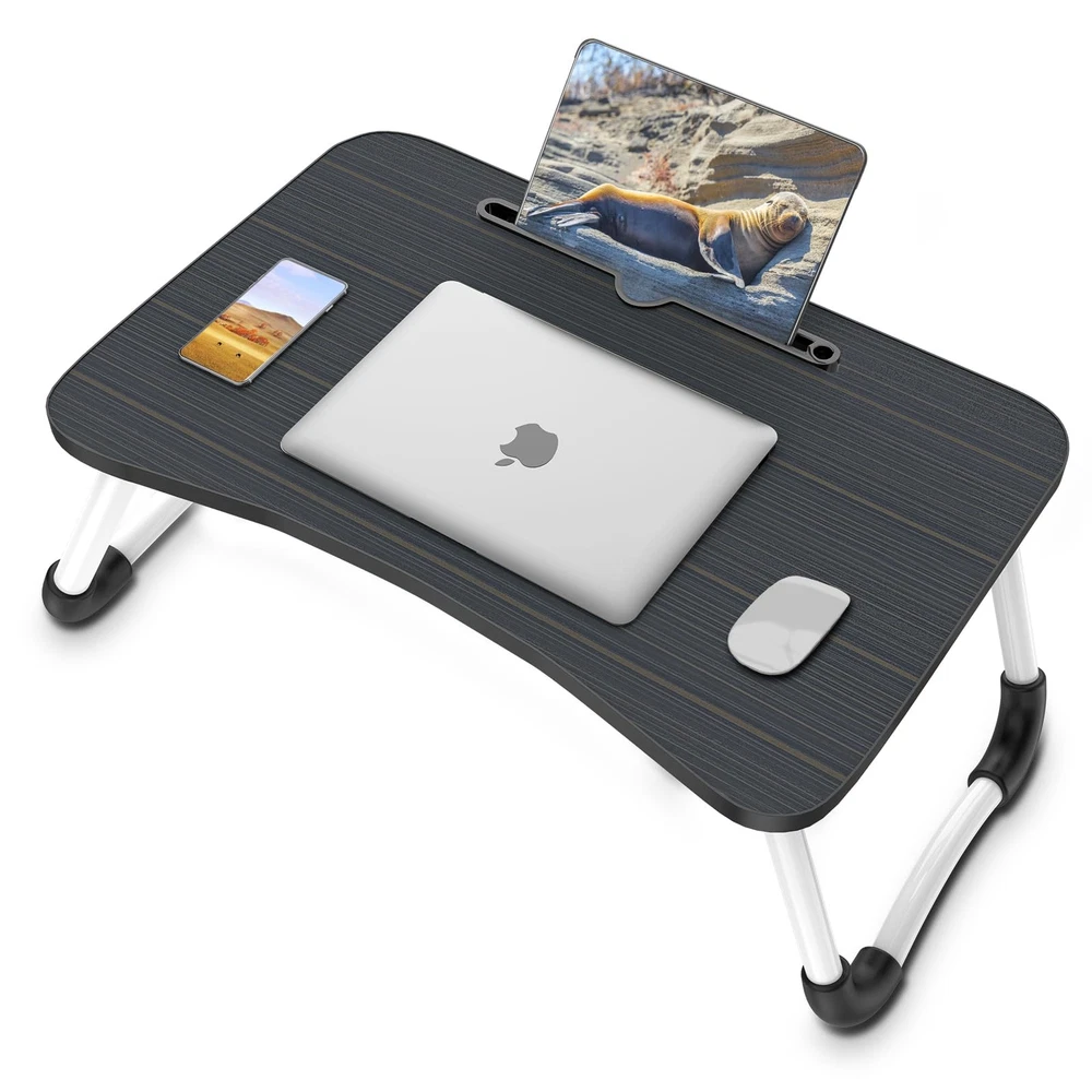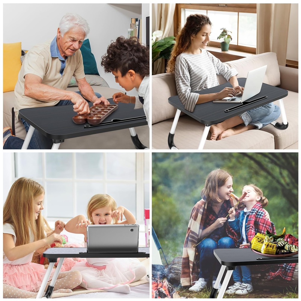 This laptop bed desk is designed for people who want to relax on the bed, sofa, or floor while working, reading, eating, and playing games. It's perfect for using in bed, on the sofa, and on the floor to work, watch movies, read books, play games, eat breakfast, and paint. The laptop desk is made of high-quality MDF and metal, making it lightweight and stable. The comfortable height of the laptop stand is suitable for people of enjoy life. The tablet slot is perfect for placing tablets or mobile phones, and the anti-slip legs design keeps your devices stable and secure. The laptop bed desk is easy to carry and store. 💦【Portable & Foldable Laptop bed desk】This laptop bed tray is designed for comfortable use in bed, on the couch and on the floor. The laptop bed table set it up at the most comfortable height for reading, eating, working and playing games. The laptop stand for bed is easy to carry and store, very suitable for home, office and travel. 💦【Sturdy & Stable Lapdesk】This laptop desk for bed is made of high-quality MDF, solid wood particle board, safe and environmentally friendly, which is strong and durable. The foldable legs have 4 anti-slip pads, which is stable and not easy to shake. The size of laptop lap desk is enough big 23.6"(L)x15.7"(W)x10.3"(H), which can meet the daily use of various electronic devices. 💦【Multiple Functions】This laptop bed table tray can be used as a laptop stand, reading stand, dining table, writing table, snack tray, office work, picnic/camping table etc. The comfortable height and ergonomics design are very suitable for different situations, which can provide you with a comfortable using experience. 💦【Humanized Design】Curved table desktop base on ergonomics principle, laptop tray table comes with slot for iPad, phone, tablet or Kindle. The legs of the laptop desk can be folded and carried easily, easy to use and store, lightweight and portable, convenient for you to use at any time. 💦【Easy to Carry & Store】 This laptop bed desk is lightweight and foldable. You can take it to any place you want to go. The laptop desk can be stored in a small space when it is not in use. If you have any questions, welcome contact us freely, we will give you a satisfied solution.