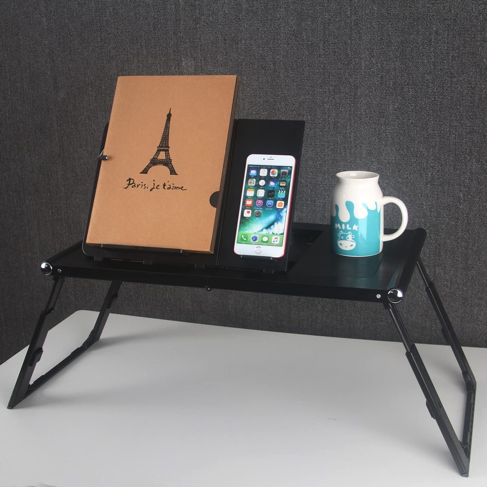 【Ergonomic Laptop Bed Tray Table 10 Levels Adjustable】 Why Choosing Our Laptop Desk? 【Ergonomic Design 10 Levels Adjustable Laptop Bed Table】 Lap-desk with 10 angle settings available,will hold your notebook,keyboard or tablet at an ergonomic angle design, which adjust to suit the best visual and prevent eyestrain and even eliminate hand fatigue. Bring you comfort and operational experience,and the baffles prevents laptops from sliding off. 3【Steady And Durable】 laptop table is made of MDF,safe and environmentally friendly. Curved desktop edge,so you can feel comfortable when using. The surface is smooth, non-toxic, moisture-proof, scratch-resistant,high-temperature resistant. 4【Anti-slip】 The feet of the Lap-desk are covered with plastic non-slip sleeve for good anti-slip effect. 5【Fit Laptops Up to 17Inches】 The size of laptop desk is :21.7’x12.6’x9.9 ,17 inch laptop is a piece a cake. Enough room for you to place large size laptop or books when you struggles in the homework. 6【Multi Function Lap Desk】 The item is not only a portable laptop table, put the table on a regular table and stand up to work, this will help relieve neck and shoulder pain. The notebook desk also acts as a breakfast or snacking tray,Camping Floor,a laptop bed stand for relaxing in bed,or a book/tablet stand. 7【12 MONTHS QUALITY WARRANTY & MONEY-BACK GUARANTEE】 Satisfied Service with 60 Day MONEY-BACK Guarantee and provide the 12 MONTHS QUALITY WARRANTY to our customers. Please contact us if you have any question during using and we will solve your problem until you are 100% satisfied! ✅【10 Adjustable Angles+2 Adjustable Heights】laptop bed desk with 10 angles setting and 2 Adjustable Heights,you can adjust the height and angle the way you like.✅【Friendly Design:tablet Clamp and Baffles】During the epidemic,you can use the bed tray for books or laptop,the tablet Clamp and Baffles pevent your laptop or book from sliding off.It can ease your eyesight and neck problem.Great for proper back and neck positioning, no more hunching over all day! ✅【Great Heat Dissipation】The Adjustable Lap desk with 2 Built-in USB Cooling Fans, Simply plug the fan into your laptop USB port,helps to cool your laptop CPU and extends its sustainable working time,perfect for your longtime using on the laptop. It's effective and quiet. This is a pleasant upgrade design, which has been praised by many customers.✅【No assembly required】 Just open it and just Insert the L-bolt into the Fixing Hole to make the desk more Stable. ✅【Large Bed Tray,Fit Laptops Up to 17Inches】 laptop desk size:21.7’x12.6’x9.9’,17 inch laptop is a piece a cake.Enough room for you to place large size laptop or books when you struggles in the homework.✅【Multi Function Lap Desk】It's not only a portable laptop table,put the table on a regular table and stand up to work,this will help relieve neck and shoulder pain,but also it acts as a breakfast or snacking tray,Camping Floor, a laptop bed stand for relaxing in bed,or a book stand. ✅【Steady And Durable】laptop table is made of MDF,safe and environmentally friendly.Curved desktop edge,so you can feel comfortable when using.The surface is smooth, non-toxic, moisture-proof, scratch-resistant.【Anti-slip】The feet of the Lap-desk are covered with plastic non-slip sleeve for good anti-slip effect. ✅【12 MONTHS QUALITY WARRANTY & MONEY-BACK GUARANTEE】Satisfied Service with 60 Day MONEY-BACK Guarantee and provide the 12 MONTHS QUALITY WARRANTY to our customers.Please contact us if you have any question during using and we will solve your problem until you are 100% satisfied!
