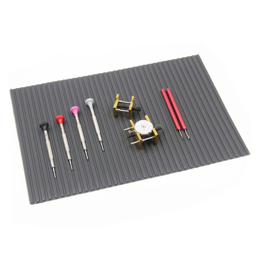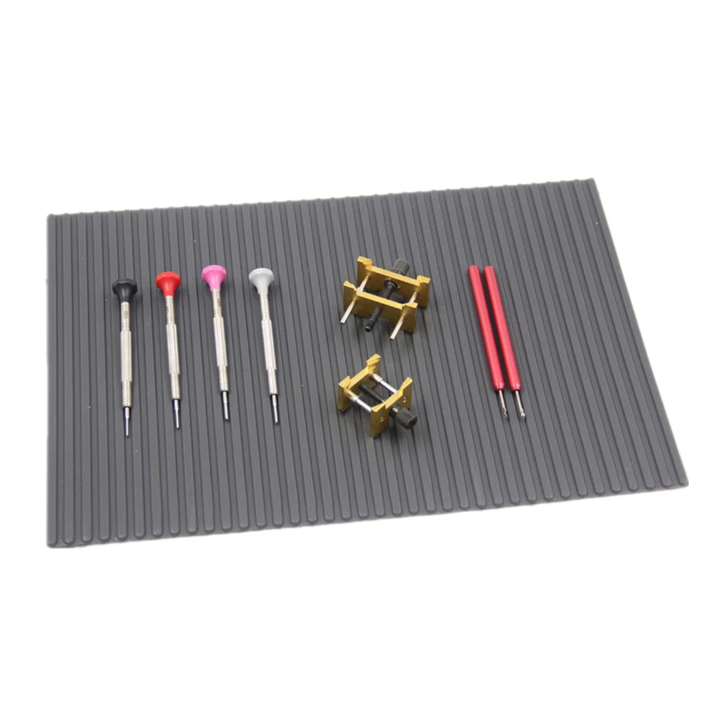 Product Description Features: Made of quality rubber material, which is durable, sturdy and for long time use. Can place watch repair tools and avoid sliding away, keep the work table clean. Protect your watch tool from scratch, suitable for various watch repair tools. The mat is folding, storage does not take up space and is easy to carry. Suitable for watchmakers and watch repairing workers to use. Specifications: Condition: 100% Brand New Item Type: Watch Mat Material: Rubber Size: Approx. 29x20.5cm/11.4x8.1in Package include: 1 x Watch Mat Shipping Returns Contact Us Payment 1. Items sent from US warehouse. 2. Receiving time = Processing time + Shipping time. 3. Pro cessing Time: Around 1-2 business Days. 4. Shipping Time: 3-5 business day. it may have a little delay during some holiday (such as Christmas), any problem, please feel free to contact. 1. 30 days warranty from the purchased date. Please contact us via email before returning the defective item. 2. Our warranty does not extended to any product that are physically damaged or that are not under normal operating conditions as result of misuse or improper installation on the buyer/user's part. 3. Return items should include the original packaging and all accessories. buyers MUST contact us for the returning address. 4. In all cases, buyers pay shipping fees at their own cost to return products for exchange or refund. We will be responsible for the postage of replacements. Refund will be made upon receipt of the returned item. If you have any question, please e-mail us immediately, we will reply you as quickly as possible. We care about our valued customers, and will always try to help you. We accept all verified payment from eBay. Shipping 1. Items sent from US warehouse. 2. Receiving time = Processing time + Shipping time. 3. Pro cessing Time: Around 1-2 business Days. 4. Shipping Time: 3-5 business day. it may have a little delay during some holiday (such as Christmas), any problem, please feel free to contact. Returns 1. 30 days warranty from the purchased date. Please contact us via email before returning the defective item. 2. Our warranty does not extended to any product that are physically damaged or that are not under normal operating conditions as result of misuse or improper installation on the buyer/user's part. 3. Return items should include the original packaging and all accessories. buyers MUST contact us for the returning address. 4. In all cases, buyers pay shipping fees at their own cost to return products for exchange or refund. We will be responsible for the postage of replacements. Refund will be made upon receipt of the returned item. Contact Us If you have any question, please e-mail us immediately, we will reply you as quickly as possible. We care about our valued customers, and will always try to help you. Payment We accept all verified payment from eBay. You may also like 2Pcs Dryer Roller Wheel Drum Support Kit Replacement Part For Maytag Whirlpool 18.91 USD 3.99 USD 8PCS Hair Clipper Cutting Guide Combs With Metal Clip Replacement Tools For WAHL 13.38 USD 3.99 USD Leather Cushion Face Cover Eye Foam Mask Pad Anti-Sweat For Oculus Quest 2 VR 15.94 USD 18 Grids Watch Tiny Parts Storage Box Plastic Repair Acc Container + Dust Cover 11.75 USD Metal Bead Eyeglass Chain Glasses Strap Holder Lanyard Sunglasses Non-slip 8.93 USD Soft Rubber Dust Blower Air Pump Cleaner Watch & Camera PCB Repair Cleaning Tool 4.61 USD 3.99 USD powered by