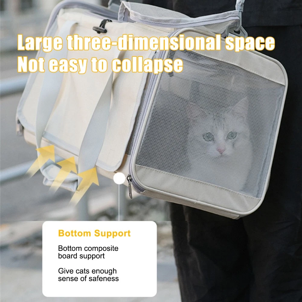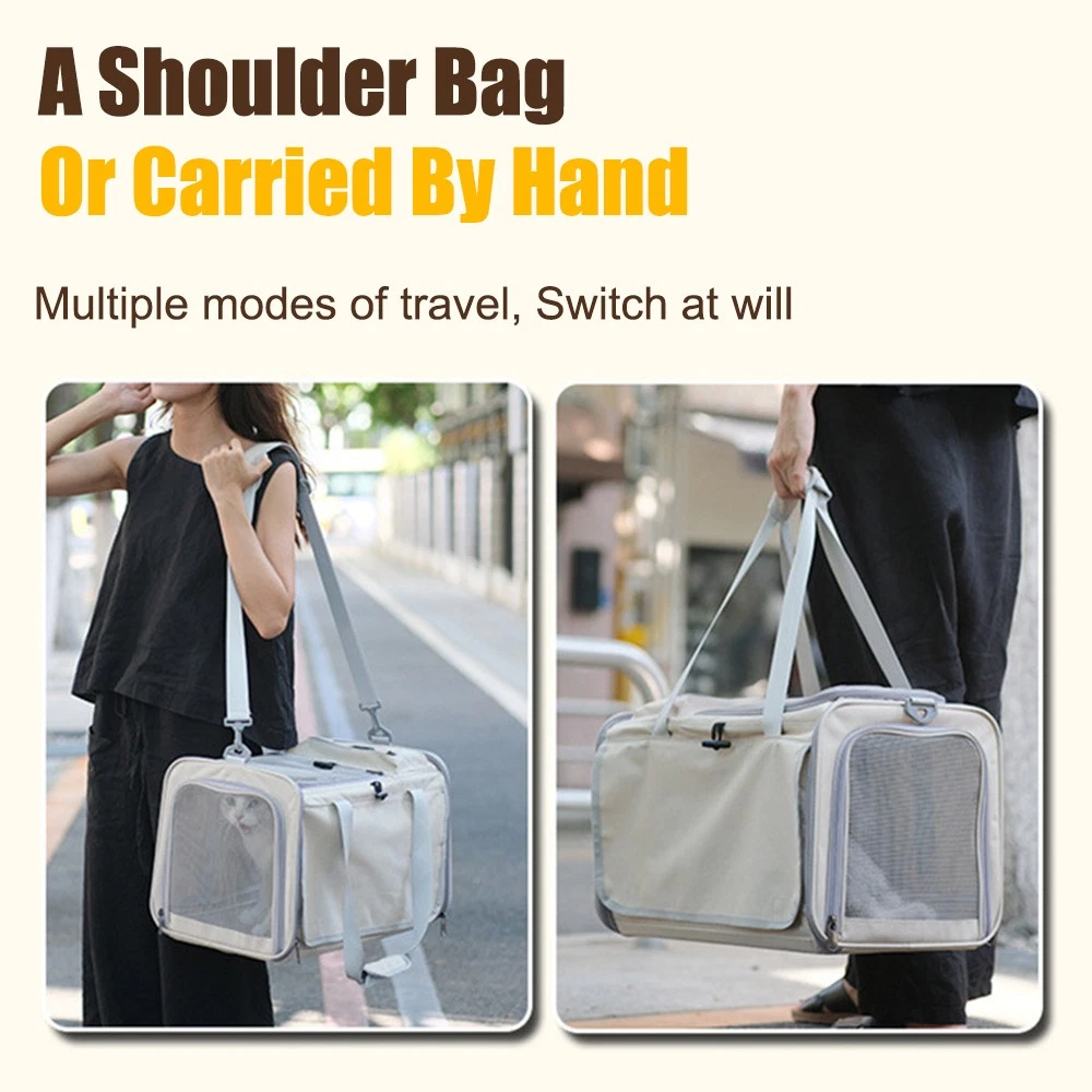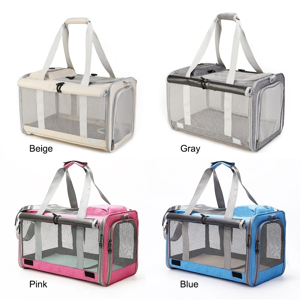 Feature: 1. Breathable and Private: Our large cat carrier is designed with mesh all around to ensure normal circulation of airflow inside and easy for you to check on your pet. The unique roller blinds can be put down if your pet feels nervous. 2. Large Capacity: The pet carrier for medium, large cats, or small dogs, is higher and wider than other carriers on the market, Measures: 18.5 x 11.81 x 11.42in, which is suitable for not only dogs, cats and other small animals under 10kg. 3. Reliable Structure: Made of sturdy and lightweight Oxford cloth and PVC, which is wear and tear, and will not be scratched by pets. There is a small pocket for you to store the pet's essentials conveniently when outings. 4. Multiple-Ways of Use: Two carrying ways-shoulder straps and handles will be adjusted as you need. Filled the soft fabric into the shoulder strap, and increased the width on it, helping to reduce load and relieve fatigue. 5. Versatile & Practical: With a pet carrier, you can take your beloved pet on buses, trains, automobiles, and even airplanes. This pet-carrying bag is foldable. If you don't need this product, you can fold it compact to save space. Specification: Color: Beige, Gray, Blue, Pink (Optional) Material: Oxford cloth, PVC Item Size: 47 * 30 * 29cm/18.5 * 11.81 * 11.42in Package Size: 44 * 29 * 5cm/17.32 * 11.42 * 1.97in Package Weight: 1200g/42.33oz Package List: 1*Pet Carrier 1*Soft Pad 1*Shoulder Strap