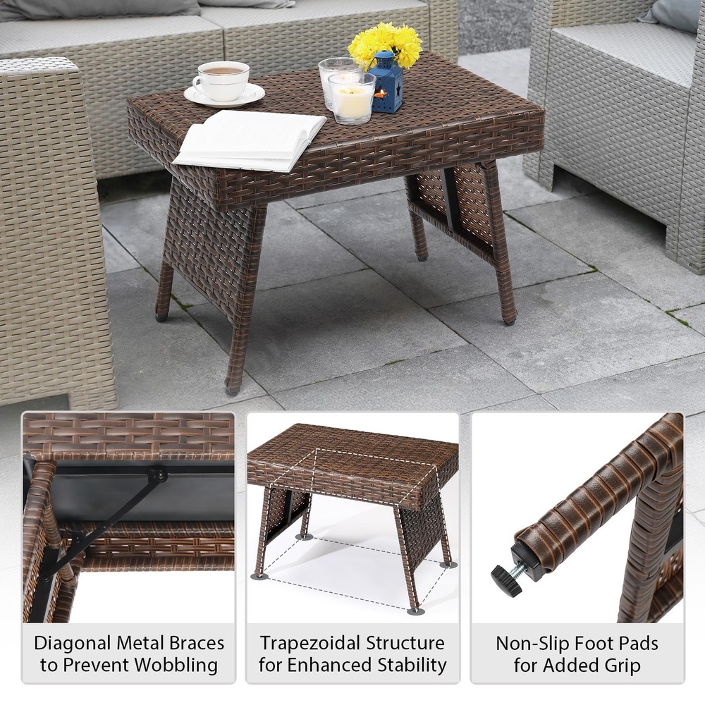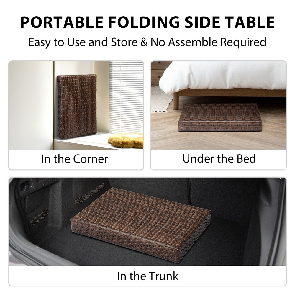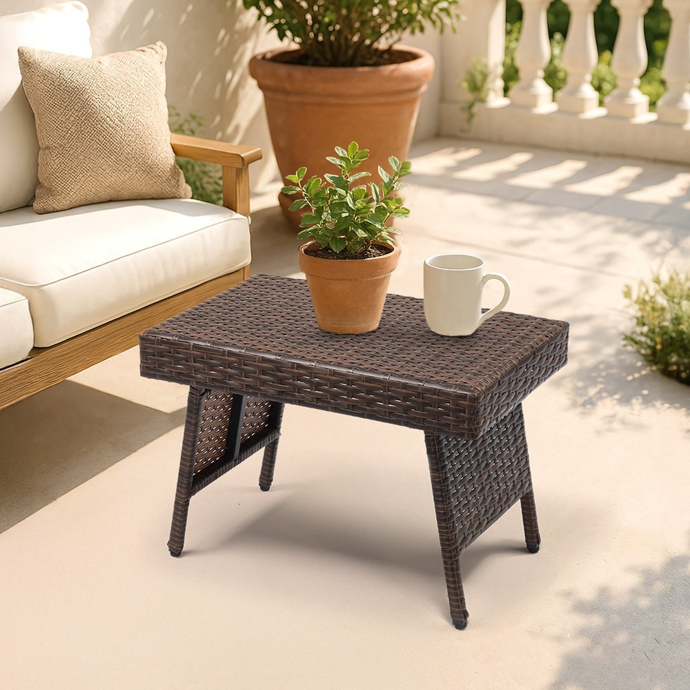 listing template VISIT OUR STORE SIGH UP FOR EMAIL In/Outdoor Folding Rattan Side Table Wicker Coffee Table Living Room Outdoor Folding Side Table, Patio Rattan Coffee Table with PE Wicker & High-Duty Steel Frame for Garden Courtyard Poolside, Brown Introductions: Elevate your outdoor living with this versatile Outdoor Folding Side Table. Designed for convenience and style, this patio coffee table features a weather-resistant PE rattan exterior and a sturdy steel frame, offering the perfect blend of durability and elegance. Its foldable design makes storage and portability effortless, while the compact tabletop keeps your essentials close at hand. Whether you're relaxing on the patio, by the pool, or in your garden, this wicker side table provides a stylish and functional companion. Features: 1. Compact Folding Design: Easily folds down to just 3.2" high for space-saving storage. Weighing only 9.9 lbs, it's light enough to take anywhere you go, from garden to picnic to balcony. 2. All-Weather PE Wicker: Crafted with fade-resistant, sunproof PE wicker in a warm brown hue—perfect for year-round outdoor use without worrying about wear and tear. 3. Reinforced Steel Frame: Built with a high-duty steel frame and reinforced bottom structure for enhanced support and stability, complete with non-slip foot pads to protect your floors. 4. Stylish & Multi-Functional: The rattan tabletop adds a modern touch and provides just the right space for drinks, snacks, books, or décor—ideal for patios, porches, decks, or even indoor corners. 5. No Assembly Needed: Ready to use right out of the box—just unfold and enjoy! Easy to maintain with a simple wipe using a soft, clean cloth. Specifications: 1. Unfolded Dimensions: (23.6 x 15.7 x 15.7) in / (60 x 40 x 40) cm 2. Folded Dimensions: (23.6 x 15.7 x 3.2) in / (60 x 40 x 8) cm 3. Net Weight: 9.9 lbs / 4.5 kg 4. Material: PE Wicker, Steel 5. Color: Brown Package Includes: 1 x Folding Rattan Side Table (Fully Assembled) You might like this more>> Portable Princess Castle Play House Blue Large Kids Play Tent $23.79 Double Shoe Rack Closet Shelf Storage Organizer $19.49 Oil Painting Easel Sketch Box Portable Folding $57.49 FCH L-Shaped Corner Computer Desk Home Office Desk $109.99 10 Tier Durable Storage Organizer 30 Pair Shoe Tower $18.99 24 Slots PU Leather Wrist Watch Box Display Case Organizer $16.99 Shipping Policy 1. Ship from New Jersey by Standard Int'l Shipping, and only to VERIFIED PAYPAL ADDRESS . 2.International Buyers – Please Note: a. Import duties, taxes and charges are not included in the item price or shipping charges. These charges are the buyer’s responsibility. b. Please check with your country’s customs office to determine what these additional costs will be prior to bidding/buying. 3. Please check your shipping address carefully before checkout, it can't be changed if order completed. 4. All items will be shipped to buyer's ebay address. Before you pay, please make sure your address in ebay match the address you would like us to ship to. 5. Ship within 1 business day once payment completed. We do not ship on weekends or public holidays. 6. Item normally will arrive in 10-15 business days but sometimes goes to 25-30 business days for remote area. That is depends on the freight in different countries. Return Policies 1. Refunds given only if item DOA and cannot be replaced via PAYPAL . If so, Please contact us with 5 days since you receive the item and and return to us within 30 days from the delivery date for exchange or refund. 2. If you need return, please contact our customer service representative, let us know the detailed problem and send us some pictures for confirmation. Payment Payment should be sent within 8(EIGHT) days of auction closing. Feedback If you are dissatisfied for any reason, please do not be quick to leave negative/neutral feedback. We work hard to make sure EVERY CUSTOMER 100% SATISFIED and resolve any problem for you. Work Time Work Time: Monday to Saturday About Us | Newsletter| Feedback| Contact Us Copyright © 2021 City-green. All rights reserved. 无标题文档 In/Outdoor Folding Rattan Side Table Wicker Coffee Table Living Room Outdoor Folding Side Table, Patio Rattan Coffee Table with PE Wicker & High-Duty Steel Frame for Garden Courtyard Poolside, Brown Introductions: Elevate your outdoor living with this versatile Outdoor Folding Side Table. Designed for convenience and style, this patio coffee table features a weather-resistant PE rattan exterior and a sturdy steel frame, offering the perfect blend of durability and elegance. Its foldable design makes storage and portability effortless, while the compact tabletop keeps your essentials close at hand. Whether you're relaxing on the patio, by the pool, or in your garden, this wicker side table provides a stylish and functional companion. Features: 1. Compact Folding Design: Easily folds down to just 3.2" high for space-saving storage. Weighing only 9.9 lbs, it's light enough to take anywhere you go, from garden to picnic to balcony. 2. All-Weather PE Wicker: Crafted with fade-resistant, sunproof PE wicker in a warm brown hue—perfect for year-round outdoor use without worrying about wear and tear. 3. Reinforced Steel Frame: Built with a high-duty steel frame and reinforced bottom structure for enhanced support and stability, complete with non-slip foot pads to protect your floors. 4. Stylish & Multi-Functional: The rattan tabletop adds a modern touch and provides just the right space for drinks, snacks, books, or décor—ideal for patios, porches, decks, or even indoor corners. 5. No Assembly Needed: Ready to use right out of the box—just unfold and enjoy! Easy to maintain with a simple wipe using a soft, clean cloth. Specifications: 1. Unfolded Dimensions: (23.6 x 15.7 x 15.7) in / (60 x 40 x 40) cm 2. Folded Dimensions: (23.6 x 15.7 x 3.2) in / (60 x 40 x 8) cm 3. Net Weight: 9.9 lbs / 4.5 kg 4. Material: PE Wicker, Steel 5. Color: Brown Packa