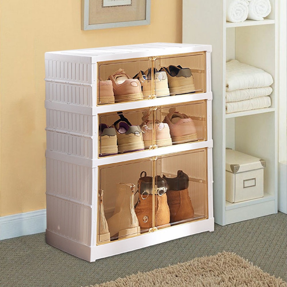 Foldable Shoe Cabinet Dust Proof Shoes Storage Organize Shoes Organizer 3-Tier -