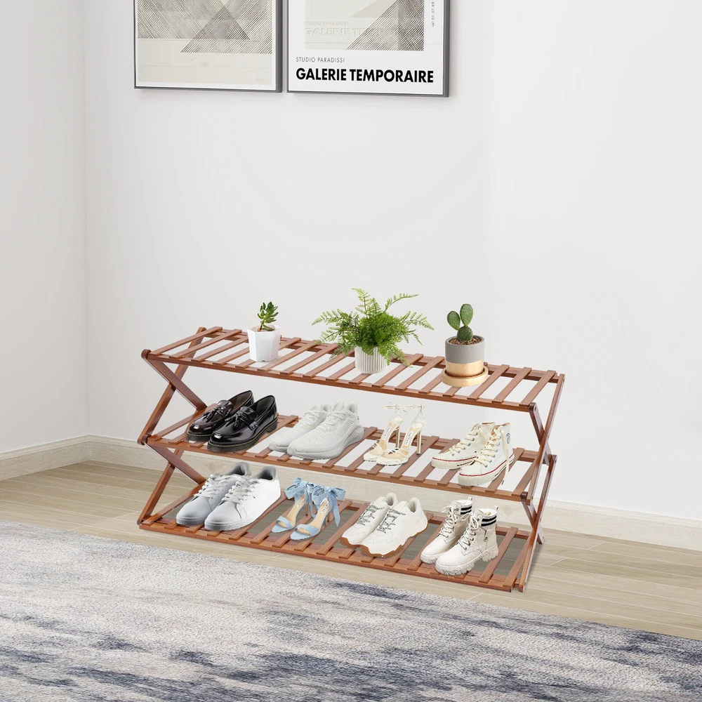 Specification Material: Bamboo Color: Tan Process: Paint Spraying Style: Modern Assembly Required: No Mounting Type: Free Standing Number of Tiers: 3 Product Size: 100*25*39cm/39.37*9.84*15.35in Tier Spacing: 18cm/7.08in Package Size: 103*32.5*7.5cm/40.55*12.8*2.95in Gross Weight: 3.6kg/7.94lbs Net Weight: 3.4kg/7.5lbs Package Included 1* Shoe Rack Foldable Shoe Rack Bamboo Shoe Stand 3-Tier Tan Shoe Storage Holder For Home Description Are you still struggling with shoe storage? Then please take a look at our products. Our bamboo collapsible shoe rack is a home storage solution that combines natural materials with modern design. It not only provides an elegant stage for displaying your shoes but also brings infinite possibilities for your space management with its unique foldable design. Key Features Made to Last: Our product is made of high-quality bamboo by a paint spraying process, which is sturdy and wear-resistant , with strong load-bearing capacity and toughness, not easy to deform, ensuring a long service life. Foldable Design: The innovative folding structure allows you to easily fold and store it when not in use, greatly saving you space, and making it suitable for small homes, apartments, or occasions where you need to change the layout frequently. Large Capacity: The three-tier design provides ample storage space, and each tier can easily accommodate multiple types and sizes of shoes. Whether it's your daily wear or seasonal shoes, they can be arranged in an orderly manner to meet the diverse needs of family members. Environmentally Friendly: Bamboo is a renewable resource with a short growth cycle and rapid self-renewal after harvesting. Compared with other woods, the use of bamboo is more in line with the concept of environmental protection and reduces the pressure on forest resources. Natural Beauty: The unique texture and tan color give the shoe rack a natural, rustic beauty, making it a harmonious match with various home styles and enhancing the warmth and quality of life in the space. Ready Made: The rack is integrated,once you receive it, just follow the instruction to use it. Effortless Cleaning: It has a smooth surface and an open structure, so you only need to wipe the dust or residue with a towel. Multifunctionality: In addition to storing shoes, it can also be used to place books, toys, or other household items, flexibly adapting to different scenarios and enhancing space utilization. Ideal Gift: With good performance and a modern appearance, it can be used as an ideal housewarming gift for parents, friends, and lovers so that they can also enjoy a more exquisite life. Details Smooth Edges & Corners: This design effectively improves the safety of use. Uniform Gaps: The balanced gap between the stopper bars effectively prevents items from falling. The hollow structure is easy to ventilate and does not easily harbor bacteria , ensuring clean and tidy shoes. Application This product is suitable for courtyard, living room, bedroom, garage, balcony, etc. How to Install Lay the shoe rack horizontally on the ground. Open to both sides, but do not open them all, so as not to wait for the lower crossbar to be stuck in. Clamp the panels on the crossbar. Finished. Specification Material: Bamboo Color: Tan Process: Paint Spraying Style: Modern Assembly Required: No Mounting Type: Free Standing Number of Tiers: 3 Product Size: 100*25*39cm/39.37*9.84*15.35in Tier Spacing: 18cm/7.08in Package Size: 103*32.5*7.5cm/40.55*12.8*2.95in Gross Weight: 3.6kg/7.94lbs Net Weight: 3.4kg/7.5lbs Package Included 1* Shoe Rack Notes Please note that the ply strips need to snap onto the crossbar. Considering that your plants may be taller, I have to remind you that the shoe rack is not suitable for all plants because its tier height is not so high. It is more suitable for relatively small plants like succulents. Please do not fully open when unfolding, so as to avoid pulling too wide, which may cause the panel to not good to take on the crossbar; wait for all panels to take on the crossbar and then fully unfold. Please be careful not to clip your hand as you unfold the shoe rack. When it needs to be taken away or moved, the bamboo shoe rack can be easily stored by operating it in the reverse direction according to the unfolding method. For friends who have pets at home, especially your cats are more curious, you can fix the door shoe rack with adhesive type(not included) or related things according to your own situation, so as not to be knocked down. If you put a relatively heavy item for a long time on the shoe rack and bend it, you can take it off for a few days, because the shoe rack is made of bamboo with good toughness, and it will naturally recover after that. Please allow the slight color difference caused by the shooting light and 1-3cm error due to manual measurement, and make sure you do not mind before ordering. Payment Delivery details Terms of sales About us Contact us Payment We accept ebay payment 。 Fees such as import duties, taxes are not included in the item price or shipping costs. These charges are the buyer's responsibility. Delivery details Shipping: 2-9 working days to: USA Terms of sales We maintain high standards of excellence and strive for hundred percent customer satisfaction. Feedback is very important to us. We hope that you contact us immediately before you give neutral or negative feedback, so that we can address your concerns. It is impossible to address issues if we do not know about them! About us Your satis faction is our ultimate goal. We work hard to earn your trust and future business. Our certified technicians have tested each item before shipping. The unit comes with 1 year limited warranty on all manufacturing defects. a) If you receive a defective item, you may return it or ask for a discount. Please contact us within 14 days after you receive the package. b) What you returned must be intact and in its original packaging as re? u. Customer is responsi