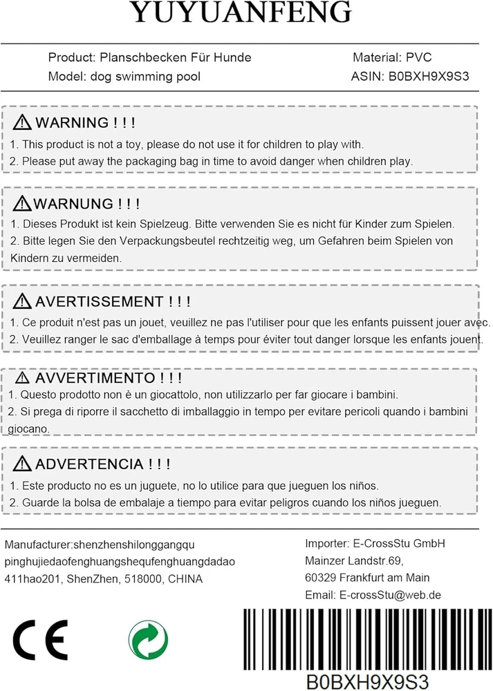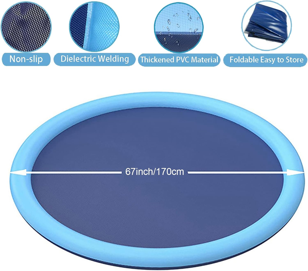 Splash Pad for Dogs&Kids, Foldable Sprinkler Pad Outside, Collapsible Play Water Bathtub Toy for Kiddie Puppies, Non Slip Wading Pool,Summer Outdoor Paddling Toys for Yard 67'' 【High quality material】This dog paddling pool is made of PVC,thickened and non-slip design can able to withstand claws as well as the hot weather. The soft material let your dog to jumps and barks for joy while frolicking through the water.Tip:Trim dogs' nails can help extend the life of the dog splash pads. 【Easy to install】Without inflating,just plug the dog swimming pool into a garden hose or PVC tubing, and adjust the water pressure to lower or heighten the spray height and let the entertainment begin!Keep in mind that water pressure may vary based on each individual's home.If your garden hose has a 3/4" connection, which can connect directly to the dog splash pad.Tip:The fitting is suitable for water pipes without thread. 【Easy to Portable and storage】The pet paddling pool can be folded up and portable, easy to store and carry.In the hot summer, you can take it to anywhere to enjoy the cool and happy summer; Sprinkler Pad is suitable for indoor or garden, outdoor water parties, backyard, patio, lawn, beach or anywhere with running water.Tip: Please use it on the ground without sharp objects. 【Multiple Sizes】The dog bath pool has three sizes to choose from, 39.37 inches(100cm), 59.06 inches(150cm), 66.93 inches(170cm), different sized pets from small to medium size and large dogs can play on it. Bring the doggie splash sprinkler pad home now, your backyard will become the community superstar in the comming summer. 【No Risk purchase】YUDANSI splash pad has passed strict quality inspections. If you are not satisfied, you can replace or refund freely. Any questions, please contact us firstly, we will solve your problem as soon as possible. Product Description How to Help Doggy Endure Hot Summer especially the large-sized dogs original of the North Europe. How to help them? Take them to seaside to play water Create a similar cooling playground in your yard by the splash pad Find them shade outside in a dry place, provide them with cooling pads and enough water Brand: YUDANSI Non-slip Splash Pad for kid and dogs Material: High-quality Thickened PVC Size: 39-59-67inch Tips: Please use it on the ground without sharp objects. Do not use high-pressure irrigation. Overpressure may cause unnecessary damage to the dog paddling mat. When the dog paddling pool is full of water, do not move it. Do not expose it to sunlight for a long time, keep it dry and store at normal temperature. Trim your dogs' nails can help extend the life of the splash pad. Keep it away from the sunscreen and alkaline items. Item model number PSD-F Assembly Time 5 minutes Capacity 68059 Cubic Centimeters Assembly Required No Color Blue Special Feature Foldable Material Polyvinyl Chloride (PVC) Country of Origin China Item Weight 2.33 pounds Shape Round Manufacturer recommended age 36 months - 17 years Frame Material Polyvinyl Chloride (PVC) Age Range (Description) Kid Target Audience Unisex-Adults Product Dimensions 39.37 x 39.37 x 2.36 inches Size 67 inch 39.37 inches x 39.37 inches x 2.36 inches. Weight: 2.33 lb Shipping from the USA All of our products are shipped from the USA, ensuring quick delivery to your destination. Payment We offer the following payment methods: PayPal, credit card, bank transfer, and eBay's secure payment system. Free Shipping & Free Returns Shipping within the USA is FREE. Additionally, any return is absolutely free for you. Risk-Free Purchase You have the option to return an item within 30 days without any justification. We cover the return shipping costs! Fast Shipping We ship immediately upon receipt of payment. Generally, the package is delivered within 2-3 days in the USA. If it takes longer, we will contact you. Quality and Costs Made in Europe, USA, China No customs fees or additional charges Total satisfaction guarantee Invoice with declared VAT available upon request in .pdf format Feedback Your feedback is very important to us. After you pay for your purchase, you will automatically receive positive feedback from us.