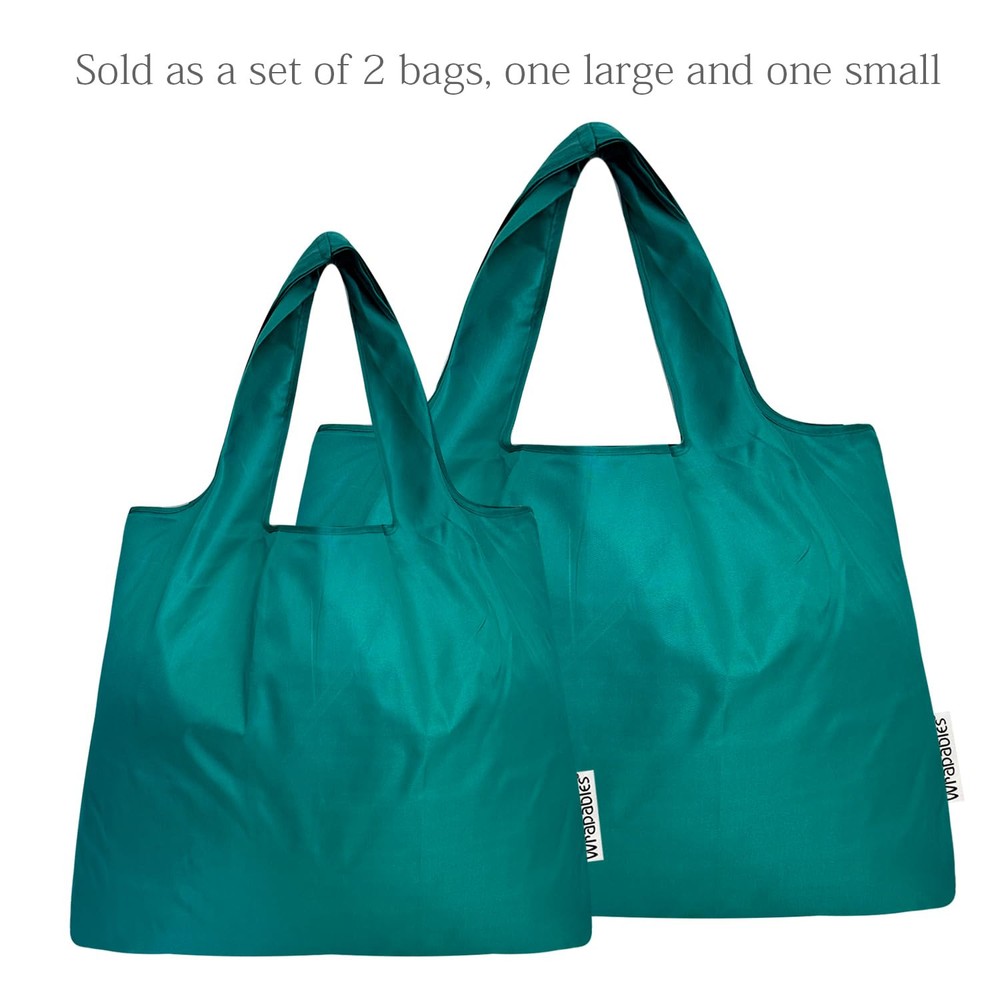 PROMOTES GREEN LIFESTYLE. Reduces trash from unwanted bags, helps protect the environment and wildlife. These reusable bags can be used again and again. FOLDABLE. The reusable bags can be folded into a tiny inner pocket that can conveniently fit in your purse. Great for taking with you anywhere you want. SET INCLUDES 2 BAGS: Large: 22 x 16.5 inches, 9 inch handles. Small: 14 x 15 inches, 8.5 inch handles. DURABLE: Lightweight yet very wear-resistant and does not rip easily. Made with nylon. Holds up to 44 lbs. Waterproof. USE: For carrying groceries, shopping, traveling and storage. Can also be used as a book bag or lunch bag.