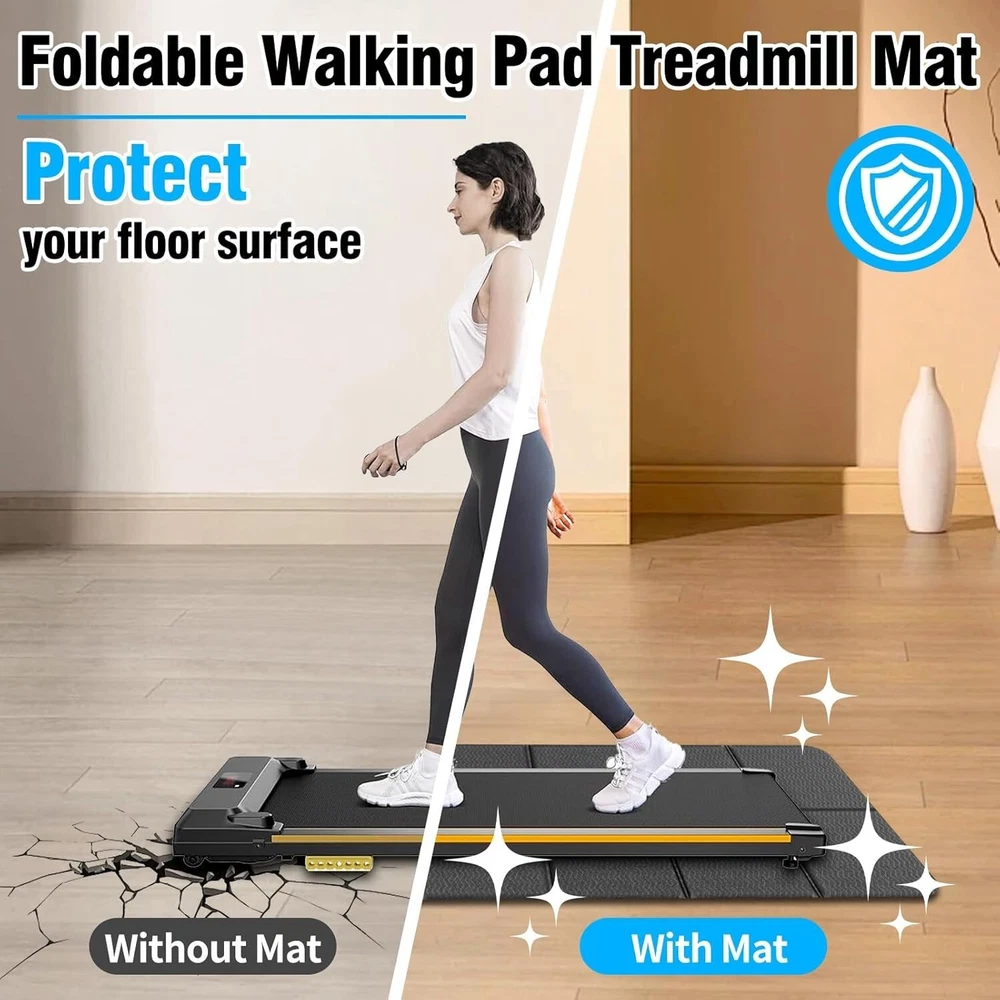 Foldable Walking Pad Treadmill Mat, Floor Protection Pad, Exercise Mats For Home Color Black Special Feature Lightweight Product Care Instructions Wipe with Damp Cloth Protect your Floors: Designed for Walking Pad Treadmill, Noise Reduction, Non Slip, Anti Vibration Prefect for Portable Walking Pad Treadmill for Home Product Size: 70*24 inch. Folding design, comes with a storage bag, convenient for storage. Extra-large size, suitable for a variety of fitness equipment. Designed for Indoor Fitness Equipment: High sturdiness, Thickness, and a Special Anti-Slip Design. Perfect for exercise machines such as treadmills, ellipticals, rowing machines, stationary bikes, dumbbell sets, home gyms, rebounders, and more Superior Noise & Vibration Reduction: Significantly reducing noise, Simply place these anti vibration pads between equipment and the floor to enjoy a quieter workout without disturbing family and neighbors.