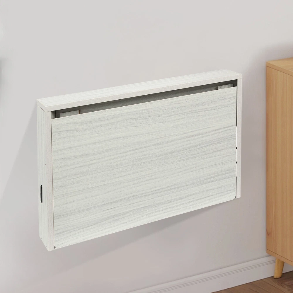 Folding Wall Table, Fold Down Table Wall Mounted, Round Corners Folding Table Description This wall-mounted folding wall table cleverly utilizes space. It is made of premium material, which is load-bearing and durable. When unfolded, it is an ideal partner for your work and study; when folded, it instantly releases space, so that even small households can enjoy a large pattern life. Simple design easily fits into various home styles, so every inch of space shows wisdom and taste. Key Features Made to Last: Made of premium MDF with sealed edges, it is waterproof and wear-resistant , ensuring long-lasting use. Life Helper: The spacious desktop (23.6*13in) is convenient for holding all kinds of books, magazines, laptops, and other daily necessities. It can be used as a home office workstation, workbench, laundry table, sewing station, and so on. Space Saving: The wall-mounted design doesn't need to take up floor space, and you can press its folding switch to press down 90° to fold it into a compact size of 24.8*2.8*16.3in, thus saving valuable living space. After folding, the upper part can also be used as a storage shelf for some simple items. Stable Support: The 15mm premium MDF and stable iron triangular support frame can ensure strong load bearing, so you can use it with peace of mind. Aesthetically Pleasing: The classic light gray color and simple shape complement each other, which can be harmoniously matched with most decorative styles, adding a sense of fashion to your interior space. Easy to Clean: Its surface is very smooth and flat, and not easy to accumulate dust and stains, you can use a rag (not included) to wipe it to maintain a bright appearance. Easy to Install: It doesn't require you to do extra assembly, just fix it on the wall with expansion screws (not included) and you can start to use it. Customer Service: We aim to provide quality products and services. If you have any problems, please feel free to contact us. We will reply and solve the problem for you as soon as possible. Details Elastic Ropes: They can hold the books and magazines etc. in the storage rack better and prevent them from falling accidentally. Extended Folding Switch: It is convenient for you to fold the table quickly and easily. Round Corners: The smooth and burr-free corners enhance the beauty of the product and better care for your skin when cleaning it. Application It can hold a variety of books, magazines, laptops, and other daily necessities, and can be used as a children's table, laptop table, dining table, study table, work table, coffee table, sewing station, etc. in living rooms, bedrooms, offices, study rooms, dining rooms, homes bars, kitchens, laundry rooms, making your life and study easier. Specification Mount Type: Wall-mounted Assembly Required: No Board Thickness: 15mm/0.59in Material: MDF, Iron Color: Light Gray Shape: Rectangular Process: Edge Sealing Folding Angle: 90 ° Desktop Size: 60*33cm/23.6*13in Folded Product Size: 63*7.2*41.5cm/24.8*2.8*16.3in Number of Elastic Ropes: 2 Package Size: 66.5*44*11cm/26.18*17.32*4.33in Gross weight: 6.6kg/14.55lbs Net Weight: 6kg/13.23lbs Package Included 1* Folding Wall Table Notes Please check the style and size before purchasing. Please do not immerse it in water. Please note that the product requires you to provide expansion screws to mount on the wall. Please allow the slight color difference caused by the shooting light and 1-3cm error due to manual measurement and make sure you do not mind before ordering. Payment Delivery details Terms of sales About us Contact us Payment We accept ebay payment 。 Fees such as import duties, taxes are not included in the item price or shipping costs. These charges are the buyer's responsibility. Delivery details Shipping: 2-9 working days to: USA Terms of sales We maintain high standards of excellence and strive for hundred percent customer satisfaction. Feedback is very important to us. We hope that you contact us immediately before you give neutral or negative feedback, so that we can address your concerns. It is impossible to address issues if we do not know about them! About us Your satis faction is our ultimate goal. We work hard to earn your trust and future business. Our certified technicians have tested each item before shipping. The unit comes with 1 year limited warranty on all manufacturing defects. a) If you receive a defective item, you may return it or ask for a discount. Please contact us within 14 days after you receive the package. b) What you returned must be intact and in its original packaging as re? u. Customer is responsible for shipping costs of the returned item. c) We will cover the cost of shipping back t with the shipping rate indicated in the registration page. We will send you a new unit or refund the full payment you paid. Thank you. Contact us Business Hour Business Hour: Monday To Friday: 8:30 AM to 5:00 PM (Beijing China time) Due to time zones, our reply to your questions may not be immediately. But within above working time, we will reply your email within 24 hours. If it's non-workdays, please kindly be patient and wait till Monday. Please contact us with ebay message. Please feel free to contact us if you have any questions. Monday To Friday: 8:30 AM to 5:00 PM (Beijing China time) Due to time zones, our reply to your questions may not be immediately. But within above working time, we will reply your email within 24 hours. If it's non-workdays, please kindly be patient and wait till Monday. Please contact us with ebay message. Please feel free to contact us if you have any questions. * Feature * Nice and Practical, High Quality Packaging Feature Fast shipping from US Warehouse Mount Type Wall-mounted Process Edge Sealing Folding Angle 90 ° Desktop Size 60*33cm/23.6*13in Brand Unbranded Item Height 16.3in Item Length 24.8in Item Width 2.8in Type Wall Table Material MDF, Iron Shape Rectangular Color Light Gray