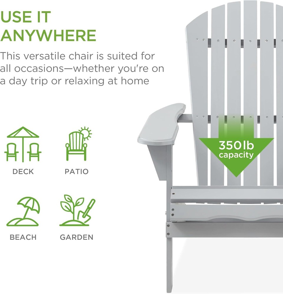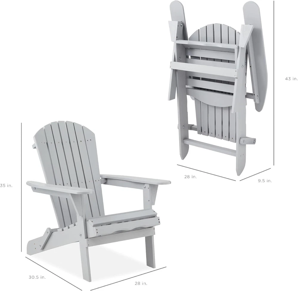 Folding Adirondack Chair Outdoor Wooden Accent Furniture Fire Pit Lounge Chairs