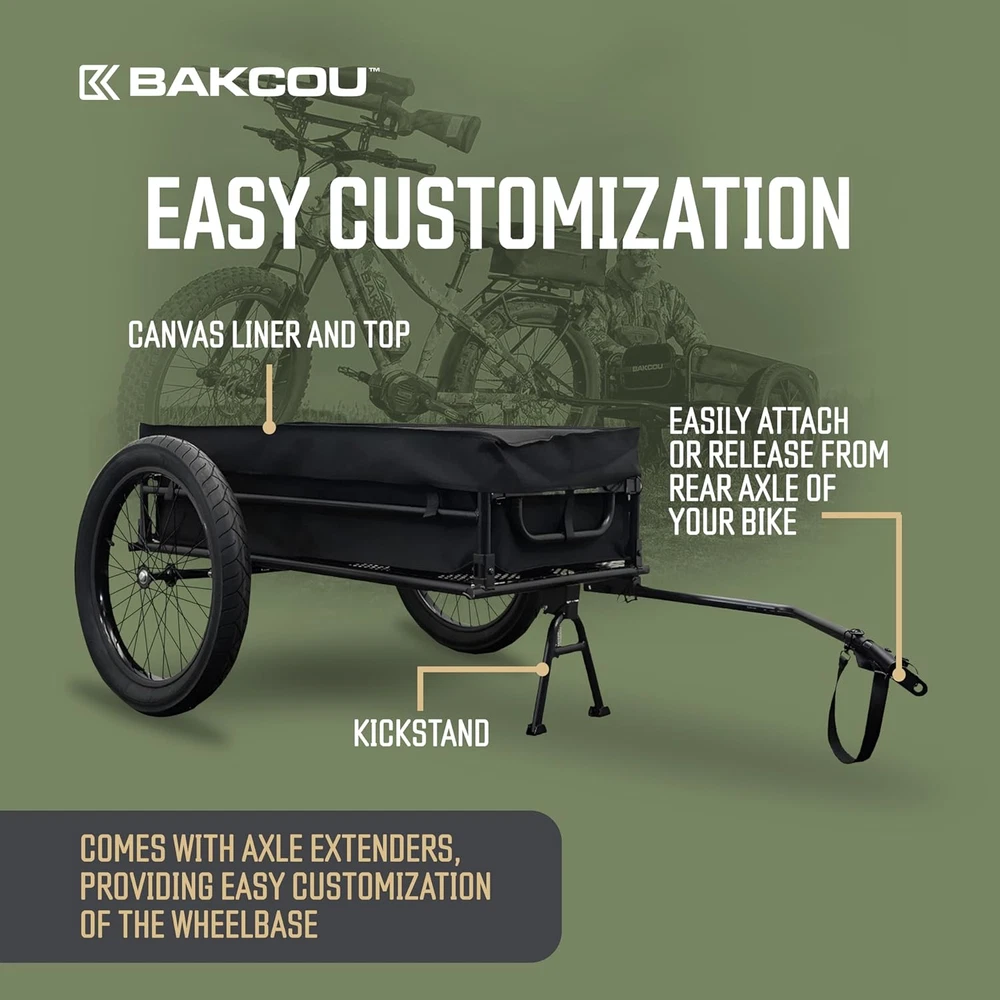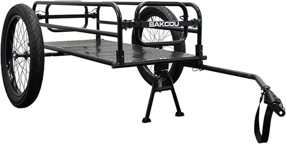 Store New Arrivals Add to Favorite View Feedback Contact | Folding Cargo Ebike Trailer with 20" X 3" Fat Tires, Canvas Liner & Hitch - Easily Attach to Ebike, with Axle Extenders & Kickstand - 150-200 Lbs Capacity, Ideal for Hauling Gear Description Part Number TRAILER CARGO-FLDNG-FBA Style Cargo Trailer Seating Capacity 1 Color Black Item Weight 42 Pounds Material Aluminum Maximum Weight Recommendation 200 Pounds Sport Type Outdoor Lifestyle Suggested Users mens Package Weight 26.31 Kilograms Model Name TRAILER CARGO-FLDNG Maximum Height Recommendation 10 Inches Product Dimensions 40.5"L x 16.5"W x 10"H Item Package Dimensions L x W x H 43.5 x 22.5 x 11 inches Quick and Convenient: The Bakcou Folding Cargo eBike Trailer is designed for hassle-free use, easily attaching or releasing from the rear axle of your bike. Flexible to switch between biking modes. Weather-Resistant: Equipped with a removable canvas liner and top, this bike trailer ensures your gear stays securely in place while shielding it from the elements. Keep your cargo dry and protected. Versatile Hitch Compatibility: The included hitch allows seamless attachment to your BAKCOU eBike, ensuring a secure and stable connection. Experience the convenience of a reliable hitch system. Easy Customization: The Folding Cargo eBike Trailer comes with axle extenders, providing easy customization of the wheelbase. Effortlessly attach or remove the extenders to adapt the trailer. Durable Construction: With 20” x 3” fat tires recommended for 20 PSI tire inflation, the Bakcou trailer boasts a cargo area of 16.5” W x 40.5” L x 10” H. With a length of 70”, 10" clearance, and a weight of 42 lbs, it offers a 150 to 200 lbs capacity. Product Description ABOUT US We offer the best prices around on high quality products. Our E-store includes media such as books, movies, music and games while offering electronics, toys, sporting apparel, clothing, tools, general home, garden items and more. SHIPPING We are always working hard to ensure your package arrives as soon as possible. Please understand that some factors like weather, high postal traffic, and the performance of shipping companies are outside of our control. We offer free shipping to the lower 48 states and ship within 2 business days of payment, usually sooner. We do not accept P.O. Boxes. Please provide a physical address. For shipping outside of the continental USA, we only use eBay's Global Shipping Program.The item is shipped to KY and then sent to the rest of the world. International customers are responsible for all duties and taxes. Continue to check out in order to calculate costs for shipping the item to your country. Messages regarding eBay's Global Shipping Program MUST be directed at eBay EXCLUSIVELY. RETURNS We offer a 30-Day Return Policy on items which you are not completely satisfied with. You have the option for a full-refund or an exchange of the item. No returns are available on items shipped outside of the USA. PAYMENT We accept PayPal. CONTACT US This page content is yet to come Please ad us to your favorite seller and visit again later Thank You CUSTOMER SATISFACTION We try our very best to make sure every customer is completely satisfied. If there's a problem, message us! We're happy to help. WE ACCEPT Copyright © 2021 AutoDS. | All Rights Reserved