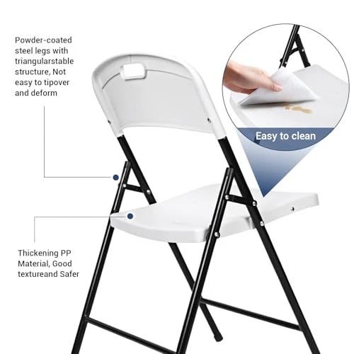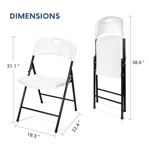 Return Policy Fast Delivery Trusted seller Folding Chairs, Heavy Duty Portable Plastic Foldable Chair with Steel Frame for Outside, Party, Wedding, Indoor Home Use, 4 Pack, White Product Description Rugged and Stable: These folding chairs are made of high-quality PP (polypropylene) plastic and powder-coated steel frame, which is thicker, harder and more sturdy. The folding chairs can support weights up to 250 pounds Suitable Size: The unfolded size of the folding chair is 18.3"W x 22.4"D x 31.1"H, suitable for most people. The height after folding is 38.6", the thickest part is 3.5", the chairs can be stacked between each other and will not take up too much space Easy to Use: No installation required, these portable chairs can be easily opened in just a few seconds. It can be quickly folded when not in use, making it very convenient and effortless whether you are carrying it out or storing it Ergonomic Design: The foldable chair features a curved seat and backrest that fits the human body curve better, providing support for the back and legs, making you sit more comfortably Multi-scene: These folding chairs are suitable for various indoor and outdoor activities, home, office, meeting, wedding, party, catering, etc Shipping Returns Payment Shipping Shipping is FREE to all addresses other than APO/PO boxes in the lower 48 states. All our stock ships from US-based warehouses. Shipped via USPS or UPS (depending on location and package weight) Unless stated otherwise, all orders will ship within 24-72 hours of your payment being processed. Check our feedback to see the great reviews of FAST shipping we offer. Returns Seller does not accept returns Payment We currently accept payment via eBay managed payments only. Once payment is cleared, we will dispatch your shipment within 1-3 business days. Please refer to the "Shipping" tab for more information regarding shipping speed to your destination.