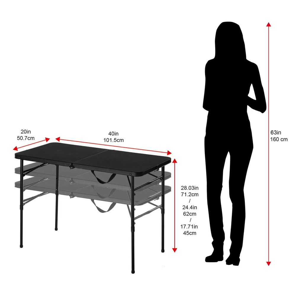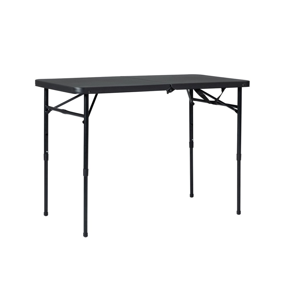 You may also like Individually Wrap Medium-Weight Forks Office Catering Takeout Disposable Smooth 19.11 USD 20.12 USD Free shipping 5% off Walk Through Metal Dog Pet Gate Extra Wide W/ Additional Small Door Home White 41.05 USD 43.21 USD Free shipping 5% off 6 Gal Galvanized Steel Locking Lid Storage Can Pets Dry Food Storing Containers 22.54 USD 23.73 USD Free shipping 5% off 2 Inch Olympic Barbell Weight Bar 7ft 800 Pound Capacity Steel Constructed 45 lb 92.62 USD 97.49 USD Free shipping 5% off Industrial Strength Cleaner Degreaser 5 Gal Non Flammable Phosphate Free No Wear 28.96 USD 30.48 USD Free shipping 5% off Gallop Rock Learning Pony Electronic Motion Activated Pretend Play Ride Toy New 50.73 USD 53.4 USD Free shipping 5% off 59 in Pet Cage Cover Privacy Comfort Easy Access Ferret Critter Nation Cage New 15.68 USD 16.51 USD Free shipping 5% off Chalk Paint Kit 3 Pack Durable Matte Finish Acrylic DIY Home Decor Crafts Dusk 23.63 USD 24.87 USD Free shipping 5% off Swivel Swing Down Trailer Jack Sidewind 1000 lb Capacity Marine Durable Steel US 45.7 USD 48.11 USD Free shipping 5% off Protein-Rich Chicken & Rice Dog Food 12 lb Natural Digestion Formula Adult Dogs 30.76 USD 32.38 USD Free shipping 5% off Vitamin Solution For Plants Mineral Supplement, 1 Gal Natural And Non-Toxic 176.8 USD 186.1 USD Free shipping 5% off Giddy Up Electric Grill Brush Rechargeable Heavy Duty Stainless Steel Bristles 78.0 USD Free shipping Provide all of the tablespaces that you need in all kinds of settings with the Mainstays 40" Fold-in-Half Table in Rich Black. This versatile rectangular table is sturdy and durable, made with reliable materials, folds for easy storage and transportation, and adjusts to three different heights. When you're finished using it, just fold in the metal legs, fold the table in half, and your new compact table is ready for transport! Its classic black color is sure to fit in at any gathering in any setting, and its spacious expanded 40" long table-top is ideal for holding a wide variety of foods, crafts, or whatever items you are working with! It's great for everyday use both indoors and outdoors, as a serving table, craft supply table, outdoor meal table, or for whatever purposes you may need. The plastic tabletop is easy to clean with no fuss just wipe it down with a damp cloth, and it will look as good as new! The carrying handle makes it perfect for taking on the go, for outdoor barbecues, game nights, school activities, parties, or tailgating events. The tabletop is large enough to be able to sit the whole group down around the table, so all of your friends and family can be included. Fold-in-half table with 3 adjustable height settings. Product size is 40" L x 20" W x 17.71" - 28.03" H. Comfortably seats 4 adults Easily folds in half for convenient storage or transport Classic black color coordinates with almost any decor! Includes built-in carry handle, for easy transportation Rubber stoppers on the legs for added grip on floor surfaces Ideal for everyday use beside your favorite chair to hold the remotes, drinks, and snacks. Also, perfect when you need some extra space for your next game night or dinner party. Perfect for serving snacks at your next party, using on game night with your friends, or as your craft table This table can support up to 80 lbs You may also like 4X4 In Tabletop Enamel Photo Frame Handmade Recycled Aluminum Decorative Gift 54.79 USD 57.67 USD Free shipping 5% off Bath Satin Nickel Hand Towel Bar Wall Hook Detachable Waterproof Tape Antirust 24.41 USD 25.69 USD Free shipping 5% off Luggage Compartment Rolling Duffel Expandable In-line Wheels High-Capacity Hot 65.44 USD 68.88 USD Free shipping 5% off Organic Wet Dog Food Chicken Carrot High Protein No Antibiotic Improve nutrition 29.13 USD 30.66 USD Free shipping 5% off Sand Finish Flatware Set W/ Steak Knives 36 Piece Service 6 Stainless Steel New 32.67 USD 34.39 USD Free shipping 5% off Pure Vanilla Extract 32oz Natural Gourmet Flavor Vegan Gluten Free NonGMO Brown 119.08 USD 125.35 USD Free shipping 5% off Carbon Soft Cooler High-Density Insulation 15Lb Capacity Portable Shoulder Strap 106.05 USD 111.63 USD Free shipping 5% off Adjustable Over Sink Dish Drying Rack 2 Tier Black Metal 26.8-34.6 In Organizer 41.95 USD 44.16 USD Free shipping 5% off Rolling Trolley Cart 3 Shelves Hair Beauty Salon Spa Storage Equipment Organizer 50.43 USD 53.08 USD Free shipping 5% off 20in Weekender Duffel Bag Travel Zippered Pockets Adjustable Straps Durable Bag 39.44 USD 41.52 USD Free shipping 5% off HEPA Carbon Filter Set Shark & Penguin Air Purifier Removes Allergens & Germs US 24.28 USD 25.56 USD Free shipping 5% off 24" Mesh Pet Safety Gate Adjustable & Portable No-Slip Bumpers Easy Installation 37.04 USD 38.99 USD Free shipping 5% off