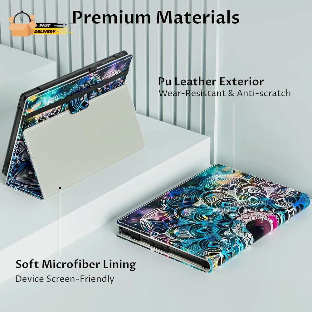 Store New Arrivals Add to Favorite View Feedback Contact Folio Case for Amazon Fire HD 8 & Fire HD 8 plus Tablet (1 Description Item model number For Fire HD 8 12th/10th Generation Color Mandala Galaxy OS Fire HD 8 Plus Tablet 2020 10th Generation, Fire HD 8 Plus Tablet 2022 12th Generation, Fire HD 8 Tablet 2020 10th Generation, Fire HD 8 Tablet 2022 12th Generation Product Dimensions 5.8 x 0.3 x 8.06 inches Country of Origin China Compatible Devices function(f) {var _np=(window.P._namespace("DetailPageProductOverviewTemplatesJava"));if(_np.guardFatal){_np.guardFatal(f)(_np);}else{f(_np);}}(function(P) { P.when('A').execute(function(A){ A.on('a:truncate:po-attribute-truncate-2:updated', function(data) { var isTruncated = !data.truncateInstance.getIfTextFits(); var seeMoreElement = document.getElementById('po-attribute-see-more-id-2'); if(seeMoreElement) { seeMoreElement.style.display = isTruncated ? '' : 'none'; } }) }); })); Fire HD 8 Tablet 2024/2022 12th Generation, Fire HD 8 Plus Tablet 2020 10th Generation, Fire HD 8 Plus Tablet 2024/2022 12th Generation, Fire HD 8 Tablet 2020 10th Generation See more Item Weight 5.3 ounces Shell Type Soft Special features Magnetic Closure, Stylus Holder, Auto Sleep/Wake, Adjustable Stand, Scratch Resistant Other display features Personal Computer Form Factor Case 【Perfect Fit】: Protect and perfectly fit All-New Amazon Kindle Fire HD 8 Tablets & Fire HD 8 Plus Tablets (Compatible with 12th Generation, 2024/2022 Release and 10th Generation, 2020 Release). Not compatible with other model tablets 【Auto Wake/Sleep】: Automatically wakes or puts your Fire HD 8 tablet to awaken when you open the cover and sleeps when you close it, maximizing battery life. Plus, Easy access to all features and controls 【Hands-free】:Experience the ease of one-handed use with the interior hand strap. The case for Kindle Fire 8 Tablet can be transformed into a horizontal viewing stand, ensuring optimal viewing and typing comfort 【Magnetic Closure】: VORI case for Kindle Fire HD 8 tablet with magnetic and functional elastic strap keeps the cover securely closed to the Amazon Fire 8 tablet while on the go. Designed with a smart holder for stylus/pen (stylus NOT included) 【Lightweight and Protective Design】: Built from durable Premium synthetic leather with soft Microfiber interior to protect the screen and protect your Kindle Fire 8 Tablet from daily bumps scrapes and accidental drops Product Description PLEASE NOTE: Only Fit Fire HD 8 Tablet 12th/10th Gen, 2024/2022/2020 Release 1 Auto Wake & Sleep 2 Magnetic Closure 3 Stylus Pen Holder 1 High-Quality Material 2 Accurate Cutouts Typing Angle Easily prop your tablet for comfortable editing. Viewing Angle Stand your tablet up effortlessly for comfortable movie watching. Hands-strap Hand strap enables holding your Fire HD 10 in one hand, so you can indulge in reading without any tiring feeling. ABOUT US We offer the best prices around on high quality products. Our E-store includes media such as books, movies, music and games while offering electronics, toys, sporting apparel, clothing, tools, general home, garden items and more. SHIPPING We are always working hard to ensure your package arrives as soon as possible. Please understand that some factors like weather, high postal traffic, and the performance of shipping companies are outside of our control. We offer free shipping to the lower 48 states and ship within 2 business days of payment, usually sooner. We do not accept P.O. Boxes. Please provide a physical address. For shipping outside of the continental USA, we only use eBay's Global Shipping Program.The item is shipped to KY and then sent to the rest of the world. International customers are responsible for all duties and taxes. Continue to check out in order to calculate costs for shipping the item to your country. Messages regarding eBay's Global Shipping Program MUST be directed at eBay EXCLUSIVELY. RETURNS We offer a 30-Day Return Policy on items which you are not completely satisfied with. You have the option for a full-refund or an exchange of the item. No returns are available on items shipped outside of the USA. PAYMENT We accept PayPal. CONTACT US This page content is yet to come Please ad us to your favorite seller and visit again later Thank You CUSTOMER SATISFACTION We try our very best to make sure every customer is completely satisfied. If there's a problem, message us! We're happy to help. WE ACCEPT Copyright © 2021 AutoDS. | All Rights Reserved