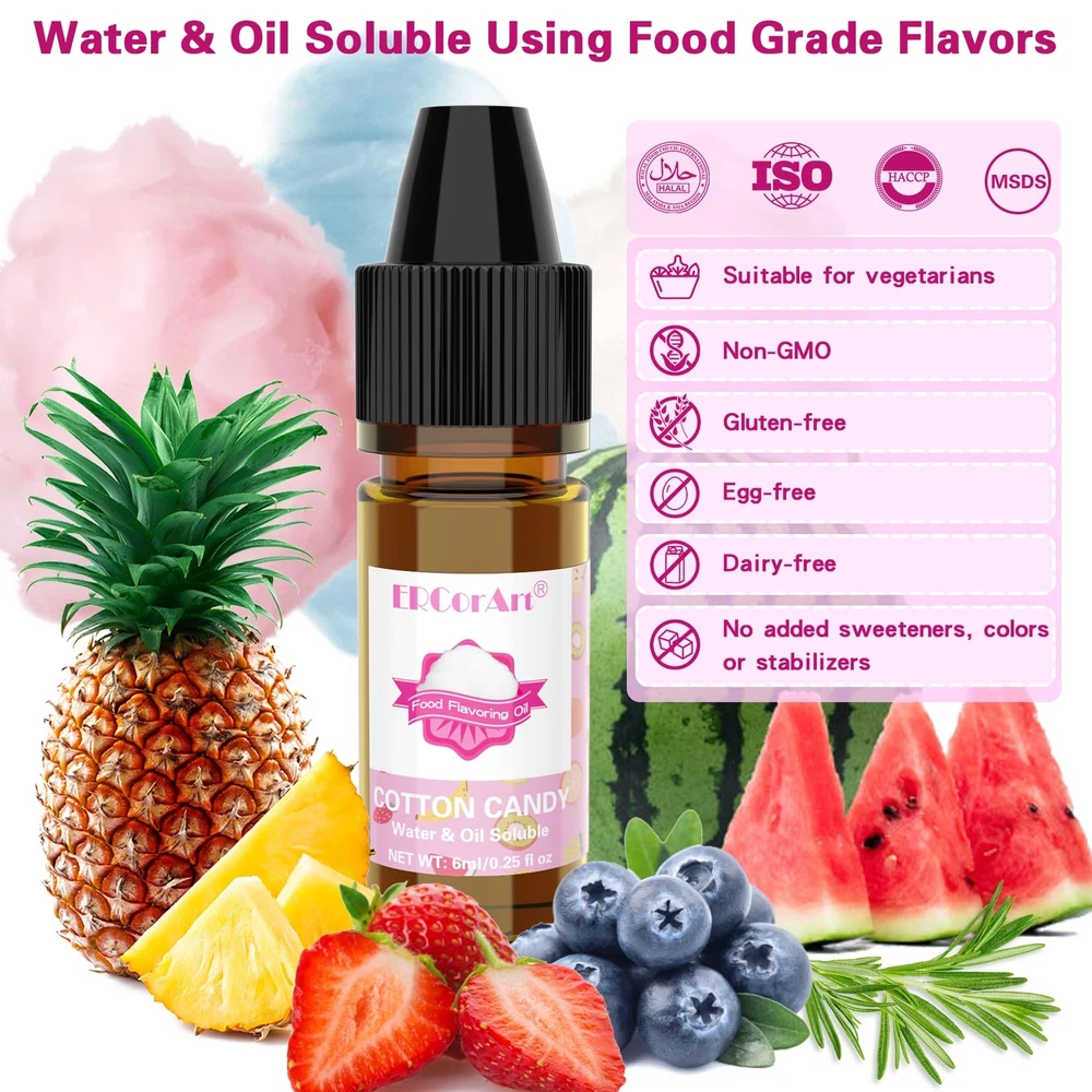 Food Flavoring Oil - Concentrated Candy Flavors, 6 Liquid Lip Gloss Flavoring WHAT YOU GET- Food flavoring oil set is water & oil soluble flavor. 6 different popular flavors: Pineapple, Strawberry, Watermelon, Vanilla, Blueberry, Cotton Candy, Use lip gloss flavoring oil to make a great present for yourself or friend. FOOD GRADE & SAFE- Candy Flavoring Oil is food grade ingredients. Non-GMO, non-Gluten, non-Sugar. Food flavoring will not change the taste of your original food, but will only add aroma and bring a different flavor to your food. Safe material perfect for DIY with your family. HIGHLY CONCENTRATED- Lip gloss flavoring oil are highly concentrated, so just a few drops, you could get a shocking aroma. The design of the squeeze bottle allows you to control the amount of flavoring oil very well, a little bit will satisfy your needs. WIDELY USED - Upgraded formula enables food flavor oil soluble in both water and oil, flavoring oil perfect for candy making, juice, cooking, baking, desserts, frosting, ice cream, also suitable for lip gloss making, lip balms, cosmetics, air fresheners, DIY slime, candles and so on. AFTER-SALES SERVICE- Regardless of any questions about lip gloss flavoring oil, please do not hesitate to talk with us in time, we will give you a satisfactory answer within 24 hours, flavoring oil can provide strong and lasting aroma effect, add color to your DIY with these food flavoring oil, wishing you have a happy shopping. Shipping We offer FREE shipping on all orders! We ship within Three business days of payment, usually sooner. We use a selection of shipping services such as UPS, FedEx, USPS etc. We only ship to the lower 48 states, no APO/FPO addresses or PO Boxes allowed. Local pickups and combined shipping options are not provided at this time. Return You can return a product for up to 30 days from the date you purchased it. Any product you return must be in the same condition you received it and in the original packaging. Please keep the receipt. Payment We accept payment by any of the following methods: PayPal Please pay as soon as possible after winning an auction, as that will allow us to post your item to you sooner! Feedback Customer satisfaction is very important to us. If you have any problem with your order, please contact us and we will do our best to make you satisfied. Contact Us If you have any queries, please contact us via ebay. We usually respond within 24 hours on weekdays. Please visit our eBay store to check out other items for sale! Thank you for shopping at our store.