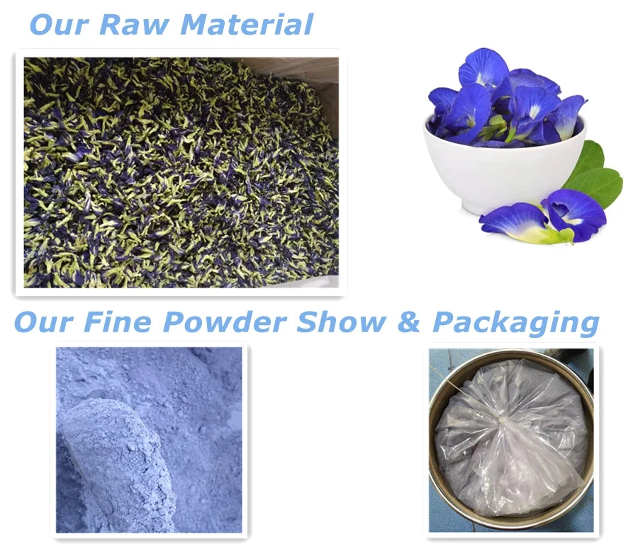 Youshuo Plant Extract Food Grade Colorant Organic 100% Natural Blue Butterfly Pea Powder Butterfly Pea Flower Powder Product Name Butterfly pea flower Powder Appearance Light Blue Fine Powder Test Method TLC Latin Name Clitoria ternatea Storage Cold Dry Place