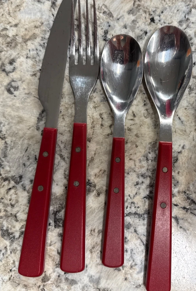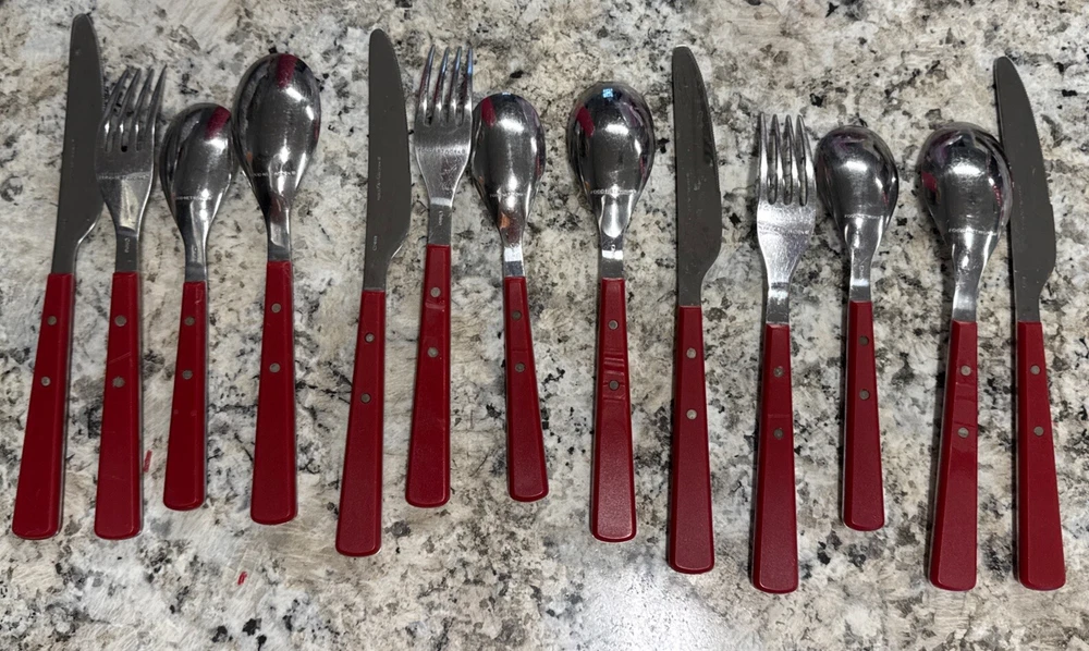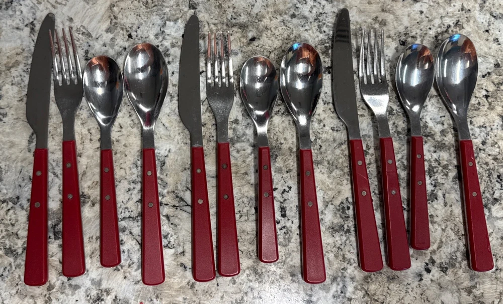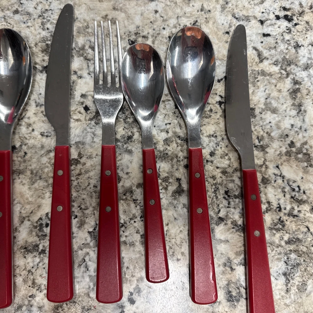 Food Network - RED HIBISCUS - Stainless Silverware / Flatware -12 Pieces