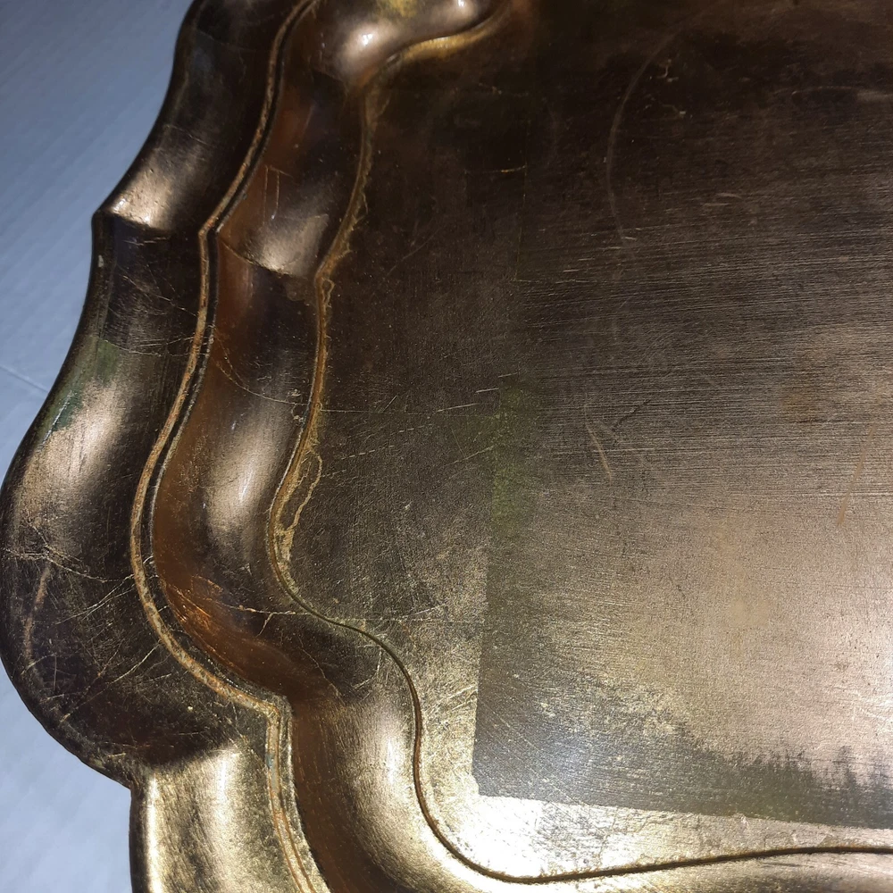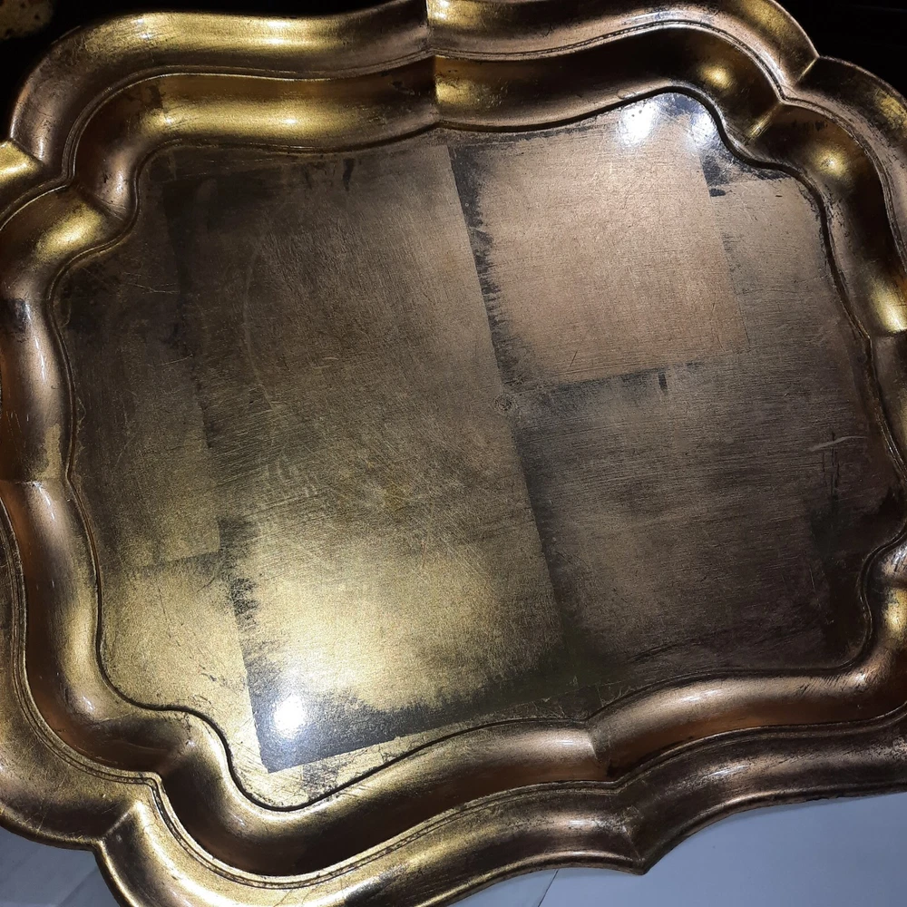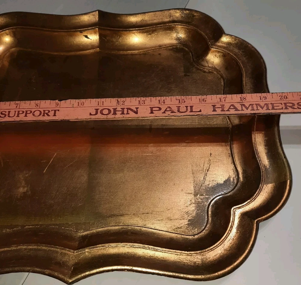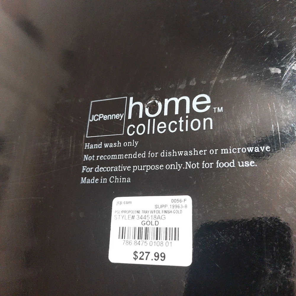 This JC Penny Home Collection serving tray is perfect for all occasions. Its rectangular shape, medium size, and gold color make it a stylish addition to any table setting. The tray is made of durable polypropolene material with a foil finish, adding a touch of elegance to your dining experience. With a length of 20 inches and a width of 16 inches, this tray is spacious enough to serve your favorite dishes. Its art deco style and design theme make it a unique piece that is sure to impress your guests. This serving tray is a must-have for anyone who loves to entertain and wants to do it in style.