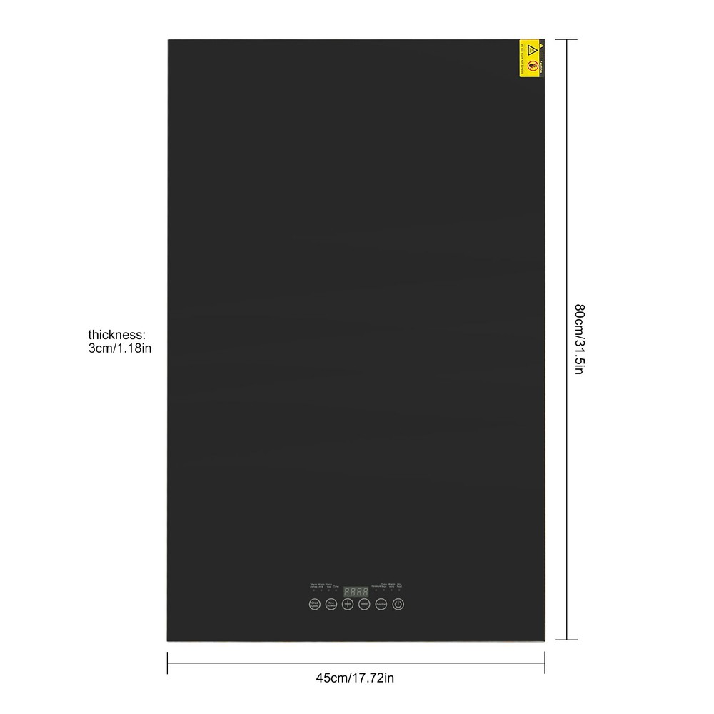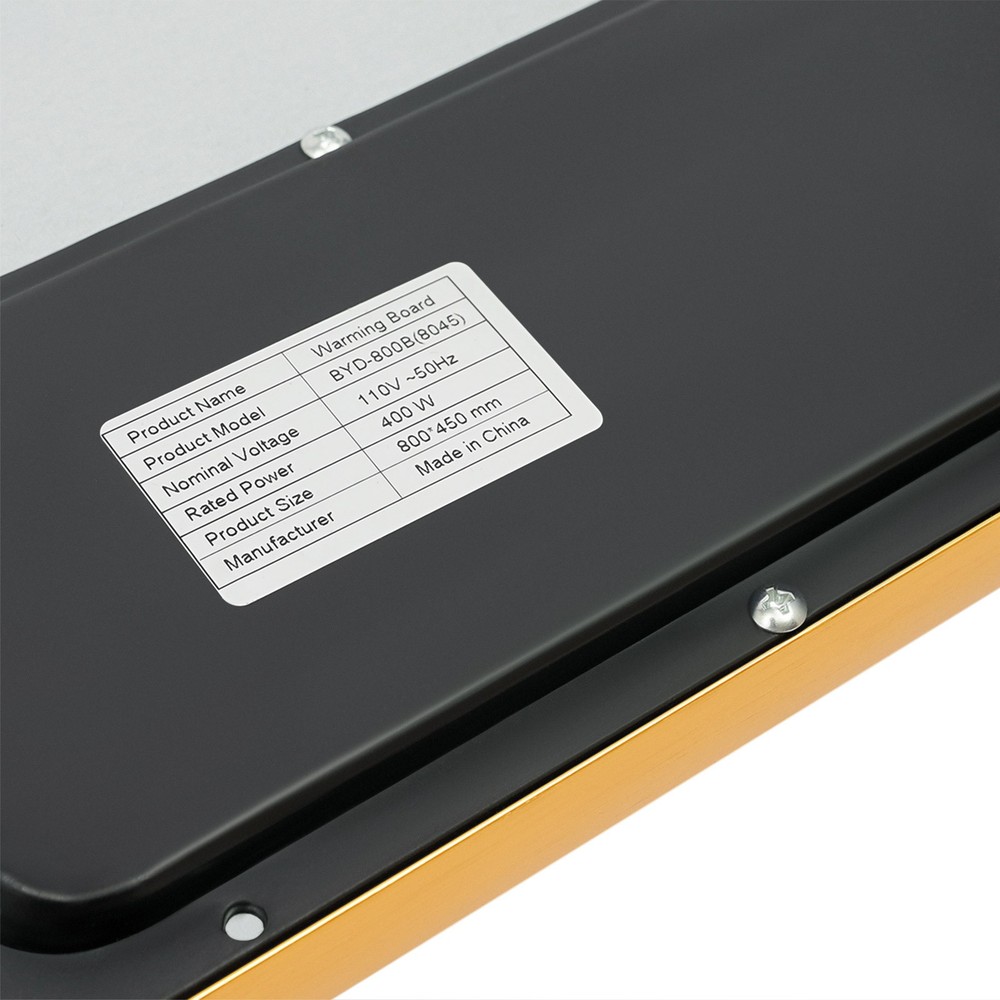 Specification Color: Black Style: Modern Model:BYD-800B(8045) Material: Tempered Glass, Galvanized Steel Mount Type: Tabletop Voltage:110V 50Hz Power: 400W Timing Setting: Timing 12H, 30min/Gear Temperature Adjustment Range: 40-140°C/104-284℉ Plug Type: US Standard Assembly Required: No Package Size: 89.5*54.5*7.5cm/35.24*21.46*2.95in Product Size: 80*45*3cm/31.5*17.72*1.81in Gross Weight: 6.3kg/13.89lbs Net Weight: 5.7kg/12.57lbs Package Included 1 * Electric Warming Tray 1 * Power Cord Food Warmer Plate Electric Warming Tray Food Warming Tray with Smart Display Welcome to our store^-^ Description This electric warming tray activates at the push of a button, keeping your food at the ideal temperature during the winter months. The smart touch screen lets you use it as you wish, making it easy to operate and heating up quickly and evenly to keep each dish fresh and delicious, so you and your family can enjoy a cosy meal. Key Features Build to Last: The product is made of high-quality tempered glass and galvanized steel, which is durable, heat-resistant, corrosion-resistant, and wear-resistant , giving the product a good service life. Excellent Performance: The product adopts infrared integral heating technology, which is fast, stable and balanced, so that each dish can remain fresh and delicious for a long time. Adjustable Design: The product's operating temperature can be flexibly adjusted between 104-284℉, which can meet your different needs, such as keeping meals/milk warm and defrosting meat. Multiple Functions: You can choose any eight functions when using the product, which are warming dishes, warming milk, warming tea, timing, reservation, defrosting, warming wine, and drying. Timer Function: You can set the timer according to your and your family's living and eating time, the product can be timed for 12 hours, every 30 minutes for a gear, to avoid unnecessary energy waste. Safety Guarantee: The "Child Lock" button on the product provides you and your kids with safety assurance, avoiding unintended activation and scalding. The fuse safety feature prevents the hot plate from overheating. The insulated feet are made of heat-resistant PVC and the product is sealed with aluminum foil on the bottom, ensuring that the countertop will not burn. Easy to Clean: Thanks to its simple structure and smooth surface, you can wipe the dirt from it with a soft cloth, which is convenient. Ideal Gift: Thanks to its practicality and beauty, you can give it to your friends as a holiday or housewarming gift! Buy with Confidence: We stand behind all our guests and look forward to assisting you with your purchase. It is our pleasure to answer your confusion and questions. The end of the story between us is not "we sell and you buy". Details Clear Warning Mark: The warning markings on the surface will give you a short and clear reminder to avoid injuries due to accidental touching in daily use. Separate Power Cable: Separate design provides greater safety for cleaning and storage. Raised Base: The raised base keeps the product at a distance from the tabletop, stabilizing the product while preventing burns to the tabletop. Application It is suitable for ceramic plates, stainless steel plates, glass plates, iron pots , melamine plates, medical stone, and other containers for heating, defrosting, and drying food in family dinners, birthday parties, friends' gatherings, holiday dinners, buffets, and other types of dining scenarios. Specification Color: Black Style: Modern Model:BYD-800B(8045) Material: Tempered Glass, Galvanized Steel Mount Type: Tabletop Voltage:110V 50Hz Power: 400W Timing Setting: Timing 12H, 30min/Gear Temperature Adjustment Range: 40-140°C/104-284℉ Plug Type: US Standard Assembly Required: No Package Size: 89.5*54.5*7.5cm/35.24*21.46*2.95in Product Size: 80*45*3cm/31.5*17.72*1.81in Gross Weight: 6.3kg/13.89lbs Net Weight: 5.7kg/12.57lbs Package Included 1 * Electric Warming Tray 1 * Power Cord Notes Please check the size carefully before ordering. The product is not hot in the surrounding area but has a high temperature in the middle, so please be careful of scalding when using it, and keep children or pets from touching it to cause burns. Please allow the slight color difference caused by the shooting light and 1-3cm error due to manual measurement, and make sure you do not mind before you order. DESCRIPTION: Payment Delivery details Terms of sales About us Contact us Payment We accept ebay payment 。 Fees such as import duties, taxes are not included in the item price or shipping costs. These charges are the buyer's responsibility. Delivery details Shipping: 2-9 working days to: USA Terms of sales We maintain high standards of excellence and strive for hundred percent customer satisfaction. Feedback is very important to us. We hope that you contact us immediately before you give neutral or negative feedback, so that we can address your concerns. It is impossible to address issues if we do not know about them! About us Your satis faction is our ultimate goal. We work hard to earn your trust and future business. Our certified technicians have tested each item before shipping. The unit comes with 1 year limited warranty on all manufacturing defects. a) If you receive a defective item, you may return it or ask for a discount. Please contact us within 14 days after you receive the package. b) What you returned must be intact and in its original packaging as re? u. Customer is responsible for shipping costs of the returned item. c) We will cover the cost of shipping back t with the shipping rate indicated in the registration page. We will send you a new unit or refund the full payment you paid. Thank you. Contact us Business Hour Business Hour: Monday To Friday: 8:30 AM to 5:00 PM (Beijing China time) Due to time zones, our reply to your questions may not be immediately. But within above working time, we will reply your email within 24 hours. If it's non-workdays, please kindly be pa