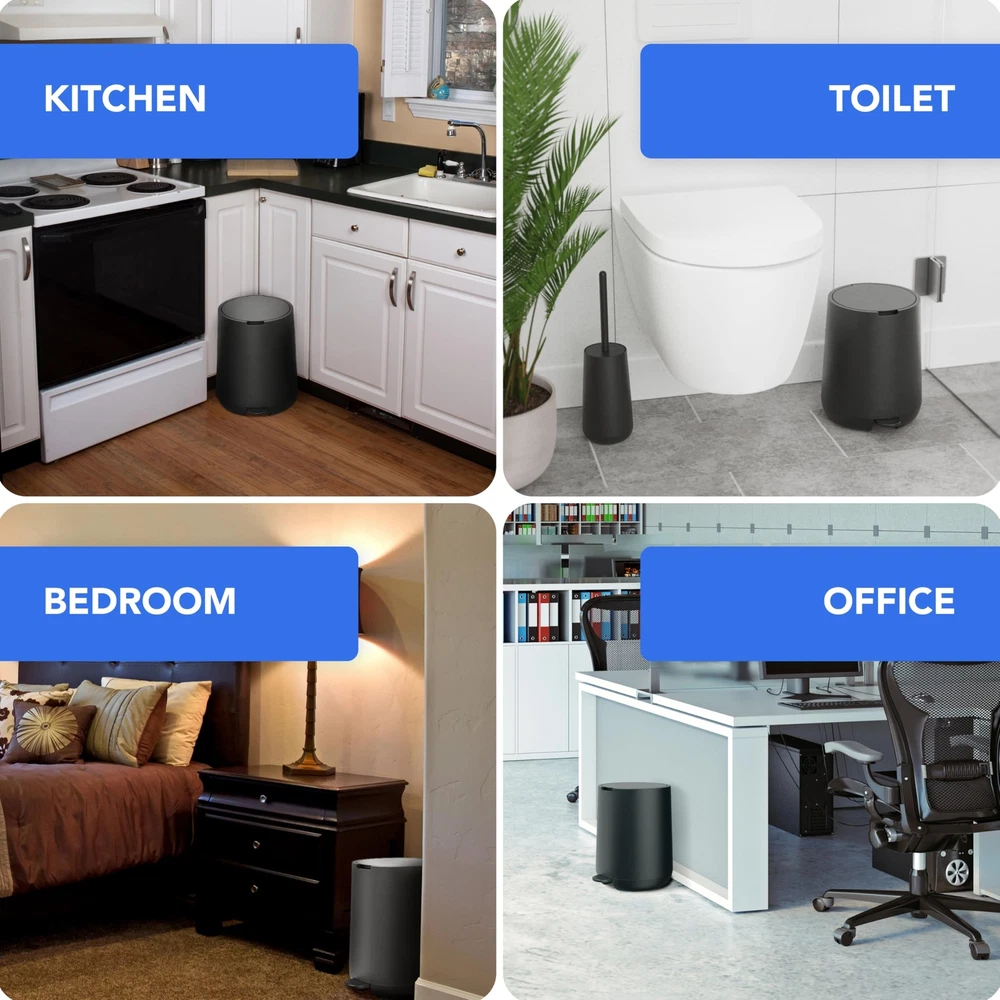 MINIMALIST ELEGANCE: Introducing our mini garbage cans with lid, a perfect blend of style and functionality. The black mini trash can enhances your space's aesthetic with its compact and chic design, making it an ideal countertop garbage can for any decor SPACE-SAVING DIMENSIONS: Measuring 10"Hx8"Lx8"W, this mini countertop trash can with lid is designed for small spaces. It's a versatile table top trash can with lid that fits perfectly in bathrooms, bedrooms, offices, and even on your desktop as a mini desktop trash can with lid DURABLE QUALITY: Crafted from high-quality plastic, our small trashcan with lid ensures durability and easy cleaning. This mini trashcan doubles as a kitchen pedal bin, making it a reliable solution for your waste disposal needs. It's more than just a simple human mini trash can, it's a durable kitchen waste bin HANDS-FREE CONVENIENCE: Experience the ease of use with our black pedal bin. The convenient foot pedal mechanism allows for a hands-free operation that is not only practical but also hygienic. This counter trash can is a must-have for any modern kitchen VERSATILE AND PRACTICAL: Our mini garbage can with lid is not limited to just bathrooms – use it as a desktop trashcan, a kitchen bin black, or any space where a small covered trash can is needed. It's a versatile rubbish bin kitchen that adapts to your lifestyle. This product serves as perfect gifts for women, gifts for men, mens gits, christmas gifts for women, christmas gifts for men, christmas gifts, womens gifts