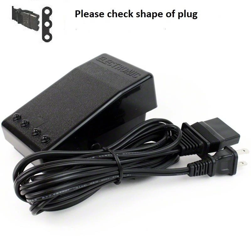 This listing is for 1 Brand New High Quality Electric Pedal Control + Power Cable for Motor Pedal Control that fits many Home SEWING MACHINES . Please check the shape of the connector end. This foot control is lighter and smoother than most others, Compatible with Kenmore 385.12912, 385.12916890, 385.1202990, 385.12102990, 385.12318990, 385.15108200, 385.15201, 385.15208, 385.15510200, 385.15512, 385.15516, 385.15008100, 385.16120200, 385.16524000, 385.1653000/30000, 385.18630890 and many others. Singer from Sears 384.13012000, 384.18024000 and others. Janome from Sears 385.4052LX200, 385.14052200, 9102D, L-39 New Home : Janome Models JD1106, 108, 204D, 303, 3125, 340, 344, 405, 415, 419S, 521, 525S, 534, 534D, 609, 639, 659, 660 Jem Gold, 661 (Jem Gold 2), 814,1004, 1612, 1622, 1803, 1814, 1818, 1822, 2003P, 2041, 2049, 3128, 3434D, 4014, 4018, 4023, 4026, 4052, 4119, 4612, 4618, 5018, 5024, 9102D, 1110DX, HF2022, Harmony 4045, HF1012, JD1818, JD1822, JS1008, L393, LR Series, QS2250, RX18, Decor Excel 5018, Jem Gold 2, MC4023, MC4018, Hello Kitty & TB-12, MyStyle 100. Elna : 1010, 202, 2002, 2004, 2006, 2130, 3003, 3005, 3008 (3/16" groove width) Viking : Huskystar, 207, 215, 219, 301 Hobby, 303, 307, Hobby 382, 541, 721, 741, 752, 1016, 1020, 1032, 1040, 1042, Hobby 1122, hobby 1132, hobby 1142, 4220 & 4752 Part # H003825, ( 033770217L-110V-Y ),(C-1028),(YC-482-J),(0033870104),(TJC-150),(31119115),(C1011) Made in Taiwan