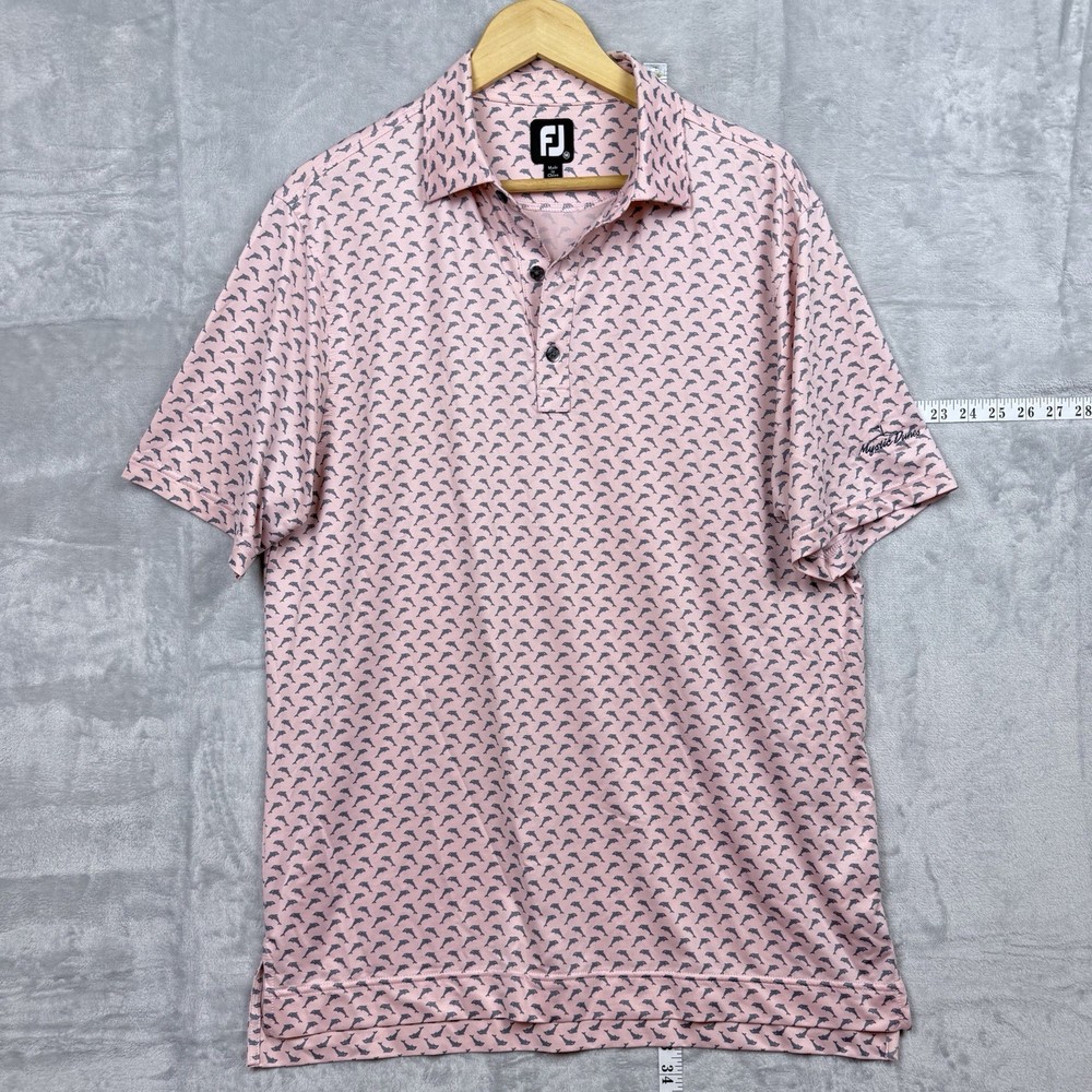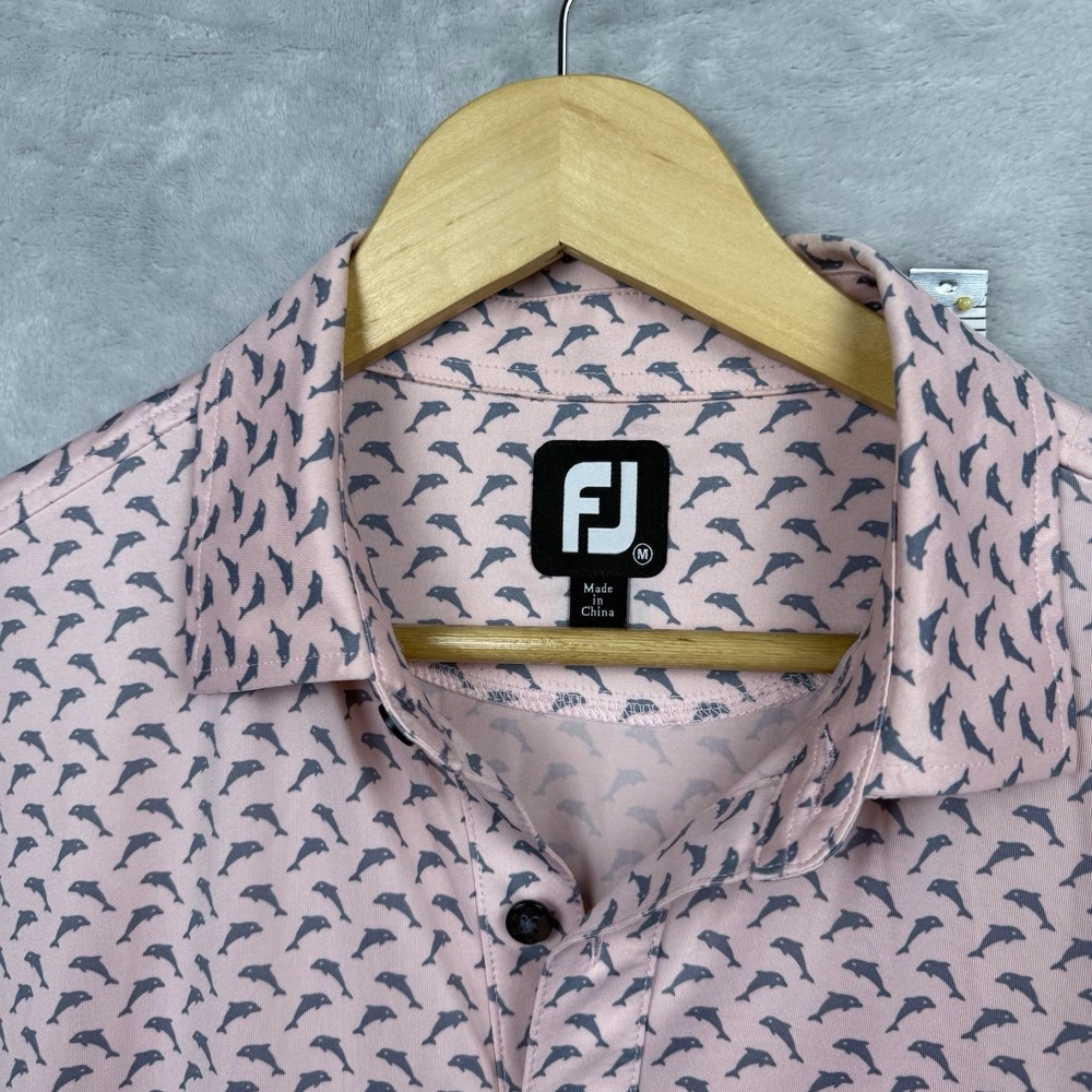 FootJoy FJ Pink Dolphin Print Golf Polo Shirt M Performance Stretch Short Sleeve