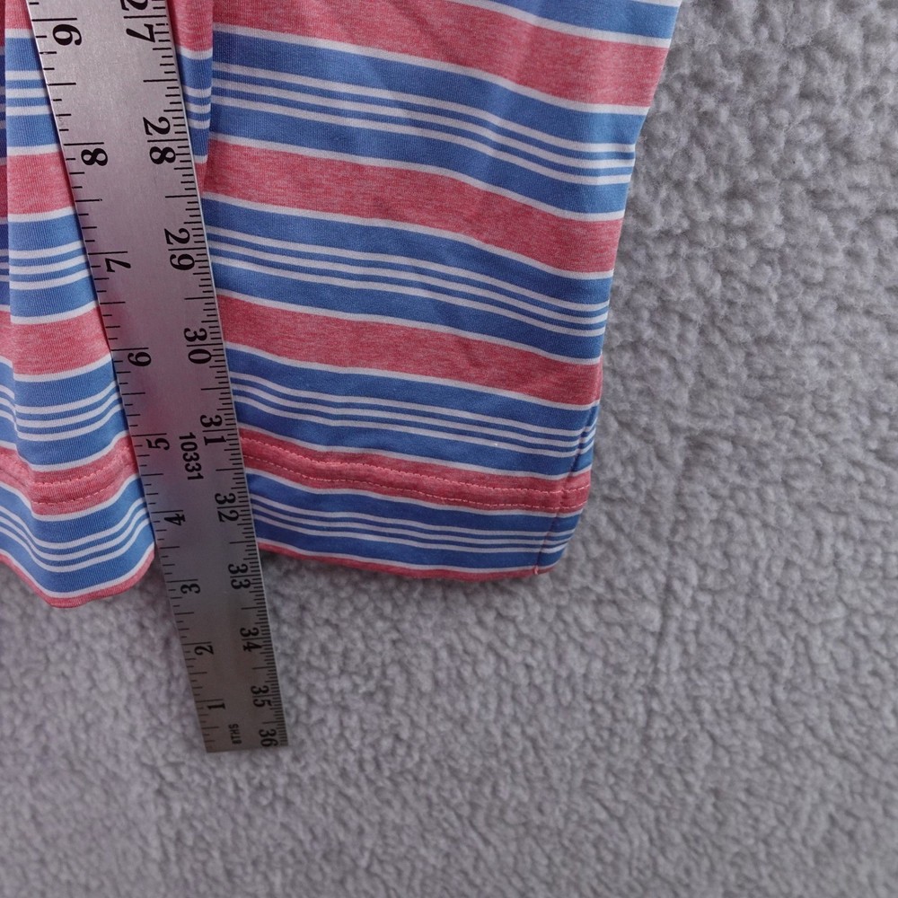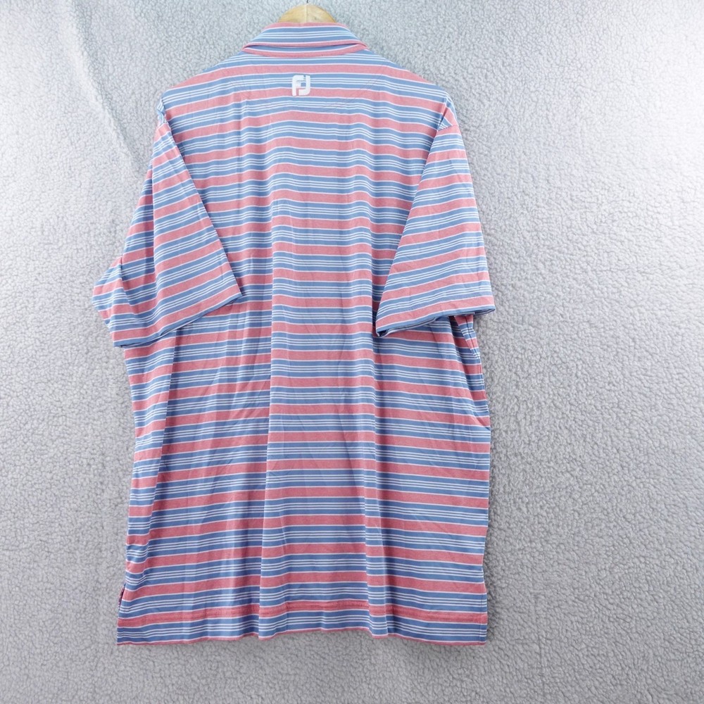 Elevate your golf game with this FootJoy polo shirt. Bold stripes define this shirt, while the Anthem Country Club logo adds a touch of exclusivity. Experience the effortless comfort that boosts your confidence on the green. Imagine yourself striding onto the fairway, the envy of your fellow golfers. Perfect for a casual round, a weekend tournament, or even a country club social event. Measurements: • Sleeve Length: 26 in • Length: 32 in Type: Polo Department: Men Product Line: FootJoy Golf Closure: Button Sleeve Length: Short Sleeve Performance/Activity: Golf Features: Quick Dry, Moisture Wicking Neckline: Collared Fit: Regular Pattern: Striped Style: Basic Keywords: FootJoy, golf polo, men's polo, Anthem Country Club, striped polo, athletic shirt, golf shirt, casual polo, sports shirt, performance polo, pink blue striped, short sleeve polo, men's golf apparel, country club style