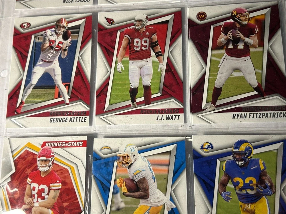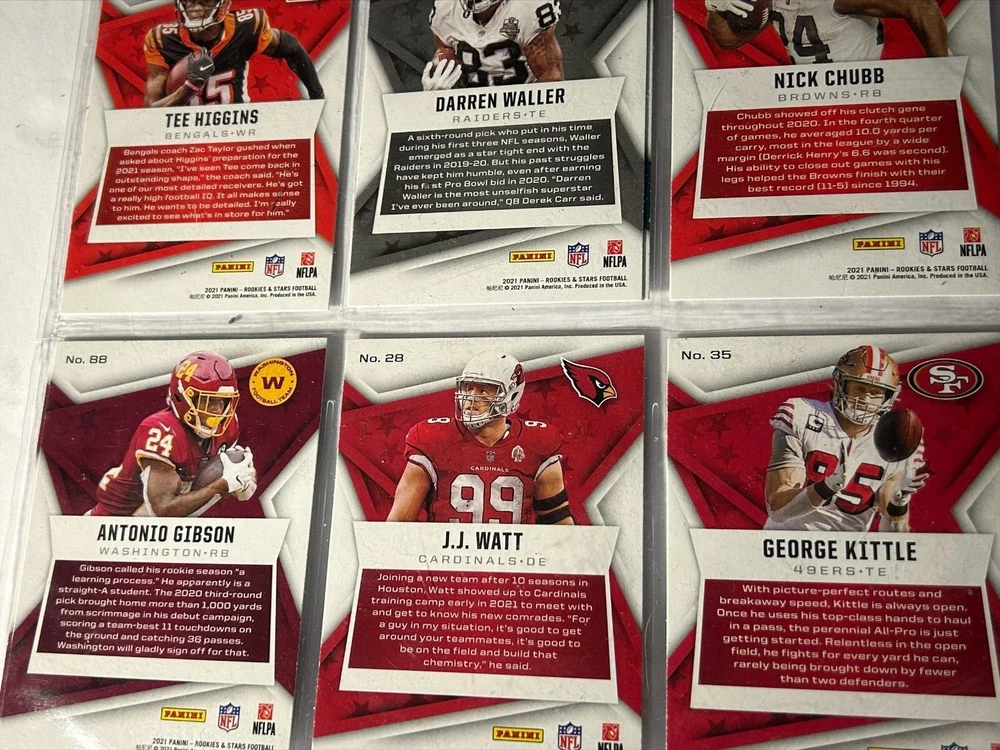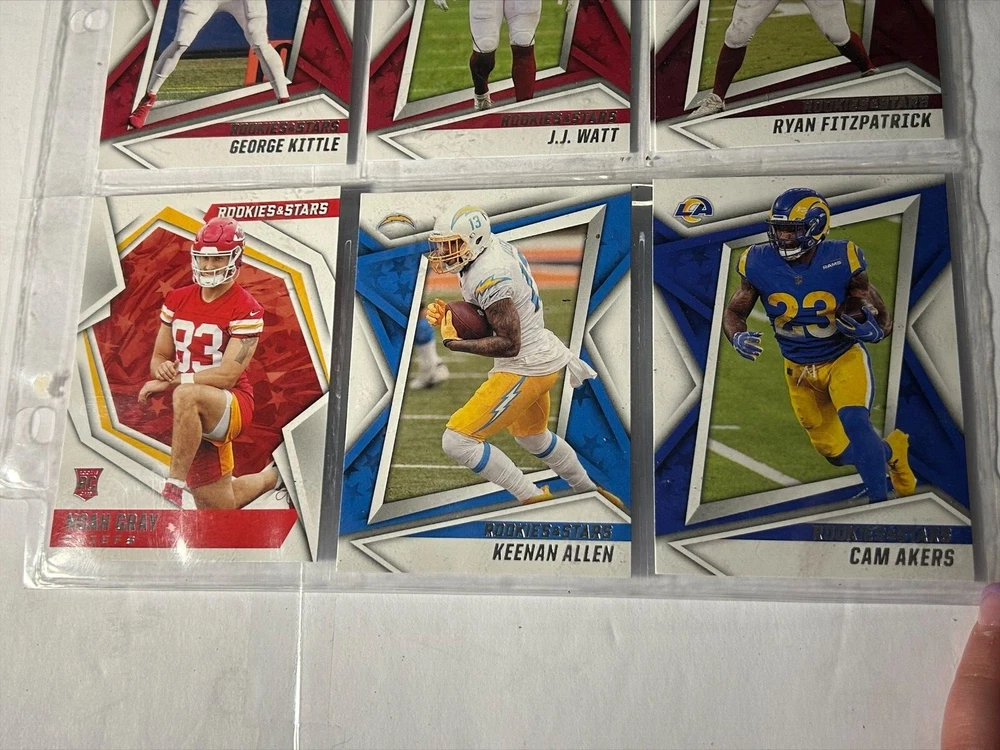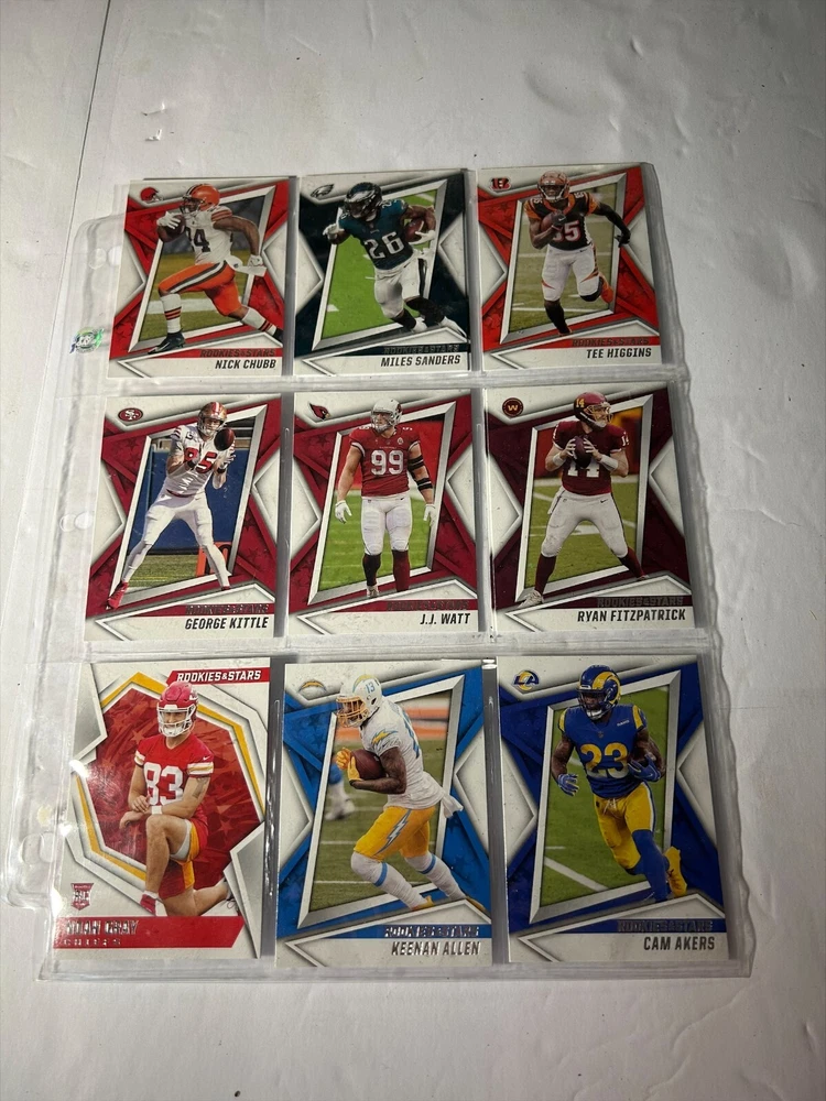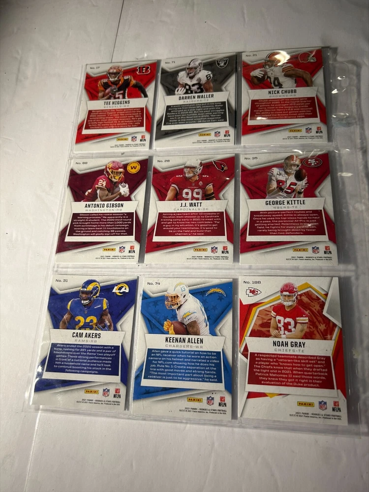 C22 Dive into the thrilling world of sports memorabilia with this diverse lot of 9 football trading cards. Each card captures a moment in football history, featuring players who have left an indelible mark on the game. Whether you're a seasoned collector or just starting out, these cards offer a chance to own a piece of sports heritage. The lot includes cards from various sets and years, ensuring a range of players and moments to choose from. Perfect for display, trade, or further collection, these cards are a must-have for any football enthusiast looking to expand their treasure trove of sports keepsakes.
