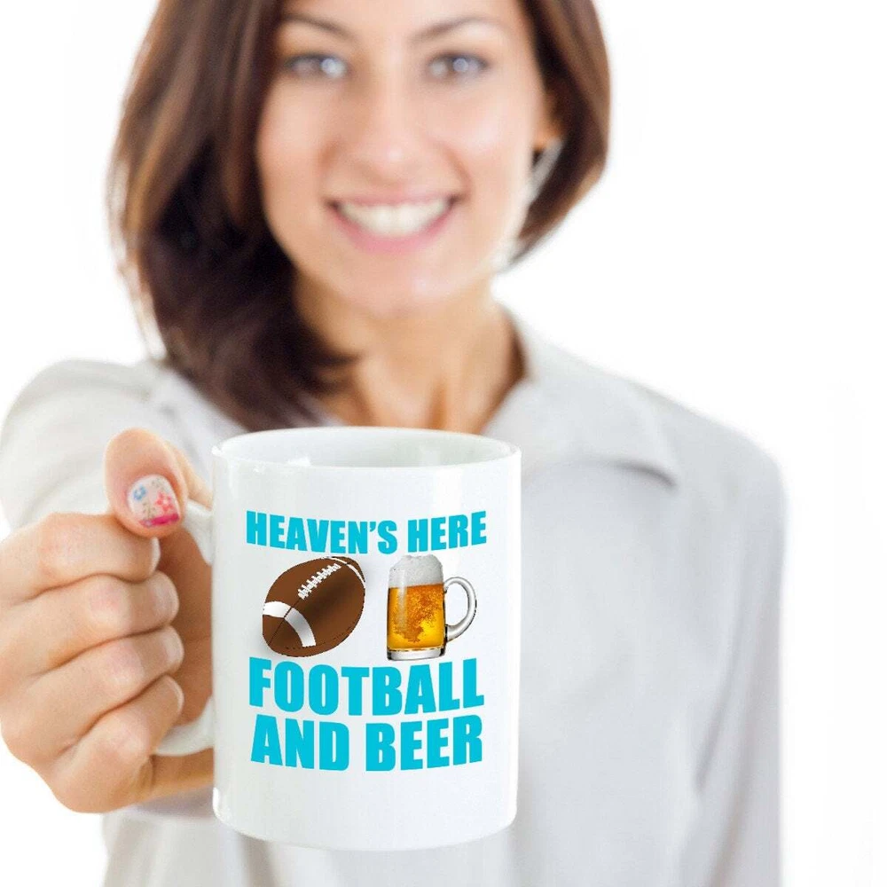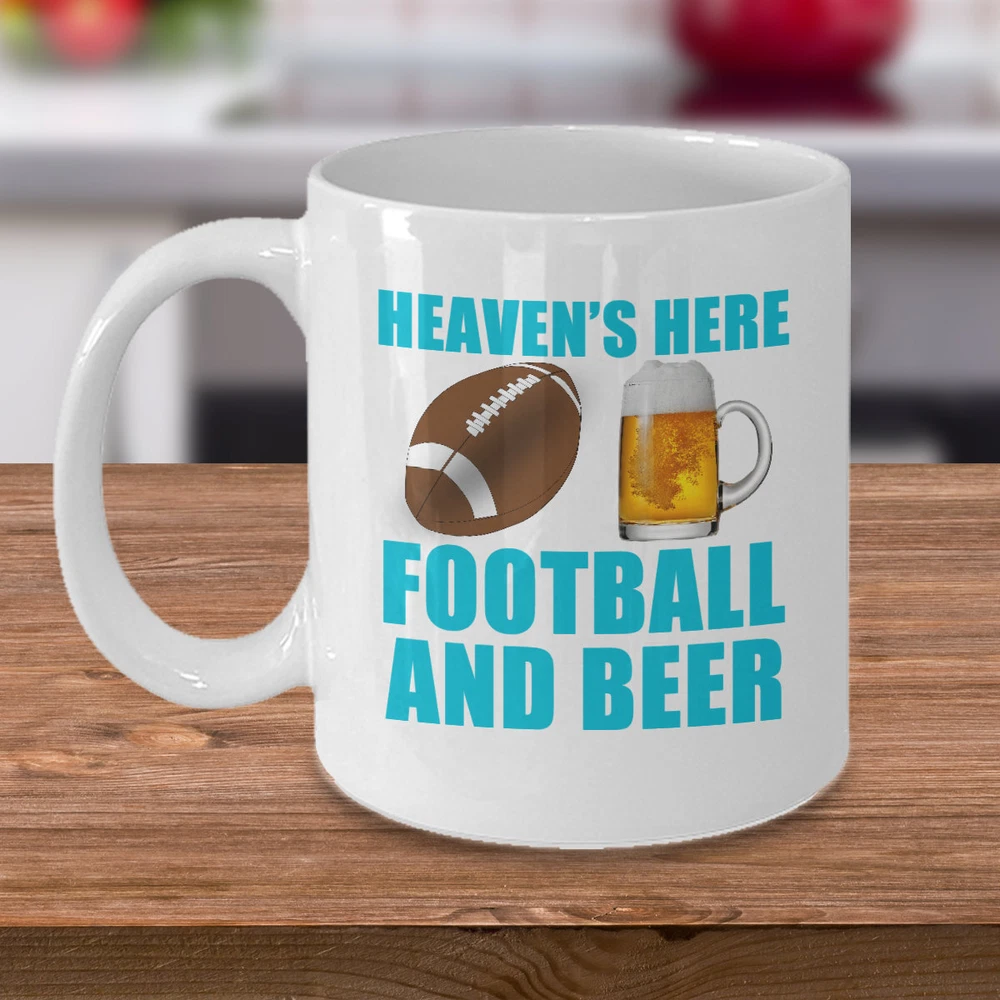 Football Mug Football Coffee Mug Football Football Gift Football Heaven Mug Product Details.. This high quality 11oz. ceramic white mug has a premium hard coat that provides crisp and vibrant color reproduction sure to last for years. Perfect for all hot & cold beverages. The highest quality printing possible is used. It will never fade no matter how many times you wash it. Material: 100% Ceramic. Print both sides. Dishwasher and Microwave Safe. High Gloss + Premium White Finish. Printed in the U.S.A. Personalized & Custom. We support personalized and custom mug to add custom, when placing an order, you can add notes to the "order note" in shipping address section. Also you can contact us directly via message. Shipping Info. Ready to ship in 1 to 2 business days, All products are made-to-order and proudly printed in the United States. Shipped by USPS and DHL, You will receive your order in 5-7 days. Replace & Refund. All products are defective during shipping broken, chipped will be replaced free of charge. You are not satisfied with the product, we will refund 100% money to you. If any other issues arise, please do not hesitate to message, we would be more than happy to assist you.