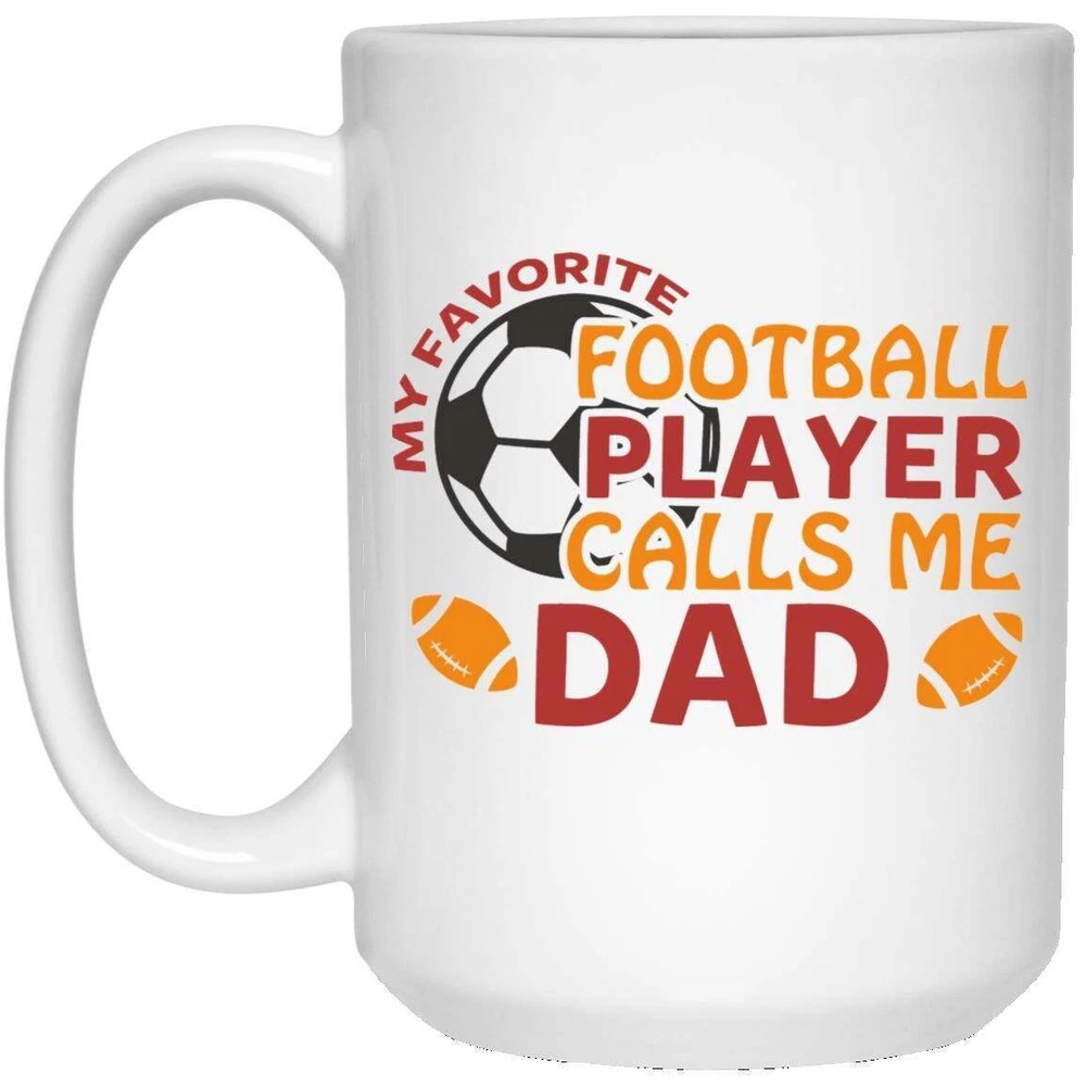 Football Mug My Favorite Football Player Calls Me Dad Coffee Mugs Gift For Product Details.. This high quality 11oz. ceramic white mug has a premium hard coat that provides crisp and vibrant color reproduction sure to last for years. Perfect for all hot & cold beverages. The highest quality printing possible is used. It will never fade no matter how many times you wash it. Material: 100% Ceramic. Print both sides. Dishwasher and Microwave Safe. High Gloss + Premium White Finish. Printed in the U.S.A. Personalized & Custom. We support personalized and custom mug to add custom, when placing an order, you can add notes to the "order note" in shipping address section. Also you can contact us directly via message. Shipping Info. Ready to ship in 1 to 2 business days, All products are made-to-order and proudly printed in the United States. Shipped by USPS and DHL, You will receive your order in 5-7 days. Replace & Refund. All products are defective during shipping broken, chipped will be replaced free of charge. You are not satisfied with the product, we will refund 100% money to you. If any other issues arise, please do not hesitate to message, we would be more than happy to assist you.