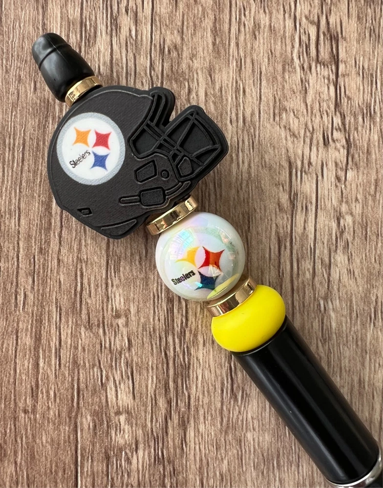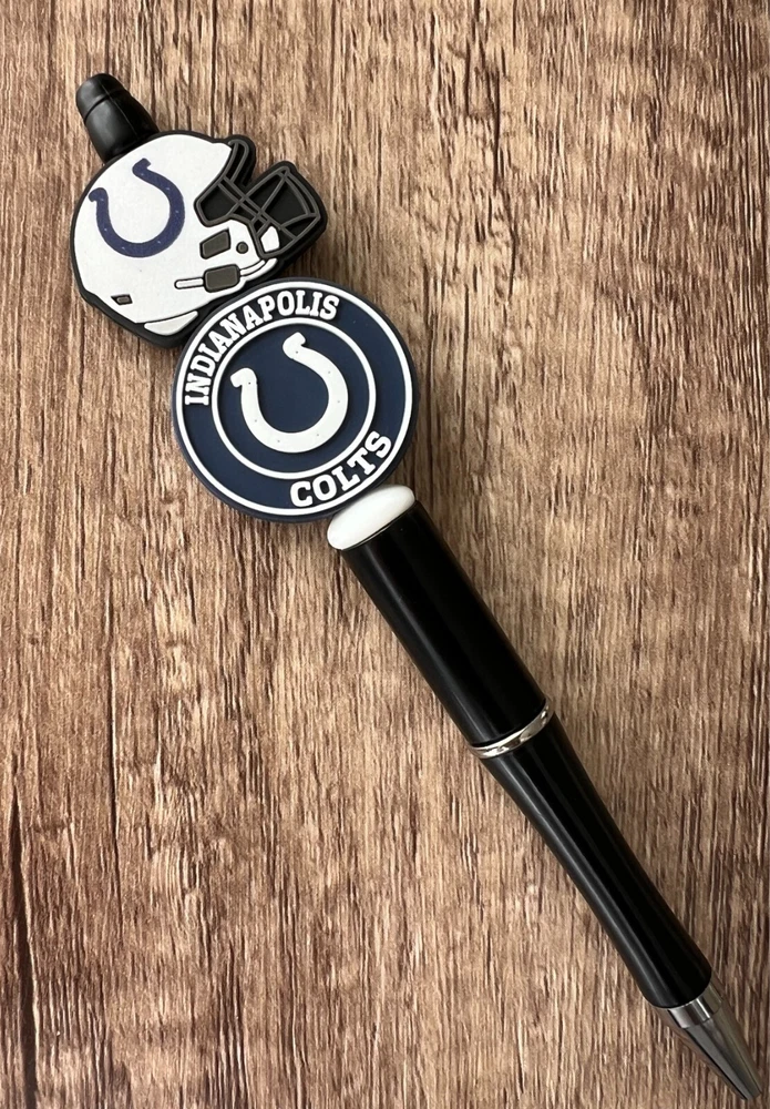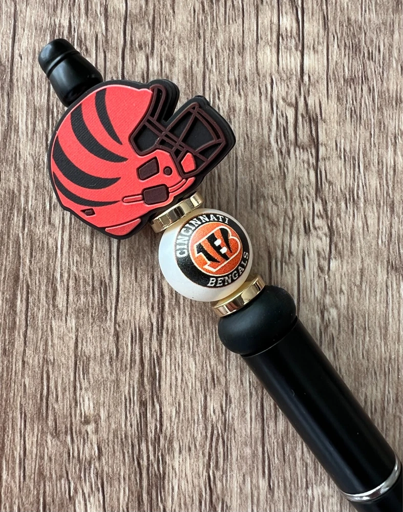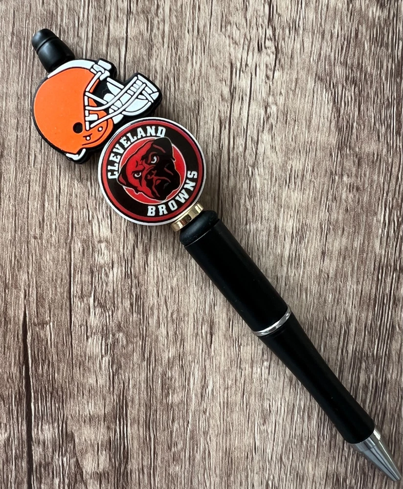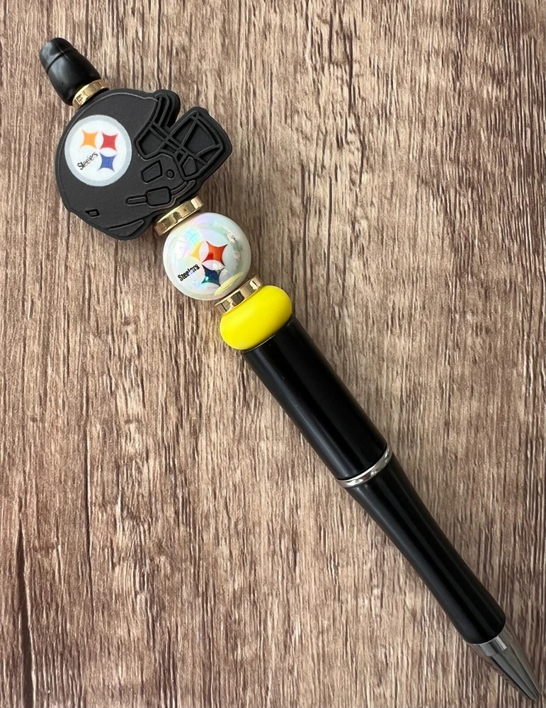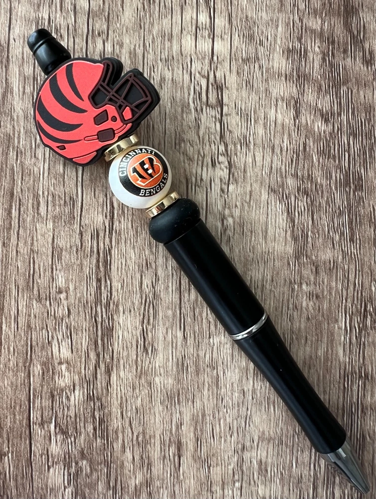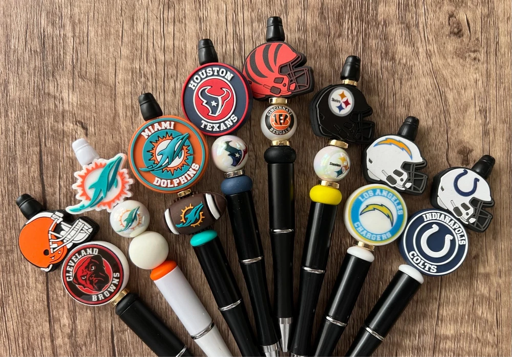 Show your love for football with your team pen. Featuring the colors of your favorite team logo, this pen is the perfect accessory for any game day. This pen is a must-have for any football fan. Whether you're taking notes in the office or signing autographs at a meet-and-greet, this pen is both practical and stylish. Each pen has a plastic pen barrel with retracting black ink, made with silicone focal beads. Add it to your collection of fan apparel and souvenirs, and show your support for your team all season long. Get your hands on this one-of-a-kind football pen today! Price includes one pen. All Pens come with a free black ink refill. *Not suitable for small children.