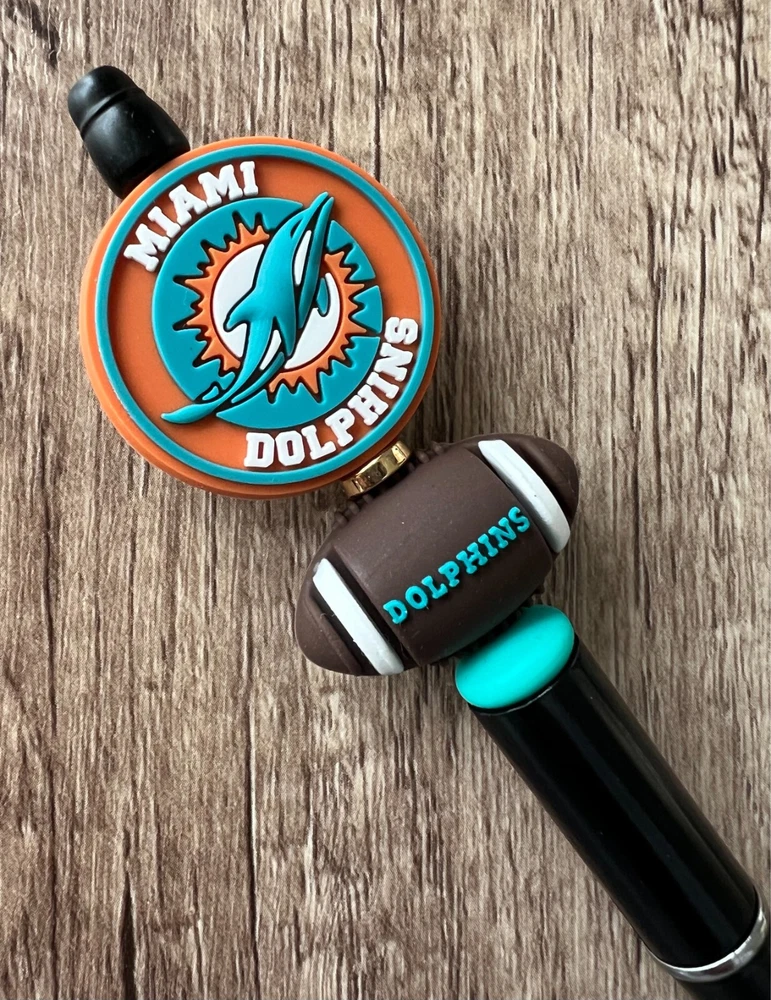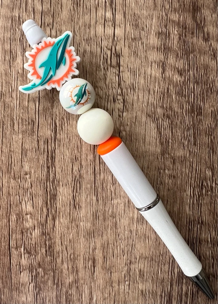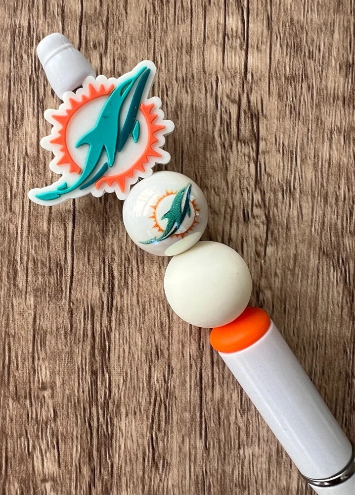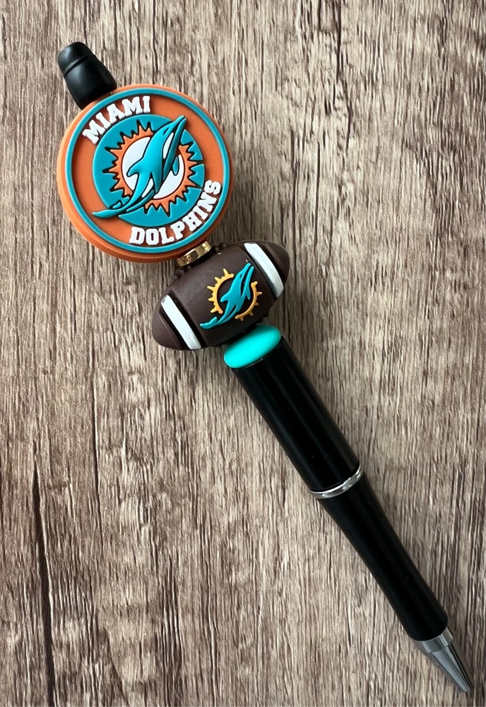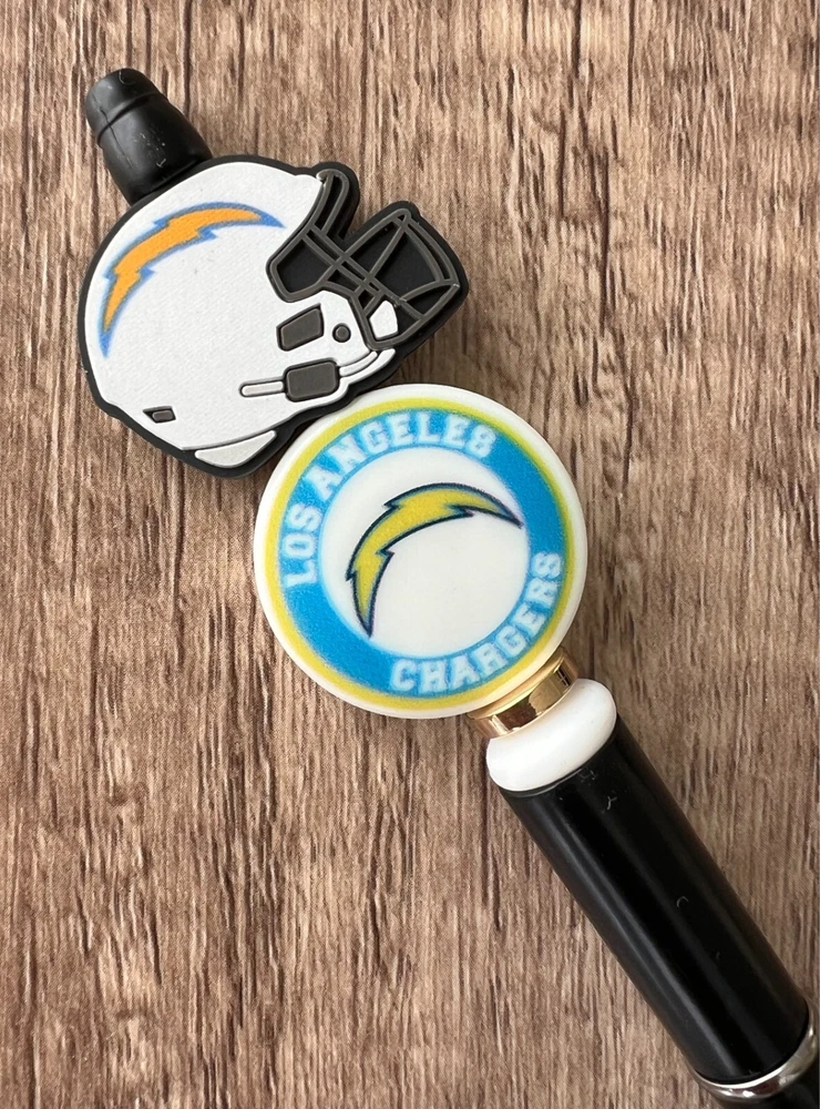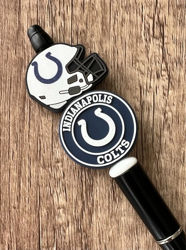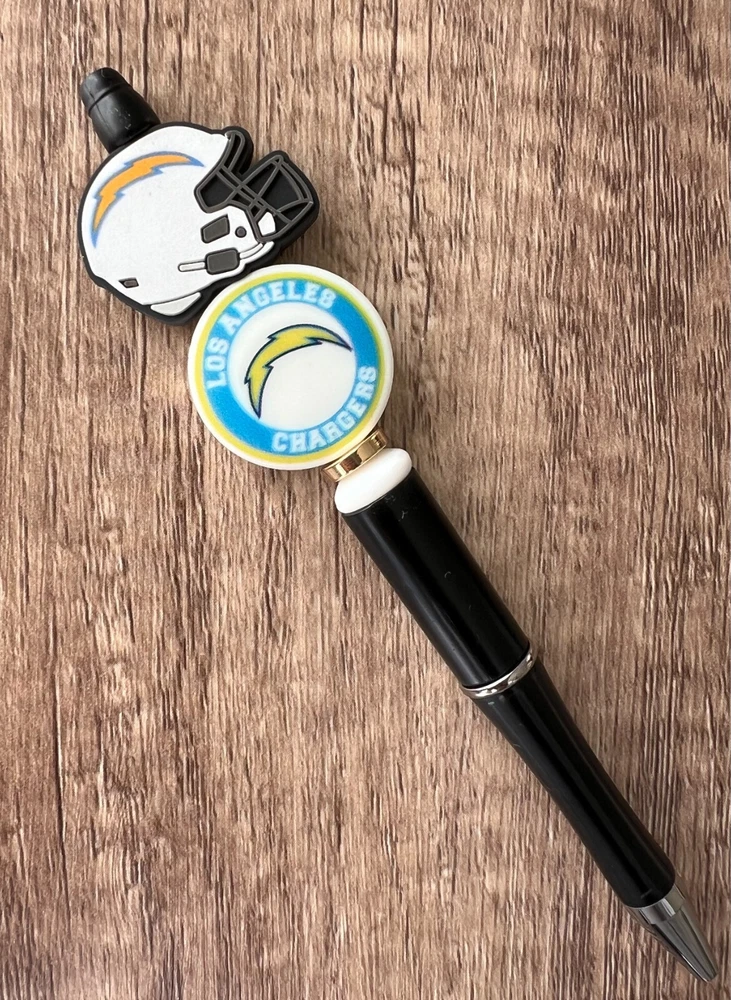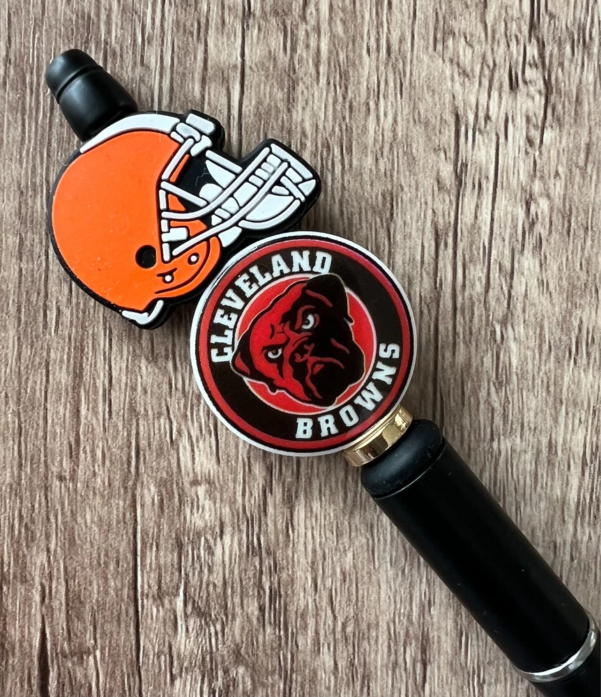 Show your love for football with your team pen. Featuring the colors of your favorite team logo, this pen is the perfect accessory for any game day. This pen is a must-have for any football fan. Whether you're taking notes in the office or signing autographs at a meet-and-greet, this pen is both practical and stylish. Each pen has a plastic pen barrel with retracting black ink, made with silicone focal beads. Add it to your collection of fan apparel and souvenirs, and show your support for your team all season long. Get your hands on this one-of-a-kind football pen today! Price includes one pen. All Pens come with a free black ink refill. *Not suitable for small children.
