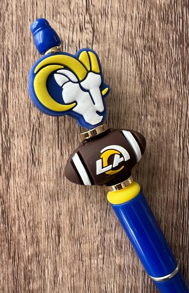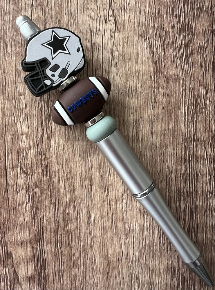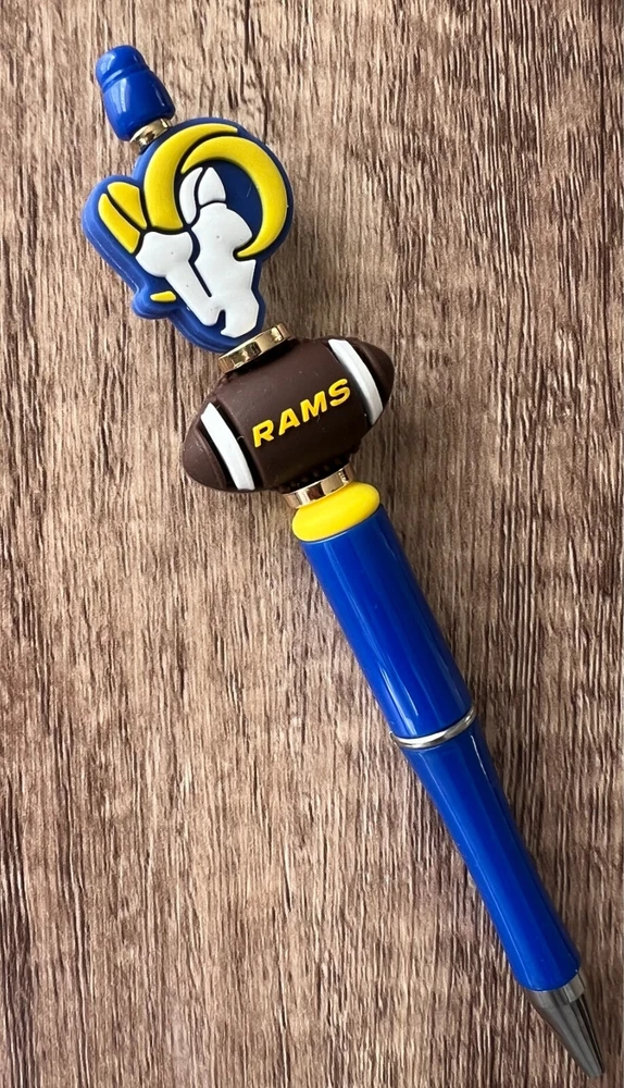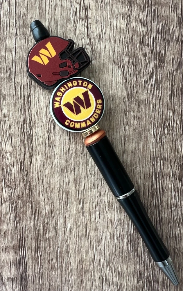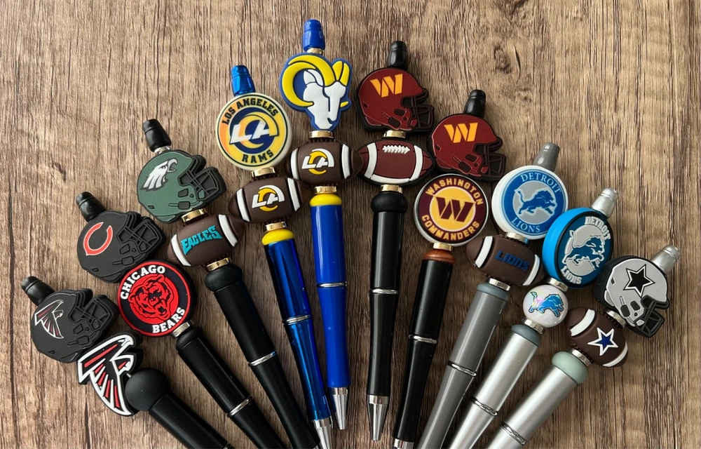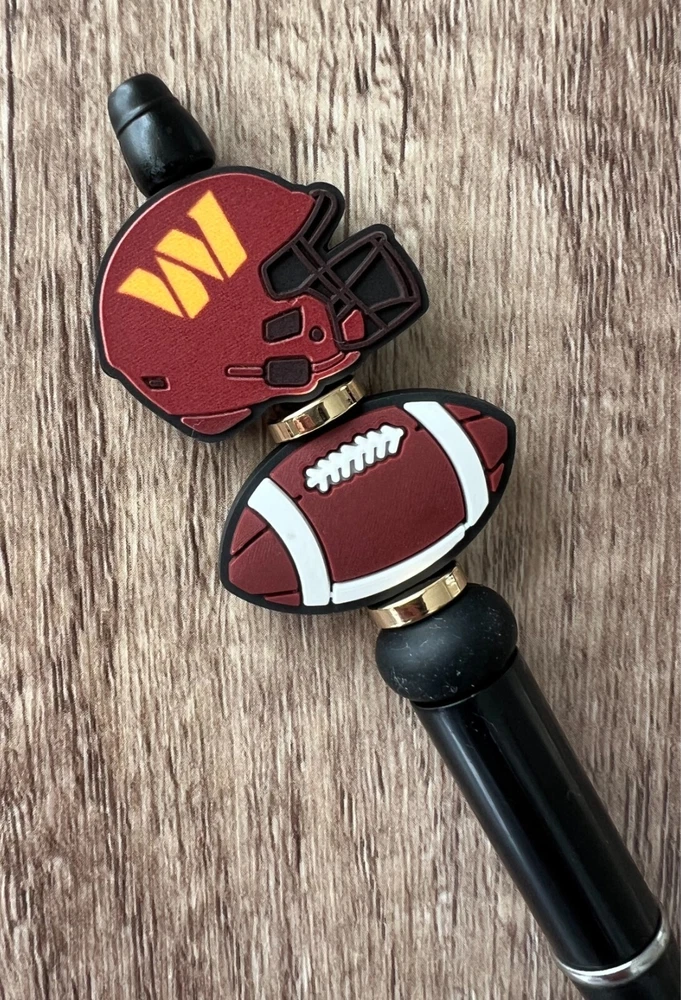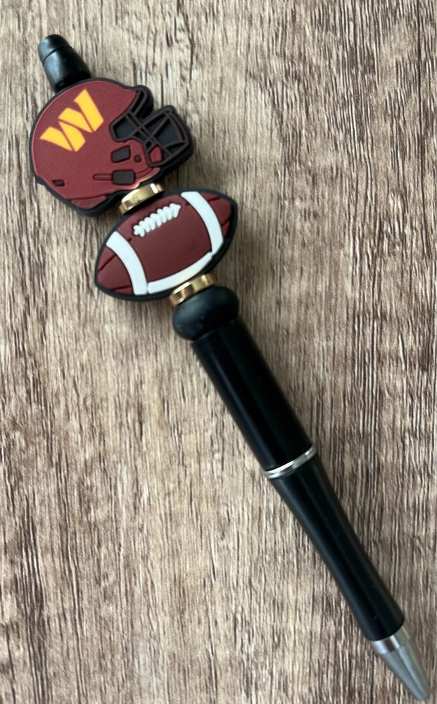 Show your love for football with your team pen. Featuring the colors of your favorite team logo, this pen is the perfect accessory for any game day. This pen is a must-have for any football fan. Whether you're taking notes in the office or signing autographs at a meet-and-greet, this pen is both practical and stylish. Each pen has a plastic pen barrel with retracting black ink, made with silicone focal beads. Add it to your collection of fan apparel and souvenirs, and show your support for your team all season long. Get your hands on this one-of-a-kind football pen today! Price includes one pen. All Pens come with a free black ink refill. *Not suitable for small children.