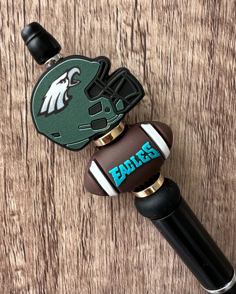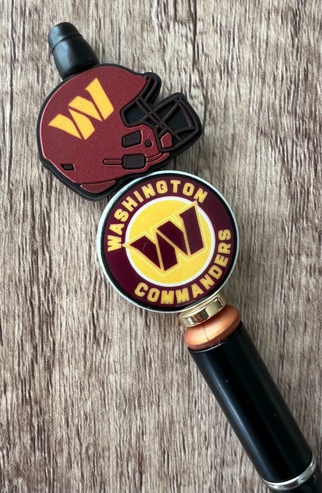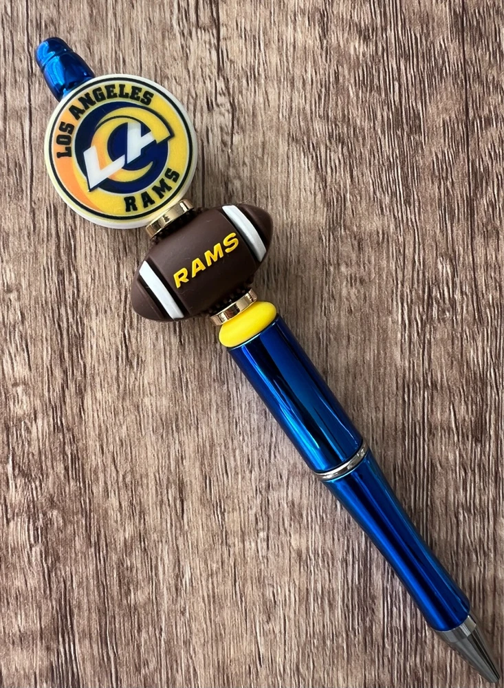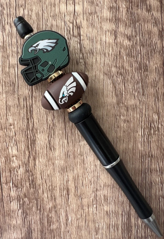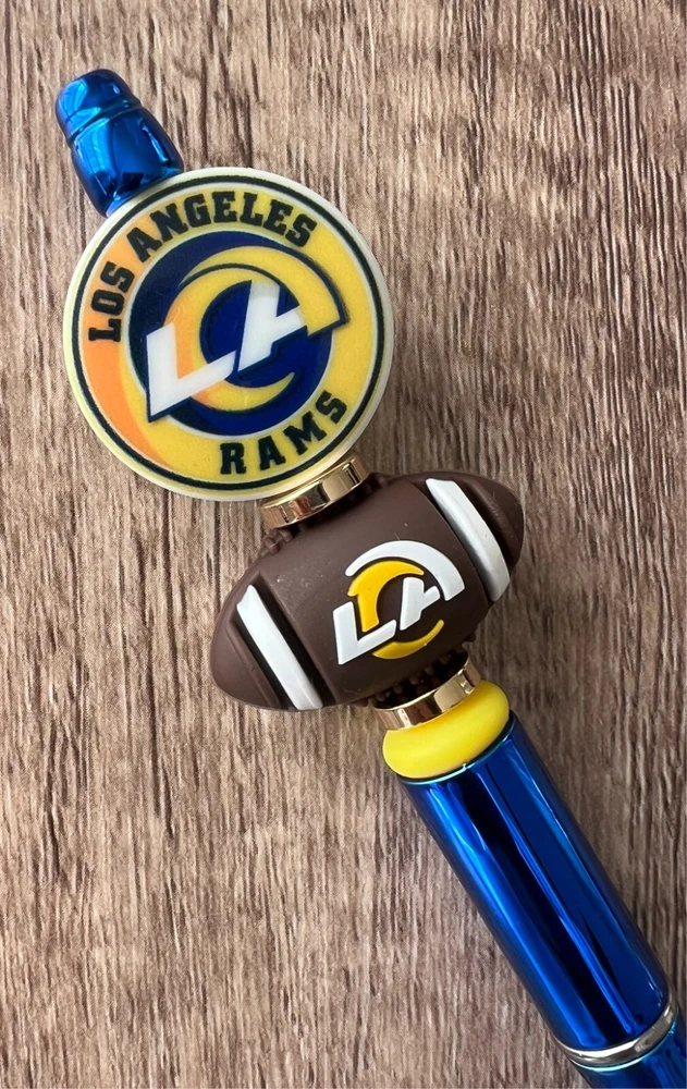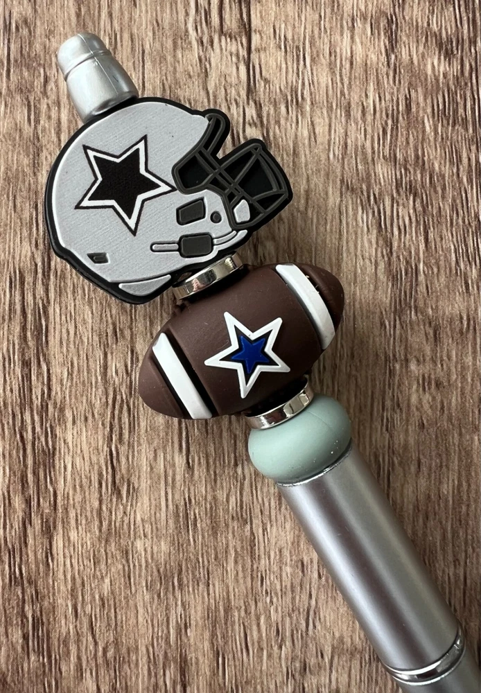 Show your love for football with your team pen. Featuring the colors of your favorite team logo, this pen is the perfect accessory for any game day. This pen is a must-have for any football fan. Whether you're taking notes in the office or signing autographs at a meet-and-greet, this pen is both practical and stylish. Each pen has a plastic pen barrel with retracting black ink, made with silicone focal beads. Add it to your collection of fan apparel and souvenirs, and show your support for your team all season long. Get your hands on this one-of-a-kind football pen today! Price includes one pen. All Pens come with a free black ink refill. *Not suitable for small children.