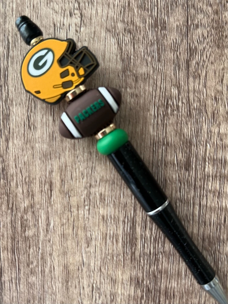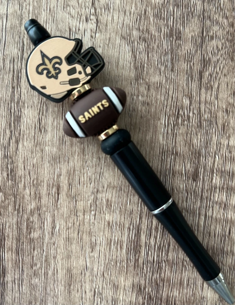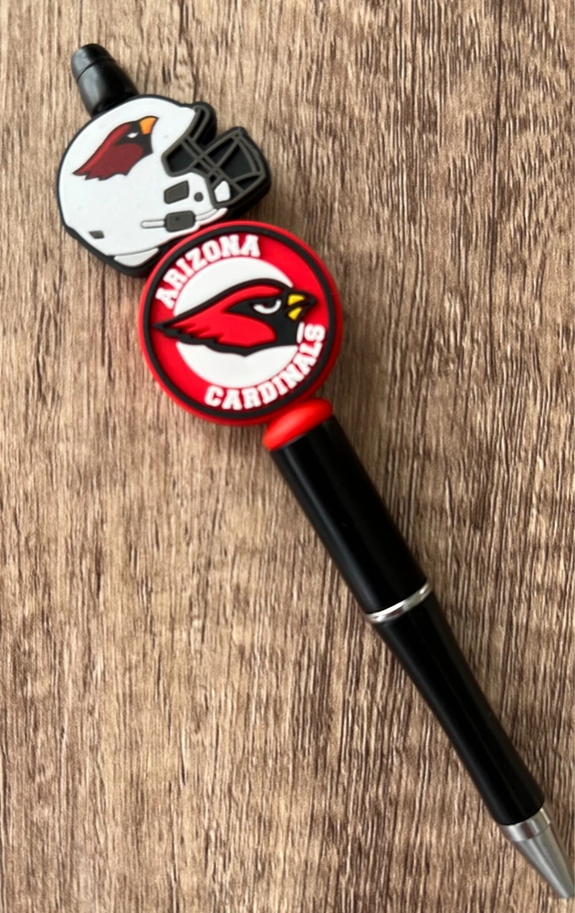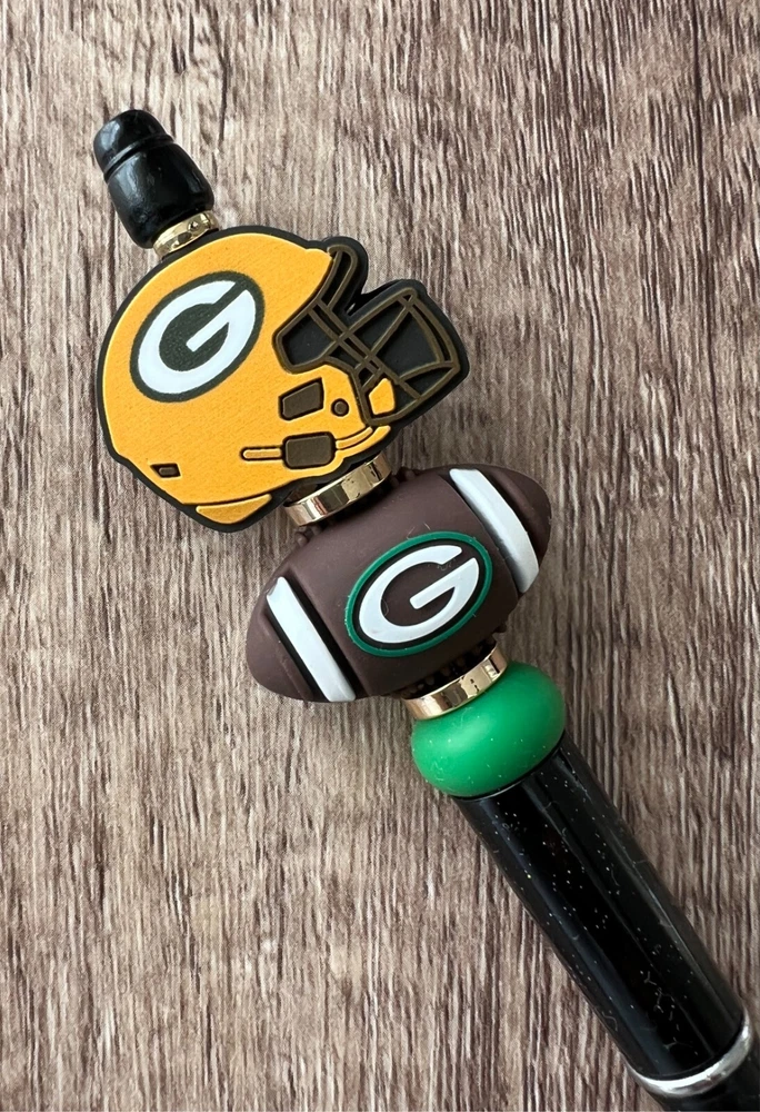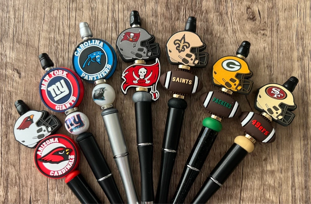 Show your love for football with your team pen. Featuring the colors of your favorite team logo, this pen is the perfect accessory for any game day. This pen is a must-have for any football fan. Whether you're taking notes in the office or signing autographs at a meet-and-greet, this pen is both practical and stylish. Each pen has a plastic pen barrel with retracting black ink, made with silicone focal beads. Add it to your collection of fan apparel and souvenirs, and show your support for your team all season long. Get your hands on this one-of-a-kind football pen today! Price includes one pen. All Pens come with a free black ink refill. *Not suitable for small children.