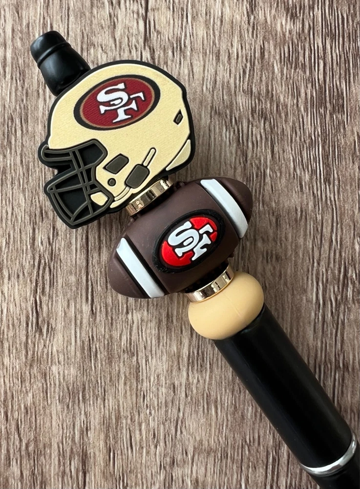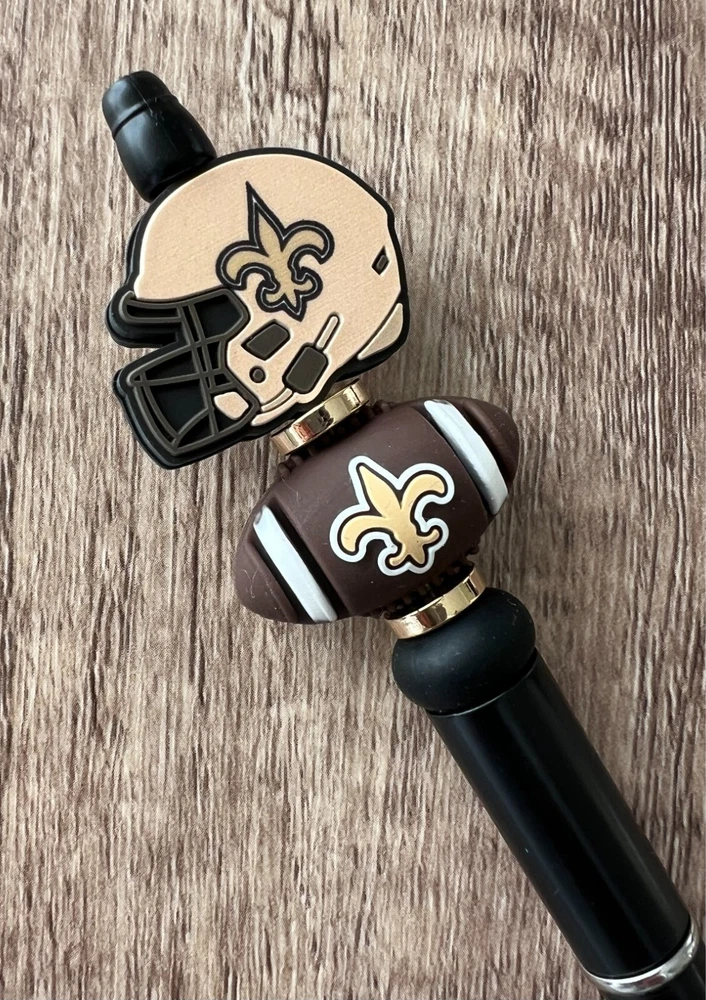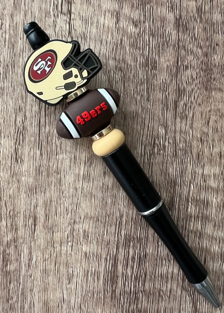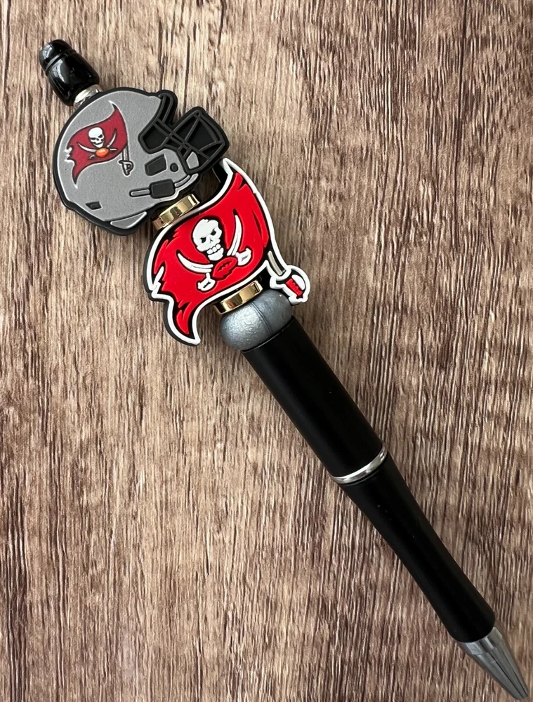 Show your love for football with your team pen. Featuring the colors of your favorite team logo, this pen is the perfect accessory for any game day. This pen is a must-have for any football fan. Whether you're taking notes in the office or signing autographs at a meet-and-greet, this pen is both practical and stylish. Each pen has a plastic pen barrel with retracting black ink, made with silicone focal beads. Add it to your collection of fan apparel and souvenirs, and show your support for your team all season long. Get your hands on this one-of-a-kind football pen today! Price includes one pen. All Pens come with a free black ink refill. *Not suitable for small children.
