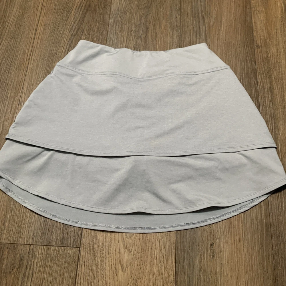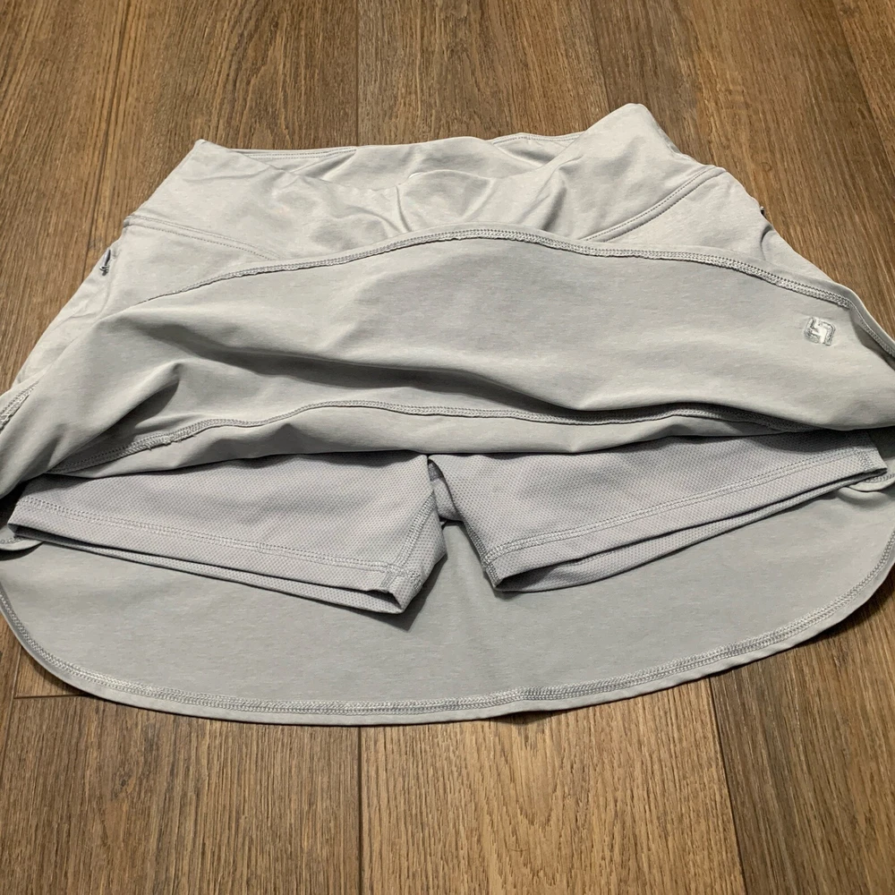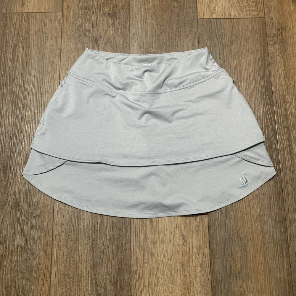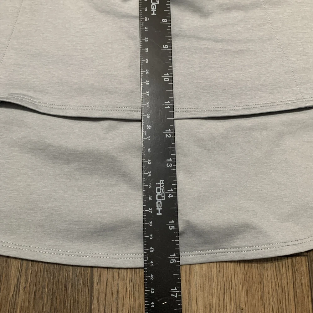 The Footjoy Women's Performance Layered Skort in Heather Gray is a modern and sporty athletic wear designed for women golfers. Made of polyester and spandex knit fabric, it features an elastic waist, anti-microbial and anti-odor technology, moisture-wicking, and breathable properties. It has pockets and a flat front design. The skort has a pull-on closure and a mid-rise. It is machine washable and easy to care for. The skort is part of the Footjoy product line and was manufactured in China.CLOTHING AND FABRIC ITEMS: All clothing and fabric items have been steam cleaned and/or washed per eBay standards. All clothing and fabric items have been steam cleaned and/or washed per eBay standards.
