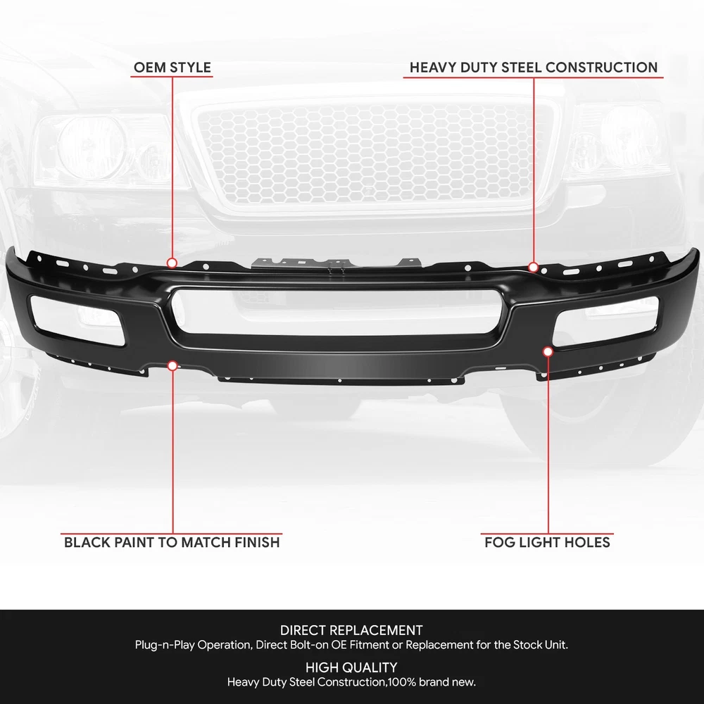 Welcome to Speed Daddy Store Home About Us Feedback Add To Favorites New Arrivals Ending Soon Contact Us For 04-06 Ford F150 Truck Steel Front Bumper Face Bar w/ Fog Lamp Holes Black Product Description Upgrade and replace your standard or worn Front bumper with a new one. Manufactured to be a direct replacement, installation is as simple as removing the old one and installing the new one. Specifics and Features : Plug-n-Play Operation, Direct Bolt-on OE Fitment or Replacement for the Stock Unit Black (Paint to Match) Finish Requires no Modification or Drilling With Fog Light Holes Includes : 1 X Front Bumper Notes : Compatible with: Ford F-150 2004-2006 Fits Models with Fog Lamps 100% Brand New Professional Installation is Highly Recommended Installation Instruction is NOT Included Shipping Payment Returns Terms & Conditions Feedback Contact Us DOMESTIC LOWER 48 US STATES: FREE SALES TAX: CA ONLY VERY IMPORTANT: Double check shipping address. We are not responsible for incorrect or undeliverable addresses. Please use Shipping & Payments tab on top of page for shipping details for your location. Shipping to PR, HI, AK and PO Box addresses will be charged the same as shipping to Canada. GU, VI, SAIPAN will be charged the same as international shipping rate. For Canada shipping please select the lowest price. We do not offer expedited shipping. US Territories such as GU, VI, SAIPAN will be charged the same as CANADA shipping rate. Transaction will be held until a full shipping amount received. Some of the packages cannot be delivered to a PO Box. Customer is responsible to ensure PO Box address given is deliverable by the shipping company. Package will be held until a valid physical address is provided. Customer assumes shipping charges incurred in shipping to undeliverable address. International buyers are responsible for all customs duties, taxes, and other applicable fees incurred by the country's customs/border regulations. Please contact customs for more information. We ship 98% of all orders the same or next business day after payment received/cleared. Please understand that once orders are shipped, we cannot control the transit times thereafter. Most orders will ship via USPS First Class/Priority Mail or FedEx/UPS or the best suitable carrier for the specific size of the product. We are not responsible for any changes to address after item has been shipped. Item will be shipped out within 24 hours after payment cleared, except for weekends and holidays. PayPal e-check takes 3-7 business days to be processed. We will not ship until an e-check has been cleared. 30 Days Free Returns, please notify us within 30 days after you've received your order. Please email us or call us to obtain a RMA (Return Merchandise Authorization) number from us, and have the RMA number written on the return package. Items to be returned must be in resalable condition. All returns are for refund ONLY. No exchange accepted. For emissions related items, please check with your local jurisdiction for emission specific requirements before purchasing. All items do not come with installation instruction unless otherwise specified. If item is questionable, please consult your local professional/mechanic before making purchase. Shipping DOMESTIC LOWER 48 US STATES: FREE SALES TAX: CA ONLY VERY IMPORTANT: Double check shipping address. We are not responsible for incorrect or undeliverable addresses. Please use Shipping & Payments tab on top of page for shipping details for your location. Shipping to PR, HI, AK and PO Box addresses will be charged the same as shipping to Canada. GU, VI, SAIPAN will be charged the same as international shipping rate. For Canada shipping please select the lowest price. We do not offer expedited shipping. US Territories such as GU, VI, SAIPAN will be charged the same as CANADA shipping rate. Transaction will be held until a full shipping amount received. Some of the packages cannot be delivered to a PO Box. Customer is responsible to ensure PO Box address given is deliverable by the shipping company. Package will be held until a valid physical address is provided. Customer assumes shipping charges incurred in shipping to undeliverable address. International buyers are responsible for all customs duties, taxes, and other applicable fees incurred by the country's customs/border regulations. Please contact customs for more information. We ship 98% of all orders the same or next business day after payment received/cleared. Please understand that once orders are shipped, we cannot control the transit times thereafter. Most orders will ship via USPS First Class/Priority Mail or FedEx/UPS or the best suitable carrier for the specific size of the product. We are not responsible for any changes to address after item has been shipped. Payment Item will be shipped out within 24 hours after payment cleared, except for weekends and holidays. PayPal e-check takes 3-7 business days to be processed. We will not ship until an e-check has been cleared. Returns 30 Days money back, please notify us within 30 days after you've received your purchased item. All return requests must be submitted through your eBay account. You have to obtain a RMA (Return Merchandise Authorization) number from us, and have the RMA number written on the return package. Buyers pay for return shipping fee. Items to be returned must be in resalable condition. All returns are for refund ONLY. No exchange accepted. Returns for refund are subject to a 20% restocking fee. Terms & Conditions For emissions related items, please check with your local jurisdiction for emission specific requirements before purchasing. All items do not come with installation instruction unless otherwise specified. If item is questionable, please consult your local professional/mechanic before making purchase. Feedback Contact Us Store Home About Us Feedback Add To Favorites New Arrivals Ending Soon Contact Us Need Help? Contact Us on eBay Subscribe to our New
