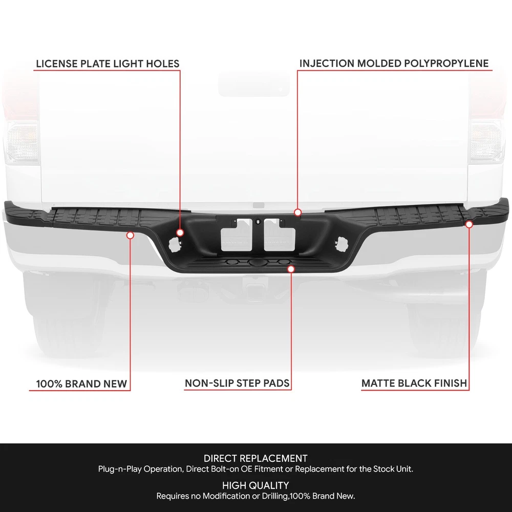 Welcome to Speed Daddy Store Home About Us Feedback Add To Favorites New Arrivals Ending Soon Contact Us For 07-13 Toyota Tundra w/o Offroad Pkg Rear Bumper Side & Center Step Pads Set Product Description Upgrade and replace your standard or worn rear bumper step pads with a new one. Manufactured to be a direct replacement, installation is as simple as removing the old one and installing the new one. Specifics and Features : Plug-n-Play Operation, Direct Bolt-on OE Fitment or Replacement for the Stock Unit Comes with Left & Right Side Step Pads Comes with Center Step Pads Requires no Modification or Drilling Injection Molded Polypropylene Construction Matte Black Finish Snaps into OEM Bumper Holes Includes : 1 X Pair of Side Step Pads 1 X Center Step Pad Notes : Compatible with: Toyota Tundra 2007-2013 Fits Models without offroad Package 100% Brand New Professional Installation is Highly Recommended Installation Instruction is NOT Included Shipping Payment Returns Terms & Conditions Feedback Contact Us DOMESTIC LOWER 48 US STATES: FREE SALES TAX: CA ONLY VERY IMPORTANT: Double check shipping address. We are not responsible for incorrect or undeliverable addresses. Please use Shipping & Payments tab on top of page for shipping details for your location. Shipping to PR, HI, AK and PO Box addresses will be charged the same as shipping to Canada. GU, VI, SAIPAN will be charged the same as international shipping rate. For Canada shipping please select the lowest price. We do not offer expedited shipping. US Territories such as GU, VI, SAIPAN will be charged the same as CANADA shipping rate. Transaction will be held until a full shipping amount received. Some of the packages cannot be delivered to a PO Box. Customer is responsible to ensure PO Box address given is deliverable by the shipping company. Package will be held until a valid physical address is provided. Customer assumes shipping charges incurred in shipping to undeliverable address. International buyers are responsible for all customs duties, taxes, and other applicable fees incurred by the country's customs/border regulations. Please contact customs for more information. We ship 98% of all orders the same or next business day after payment received/cleared. Please understand that once orders are shipped, we cannot control the transit times thereafter. Most orders will ship via USPS First Class/Priority Mail or FedEx/UPS or the best suitable carrier for the specific size of the product. We are not responsible for any changes to address after item has been shipped. Item will be shipped out within 24 hours after payment cleared, except for weekends and holidays. PayPal e-check takes 3-7 business days to be processed. We will not ship until an e-check has been cleared. 30 Days Free Returns, please notify us within 30 days after you've received your order. Please email us or call us to obtain a RMA (Return Merchandise Authorization) number from us, and have the RMA number written on the return package. Items to be returned must be in resalable condition. All returns are for refund ONLY. No exchange accepted. For emissions related items, please check with your local jurisdiction for emission specific requirements before purchasing. All items do not come with installation instruction unless otherwise specified. If item is questionable, please consult your local professional/mechanic before making purchase. Shipping DOMESTIC LOWER 48 US STATES: FREE SALES TAX: CA ONLY VERY IMPORTANT: Double check shipping address. We are not responsible for incorrect or undeliverable addresses. Please use Shipping & Payments tab on top of page for shipping details for your location. Shipping to PR, HI, AK and PO Box addresses will be charged the same as shipping to Canada. GU, VI, SAIPAN will be charged the same as international shipping rate. For Canada shipping please select the lowest price. We do not offer expedited shipping. US Territories such as GU, VI, SAIPAN will be charged the same as CANADA shipping rate. Transaction will be held until a full shipping amount received. Some of the packages cannot be delivered to a PO Box. Customer is responsible to ensure PO Box address given is deliverable by the shipping company. Package will be held until a valid physical address is provided. Customer assumes shipping charges incurred in shipping to undeliverable address. International buyers are responsible for all customs duties, taxes, and other applicable fees incurred by the country's customs/border regulations. Please contact customs for more information. We ship 98% of all orders the same or next business day after payment received/cleared. Please understand that once orders are shipped, we cannot control the transit times thereafter. Most orders will ship via USPS First Class/Priority Mail or FedEx/UPS or the best suitable carrier for the specific size of the product. We are not responsible for any changes to address after item has been shipped. Payment Item will be shipped out within 24 hours after payment cleared, except for weekends and holidays. PayPal e-check takes 3-7 business days to be processed. We will not ship until an e-check has been cleared. Returns 30 Days money back, please notify us within 30 days after you've received your purchased item. All return requests must be submitted through your eBay account. You have to obtain a RMA (Return Merchandise Authorization) number from us, and have the RMA number written on the return package. Buyers pay for return shipping fee. Items to be returned must be in resalable condition. All returns are for refund ONLY. No exchange accepted. Returns for refund are subject to a 20% restocking fee. Terms & Conditions For emissions related items, please check with your local jurisdiction for emission specific requirements before purchasing. All items do not come with installation instruction unless otherwise specified. If item is questionable, please consult your local professional/mechanic before making pu