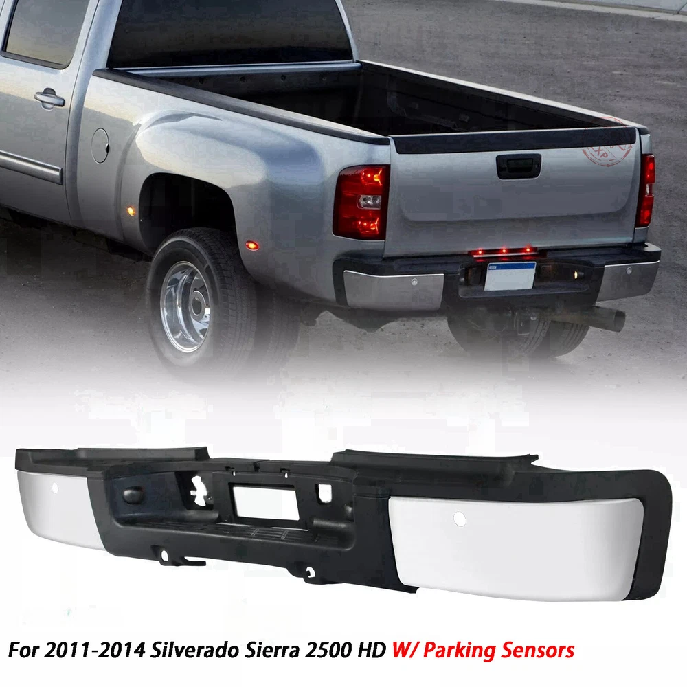 Fitment: For 2011-2014 Chevrolet Silverado 2500 HD 3500 HD For 2011-2014 GMC Sierra 2500 HD 3500 HD For Models With Park Assist Sensors Details Placement on Vehicle:Rear Color:Chrome Material:Steel Package Includes: 1*Rear Bumper Assembly