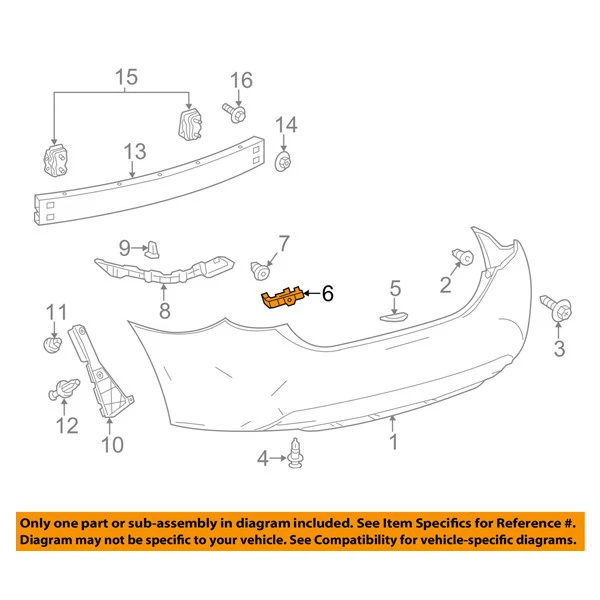BRAND NEW REAR BUMPER COVER RETAINER MOUNTING BRACE BRACKET! High Quality - Certified - Replacement Aftermarket - Made Of Durable Components This item is a Non-Original part Compatible with the following years and models: 2014 2015 2016 2017 2018 2019 Toyota Corolla Trim: 50th Anniversary Special Edition, Base, C, CE, L, LE, LE Eco, SE, SE Plus, XLE, XSE Note: 1.8 & 2.0 Liter Engine - Sedan 4-Door Material: Plastic Placement: Rear (Upper) - Left Driver Side