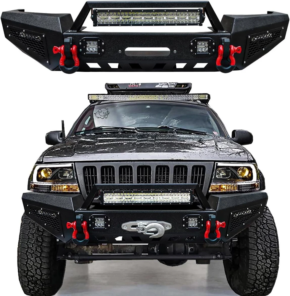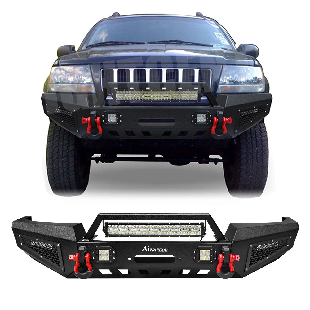 For 1999-2004 Jeep Grand Cherokee WJ Steel Front Bumper W/LED Lights & D-Rings