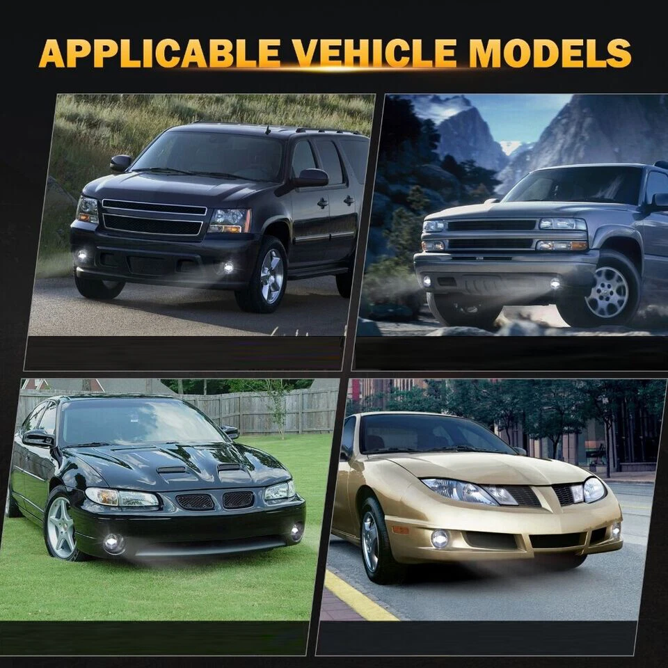 Specification: Product Name: LED Fog Lights for Chevy Diameter: 101mm/3.98 inch Depth: 118.9mm/ 4.68 inch Color Temperature: 6500K Voltage: DC 12V Power19W Lumen: 1064lm Outer Lens Material: PC Outer Lens Color: Clear Housing Material: Die-cast Aluminum Alloy Features: - High brightness-- Upgraded fog lights are much brighter than halogen lights. Built with high-intensity led chips, these fog lights are brighter with minimized glare and light scattering that will make it easier for you to see what lies ahe. -Waterproof function-- After high-intensity testing, even in the cold winter, there is no case where the lights are not lit because of the cold weather,efficient waterproof for all weather conditions. - Easy to Install-- Plug and play. Our LED fog lights have a fixed stand on them, so there is no need to install them. There is no extra wire harness needed. It only takes you 15-20 minutes to finish the installation. -Durable Construction-- The steady housing made of rugged materials is impact scratch-resistant. With internal protection mechanism, which guarantees no flickering or failure. Fitment: Fit for 2001 Chevy Tahoe & Chevrolet Suburban 1500 (Fit Z71 ONLY) Fit for 2002 Chevy Tahoe & Chevrolet Suburban 1500 (Fit Z71 ONLY) Fit for 2003 Chevy Tahoe & Chevrolet Suburban 1500 (Fit Z71 ONLY) Fit for 2004 Chevy Tahoe & Chevrolet Suburban 1500 (Fit Z71 ONLY) Fit for 2005 Chevy Tahoe & Chevrolet Suburban 1500 (Fit Z71 ONLY) Fit for 2006 Chevy Tahoe & Chevrolet Suburban 1500 (Fit Z71 ONLY) Replaces Part #: 16530218, GM2592121 Package included: 2PCS LED Fog Lights Payment Shipping Returns Contact us Feedback Payment Payment methods : Payment is expected within 7 days of auction close. Unpaid Items will be forfeited per eBay . Immediate payment needs to be processed for items with Add to Cart option so that any promotional discounts can be applied to your order immediately. International Buyers – Please Note: a) Import duties, taxes and charges are not included in the item price or shipping charges. These charges are the buyer's responsibility. b) Please check with your country’s customs office to determine what these additional costs will be prior to bidding /bu ying. Shipping 1.All items will be shipped to your eBay Address .Please update your latest address when you check out,and please make sure to provide us with correct,precise and detailed shipping address. 2.If your shipping address and the item location both are US, it will be shipped by USPS or UPS. All items will ship within 1-2 business days after the we receiving clear payment. 3.Service transit time is provided by the carrier. Transit times may be a little delayed during holiday season. 4.International order will be sent from China within 3 business day after the we receiving clear payment. ---For International Orders. Both are the same products and same warranty. Duties and taxes may apply. Please check with your country's custom and eBay policy for more information. 5.Where is my tracking number? Please log on your account, click "my eBay"-->"my summary", or open your email box and find the shipping notification email. Returns Our 30 days Satisfaction Guarantee assures our customers that they will receive all orders promptly and exactly as described. In addition, we offer FREE RETURNS for US buyers. It allows customers to return faulty and unused products for any reason within 30 days from the date of purchase. *Please contact us first before you sent a return request* The seller is responsible for all return shipping, including those due to customer errors or defective items. 1) If you receive an item that is incorrect, damaged, defective or not as described, please contact us for a partial/full refund or replacement. 2) If you want to return the item, please contact us within 30 days after receiving the package. 3) If you open a return request ,please select the reason for return: Doesn't fit/Changed my mind/Just didn't like it/Order by mistake. 4) We provide the 1 year of product warranty. If your product have quality problem within the warranty period, please contact us to provide repair or replacement services to you. Note: Return products must also be in its original condition: including box, packaging and all other accessories Contact us Our Working Time:(GMT+8)Monday to Friday,9:00-18:00. Have Question or Problem? Please contact us first! 1. We will reply you within 24 hours once we receive your email during business days. There will be some delay on response if you send message or E-Mail on weekend. 2. Describe your question clearly. We have a very professional and attentive customer support team. We will give you the best solution by our great communications. 3. We have always been trying to provide the best service and reliable product for every customer. However, sometimes may happen accident. Please contact us solve any issue before leaving a negative feedback. Feedback 1.We appreciate your business and strive to improve our customer service and our commitment to quality. 2.We will leave a positive feedback immediately after payment is received. We appreciate a positive feedback as much as you do. 3.If for some reason there is any issue with the purchase, please contact us prior to leaving feedback, and we will be glad to work with you to have it resolved.