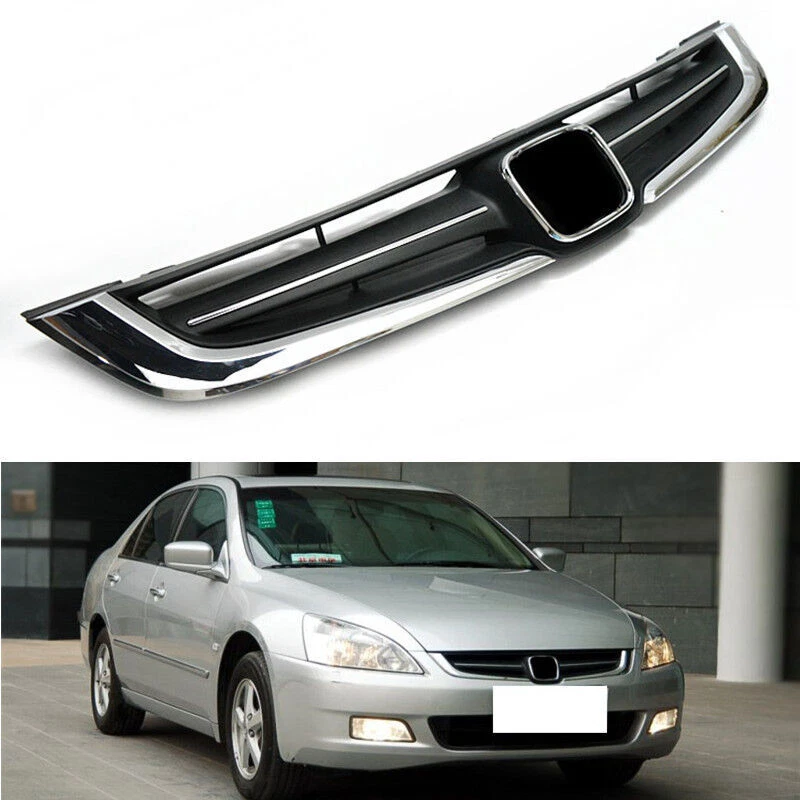 For 2003- 2007 Honda Accord 7th ABS Chrome Front Upper Bumper Mesh Grill Grille
