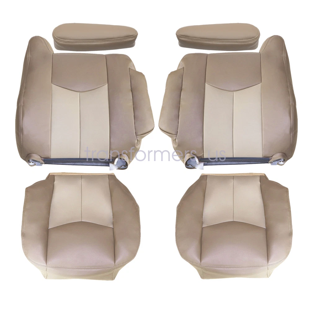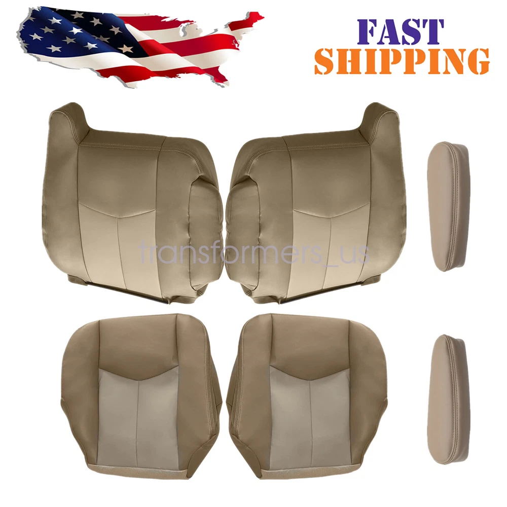 For 2003-2006 GMC Yukon Sierra Denali Driver & Passenger Bottom & Top Cover Tan Replacement For 2003,2004,2005 2006 GMC Sierra And Yukon Denali Driver-Passenger-Bottom-Top-Lean Back Seat Cover & Armrest Cover 2 Tone Tan Specification: Side: Front Driver & Passenger Side Material: Automotive PVC Leather Color: Medium Neutral Tan & Shale Tan (2 Tone) Make: GMC Model: Sierra Denali And Yukon Denali Year: 2003 to 2006 Heated Seats: Fits Heated Seats and Non Heated Seats Power Seats: Fits Power Seats and Non Power Seats Vehicles Inner Liner: 1/2 & 1/4 Inch Padding like Actual Replacement Cover. NOT A SLIP ON or PULLOVER. You will remove the old cover & then install the New Cover. Fitment: 2003 - 2006 GMC Yukon XL 1500 Denali AWD 4X4 2WD 4WD 2003 - 2006 GMC Yukon Denali AWD 4X4 2WD 4WD 2003 - 2007 GMC Sierra 1500 Denali Quad-Cab Extended-Cab 2003 - 2007 GMC Sierra 1500 Denali Crew-Cab 4-Full-Doors Packing Including: 2* Bottom & 2* Top Lean Back Seat Cover & 1 Pair Armrest Cover If you do not know how to install, please contact us,We can provide video installation instructions Tips: This Front Bottom & Top Lean Back Leather Seat Cover & Armrest Cover, built to factory specs with Quality Automotive PVC Leather to match the Interior of your vehicle! Our product is exactly the same as your existing cover and guaranteed to fit perfectly on your seat foam Pad. Please note this item is a replacement, not a slip on or pull over. (Foam pad and frame are not included). Note: Communication is the best way to solve the problem. If you have any problems after purchasing, please contact us in time, before opening return or case. General Policies : Dear customer,if you have any questions,you can contact us,we will provide the best service for you. Shipping policy : The item will be shipped within 24 hours on payment received except the holidays.(except weekends & official holidays). You can log on to eBay to check your logistics tracking number. Please confirm address before purchase, and cannot change address once purchased. If you need to receive the item quickly, please contact us, you can pay the postage to choose other logistics. Payment: Please purchase and pay for the item through the eBay,only accpected the paypal payment. Returns: Please contact us first when return, exchange and refund is required. Any direct return of purchased items will not be processed. Item must be returned in new condition, as received with all accompanied accessories and literature, including the factory carton. Shipping, handling is not refundable unless item is returned because of defect. If the product is defective or damage upon arrival,please contact us immediately,we will provide the solve the problem. Returns accepted within 30 days of delivery date and item must be in new condition. About us: Our goal is complete customer satisfaction. We will be very honored to provide you with quality service. If there is an issue with shipping or the item you purchased please contact us via ebay message or call us before opening a case or leaving feedback.We will try our best to resolve any kind of issue. For 2003-2006 GMC Yukon Sierra Denali Driver & Passenger Bottom & Top Cover Tan Replacement For 2003,2004,2005 2006 GMC Sierra And Yukon Denali Driver-Passenger-Bottom-Top-Lean Back Seat Cover & Armrest Cover 2 Tone Tan Specification: Side: Front Driver & Passenger Side Material: Automotive PVC Leather Color: Medium Neutral Tan & Shale Tan (2 Tone) Make: GMC Model: Sierra Denali And Yukon Denali Year: 2003 to 2006 Heated Seats: Fits Heated Seats and Non Heated Seats Power Seats: Fits Power Seats and Non Power Seats Vehicles Inner Liner: 1/2 & 1/4 Inch Padding like Actual Replacement Cover. NOT A SLIP ON or PULLOVER. You will remove the old cover & then install the New Cover. Fitment: 2003 - 2006 GMC Yukon XL 1500 Denali AWD 4X4 2WD 4WD 2003 - 2006 GMC Yukon Denali AWD 4X4 2WD 4WD 2003 - 2007 GMC Sierra 1500 Denali Quad-Cab Extended-Cab 2003 - 2007 GMC Sierra 1500 Denali Crew-Cab 4-Full-Doors Packing Including: 2* Bottom & 2* Top Lean Back Seat Cover & 1 Pair Armrest Cover If you do not know how to install, please contact us,We can provide video installation instructions Tips: This Front Bottom & Top Lean Back Leather Seat Cover & Armrest Cover, built to factory specs with Quality Automotive PVC Leather to match the Interior of your vehicle! Our product is exactly the same as your existing cover and guaranteed to fit perfectly on your seat foam Pad. Please note this item is a replacement, not a slip on or pull over. (Foam pad and frame are not included). Note: Communication is the best way to solve the problem. If you have any problems after purchasing, please contact us in time, before opening return or case. General Policies : Dear customer,if you have any questions,you can contact us,we will provide the best service for you. Shipping policy : The item will be shipped within 24 hours on payment received except the holidays.(except weekends & official holidays). You can log on to eBay to check your logistics tracking number. Please confirm address before purchase, and cannot change address once purchased. If you need to receive the item quickly, please contact us, you can pay the postage to choose other logistics. Payment: Please purchase and pay for the item through the eBay,only accpected the paypal payment. Returns: Please contact us first when return, exchange and refund is required. Any direct return of purchased items will not be processed. Item must be returned in new condition, as received with all accompanied accessories and literature, including the factory carton. Shipping, handling is not refundable unless item is returned because of defect. If the product is defective or damage upon arrival,please contact us immediately,we will provide the solve the problem. Returns accepted within 30 days of delivery date and item must be in new condition. About us: Our goal is complete customer satisfaction. We will be very honored