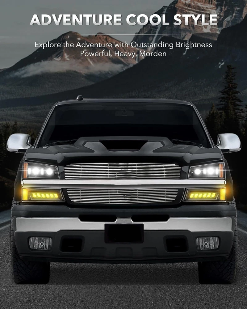 SPECIFICATIONS Replace Part Number: GM2502224, GM2503224, GM2502257, GM2503257, GM2520185, GM2521185, 15199557, 2520185, 2521185, 15199556, 10366037,10396913,15207137, 10366038,10396912 Height(Headlight):189mm/ 7.44 inch Width(Headlight):348mm/ 13.7 inch Height(Signal lights):131mm/5.16 inch Width(Signal lights):397mm/ 15.6 inch Power(Headlight): 84W@High Beam, 54W@Low Beam Lumen(Headlight):4700lm@High Beam, 2500lm@Low Beam Input Voltage:12V DC Outer Lens Material: PC Housing Material: PC+ABS Certification: DOT Waterproof Rate: IP67 FEATURES The First Integrated LED Headlights: The all-In-One creative optic design combined with 4 Practical Lighting Functions - High Beam, Low Beam, Turn Signals, and Side Markers. [High Beam: 168W@9400LM/Set, Low Beam: 108W@5000LM/Set] Provide you with 600% brighter than stock halogens and 4 times brightness of other ordinary LED bulbs. Exclusive "Z" Shaped Beam Pattern: Our led headlights are designed with a scientific and clear "Z" cut-off line , providing you with a proper lighting area and distance, which will not blind oncoming traffic to keep you safe. Truly Hassle-Free Installation Plug N Play: Our headlight kit comes with all the necessary parts you need to install, no need to buy extra bulbs and wiring harnesses. 100% alignment with no gaps , no wiring cutting, and modification needed. More Excellent IP67 Waterproof Performance: Compared with the housings with holes in the market, our headlights utilize a compact integrated design , built with strong adhesive and 8 one-way breathing valves to prevent moisture in all extreme weather conditions with no corrosion or fogging. 50,000hrs Longer Service Life: Fully sealed heavy-duty housing, high-intensity led chips, and shatterproof & anti-yellowing PC lens to ensure long-term stable usage, avoiding frequent replacement. Installation Small Tips: 1. Please flip the connector plugs/polarity 180 ° around when the lights did not come on. (The connector plug could be plug-in both ways) 2. For the safety guard, please check all the mounting tabs/points are tightly mounted and aligned before driving. FITMENTS For 2003-2006 Chevy Silverado 1500/1500 HD For 2003-2004 Chevy Silverado 2500 For 2003-2006 Chevy Silverado 2500 HD/3500 For 2007 Chevy Silverado 1500 Classic /1500 HD Classic /2500 HD Classic /3500 Classic For 2003-2006 Chevy Avalanche 1500/2500 Pickup (Without Body Cladding) PACKAGE INCLUDES 2 pcs of LED Headlights (DRL, High Beam, Low Beam) 2 pcs of LED Bumper Lights (DRL, Turn Signal, Side Marker) 1 copy of Installation instruction PRODUCT DISPLAY Payment Shipping Returns Contact us Feedback Payment Payment methods : Payment is expected within 7 days of auction close. Unpaid Items will be forfeited per eBay . Immediate payment needs to be processed for items with Add to Cart option so that any promotional discounts can be applied to your order immediately. International Buyers – Please Note: a) Import duties, taxes and charges are not included in the item price or shipping charges. These charges are the buyer's responsibility. b) Please check with your country’s customs office to determine what these additional costs will be prior to bidding /bu ying. Shipping 1.All items will be shipped to your eBay Address .Please update your latest address when you check out,and please make sure to provide us with correct,precise and detailed shipping address. 2.If your shipping address and the item location both are US, it will be shipped by USPS or UPS. All items will ship within 1-2 business days after the we receiving clear payment. 3.Service transit time is provided by the carrier. Transit times may be a little delayed during holiday season. 4.International order will be sent from China within 3 business day after the we receiving clear payment. ---For International Orders. Both are the same products and same warranty. Duties and taxes may apply. Please check with your country's custom and eBay policy for more information. 5.Where is my tracking number? Please log on your account, click "my eBay"-->"my summary", or open your email box and find the shipping notification email. Returns Our 30 days Satisfaction Guarantee assures our customers that they will receive all orders promptly and exactly as described. In addition, we offer FREE RETURNS for US buyers. It allows customers to return faulty and unused products for any reason within 30 days from the date of purchase. *Please contact us first before you sent a return request* The seller is responsible for all return shipping, including those due to customer errors or defective items. 1) If you receive an item that is incorrect, damaged, defective or not as described, please contact us for a partial/full refund or replacement. 2) If you want to return the item, please contact us within 30 days after receiving the package. 3) If you open a return request ,please select the reason for return: Doesn't fit/Changed my mind/Just didn't like it/Order by mistake. 4) We provide the 1 year of product warranty. If your product have quality problem within the warranty period, please contact us to provide repair or replacement services to you. Note: Return products must also be in its original condition: including box, packaging and all other accessories Contact us Our Working Time:(GMT+8)Monday to Friday,9:00-18:00. Have Question or Problem? Please contact us first! 1. We will reply you within 24 hours once we receive your email during business days. There will be some delay on response if you send message or E-Mail on weekend. 2. Describe your question clearly. We have a very professional and attentive customer support team. We will give you the best solution by our great communications. 3. We have always been trying to provide the best service and reliable product for every customer. However, sometimes may happen accident. Please contact us solve any issue before leaving a negative feedback. Feedback 1.We appreciate your business and strive to improve our customer s