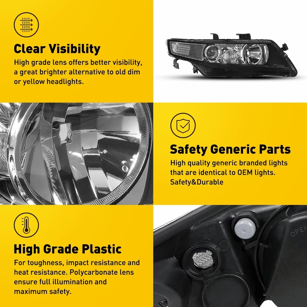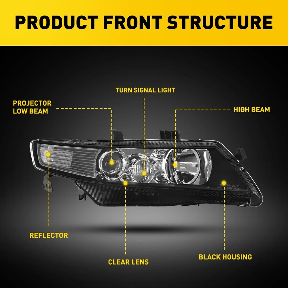 Fit for: 2004-2008 Acura TSX (CL9) Specifications: OE number: AC2519106, AC2518106,AC2503112 AC2502112 33151SECA11, 33101SECA11,33101SECA62 33151SECA62 Material: ABS+PC (ABS Plastic Housing/Polycarbonate lens) Appearance color: 1.Housing Color: Black 2.Lens Color:Clear 3.Reflector Color:White Note: Projector √ (Include???/span> DRL × (Not Include) Bulb × (Not include) Features: *Easy to install: Direct replacement, drilling and cutting are not required. *Superior quality: For 2004-2008 (CL9) Acura Headlight Housing TSX Black Projector 2pcs Left&Rifht Fit for: 2004-2008 Acura TSX (CL9) Specifications: OE number: AC2519106, AC2518106,AC2503112 AC2502112 33151SECA11, 33101SECA11,33101SECA62 33151SECA62 Material: ABS+PC (ABS Plastic Housing/Polycarbonate lens) Appearance color: 1.Housing Color: Black 2.Lens Color:Clear 3.Reflector Color:White Note: Projector √ (Include???/span> DRL × (Not Include) Bulb × (Not include) Features: *Easy to install: Direct replacement, drilling and cutting are not required. *Superior quality: Made of ABS and PC materials with toughness and heat resistance functions to ensure its long service life and durability. *Angle adjustment: Equipped with a headlamp Angle adjustment knob, you can adjust the best Angle of view through the knob. *Suggestion: 1.Please confirm the OE number before purchasing!!! 2.Professional installation is required!!! Packaging include: Headlights*2(Left+Right) Item Specifics Brand AUXITO Number of Bulbs No Bulbs Included Type Headlight Assembly Features Projector Housing Placement on Vehicle Front OE/OEM Part Number AC2519106, AC2518106,AC2503112 AC2502112 Interchange Part Number 33151SECA11, 33101SECA11,33101SECA62 33151SECA62 Dust & Moisture Resistance Yes Manufacturer Warranty 5 Years Lens Color Clear Housing Color Black Material ABS Plastic Housing / Polycarbonate Lens Payment 1. Instant PayPal payment is the preferred method of payment. We also accept payment via PayPal, DebitCard, Visa, MasterCard, Discover. 2. Before payment,Please keep the consistency of Paypal address and ebay address. 3. Quantity orders are welcome! Shipping 1. All items will be shipped in 24 hours after receiving your payment . 2. We ship this item to US only via USPS first class mail. It usually takes 3-6 working days to deliver. Returns 1. We offer free return & money back guarantee. If you are not satisfied with your purchase for any reasons, you can return the item for refund or replacement/exchange. All returns must include the original packaging. (Please refer to our return policy for details.) 2. If you don't return goods within 60 days from date of purchase, your right to cancel will be revoked. Any items damaged because of incorrect installation will not be refunded. Please contact us for return or troubleshooting help prior to returning any products. Contact Us 1. Negative feedback will not help resolve any problems you have, please contact us via eBay messages before leaving negative feedback, our customer service will make best effort to help you with the issues. 2. We maintain high standards of excellenceand strive for 100% customer satisfaction! Feedback is very important to us. We request that you contact us immediately Before you give us neutral or negative feedback, so that we can satisfactorily address your concerns. FAQ 1. Can you tell me when my order will be shipped? Actually we will ship the item within 1 business day after receiving orders. But USPS need to take longer time to update tracking info and arrange delivery during the challenging time for now. If your order was not shipped more than 3 business days, please contact us with your order number to get quick support. 2. My item has not arrived, what's taking so long? Sometimes items take longer than expected, especially if it's going far or to rural area. Check with your post office to see if your item has been held up. Sometimes USPS will not update a tracking number until it has arrived at its destination. If your item still has not arrived after a few days, let us know so we can double check for you and help solve it asap. 3. Do you ship to Canada, United Kingdom, Australia, etc.? Unfortunately, we could only ship to United States (Domestic shipment) at the moment. 4. I bought the wrong items/ the items were not compatible with my vehicle. Please contact us via ebay message to get quick support. DESCRIPTION PAYMENT SHIPPING RETURN POLICY CONTACT US Hot Item Fit for 1999-2004 Ford Left Mustang & Halogen Right Side Headlights Headlamps USD 79.99 FOR 1999-2005 VW Jetta/Bora MK4 Models Only HEADLIGHTS Black HOUSING Clear Pair USD 86.99 AUXITO 9006 LED Headlights lights fog Bulbs Kit 6500K Low High Beam Super White USD 19.99 Socket Headlight Harness Wire Plug Connector For 2007-2014 Chevy Silverado 1500 USD 15.19 1PC Headlight Harness Wiring 25962806 For Chevy 2007-14 Silverado 1500 3500 2500 USD 15.99 New List Item Amber Clear Corner Parking Marker Signal Light Housing For 2006-07 Charger Base USD 18.99 Ignition Lock Cylinder Black Bezel with Key for 1996-1997 Ford Aerostar USD 13.99 For 2001-2009 Mazda B2300 Ignition Switch Lock Cylinder Tumbler 2 Keys USD 13.99 Front License Plate Holder Bracket Frame For 2019-19 Chevrolet Silverado 1500 LD USD 24.99 Corner Parking Marker Signal Lights Housings ABS For 2006 Charger Daytona R/T USD 18.99 Excellent Delivery For 2004-2008 (CL9) Acura Headlight Housing TSX Black Projector 2pcs Left&Rifht Fit for: 2004-2008 Acura TSX (CL9) Specifications: OE number: AC2519106, AC2518106,AC2503112 AC2502112 33151SECA11, 33101SECA11,33101SECA62 33151SECA62 Material: ABS+PC (ABS Plastic Housing/Polycarbonate lens) Appearance color: 1.Housing Color: Black 2.Lens Color:Clear 3.Reflector Color:White Note: Projector √ (Include???/span> DRL × (Not Include) Bulb × (Not include) Features: *Easy to install: Direct replacement, drilling and cutting are not required. *Superior quality: Made of ABS and PC materials with toughness and heat resistance function