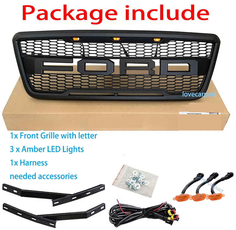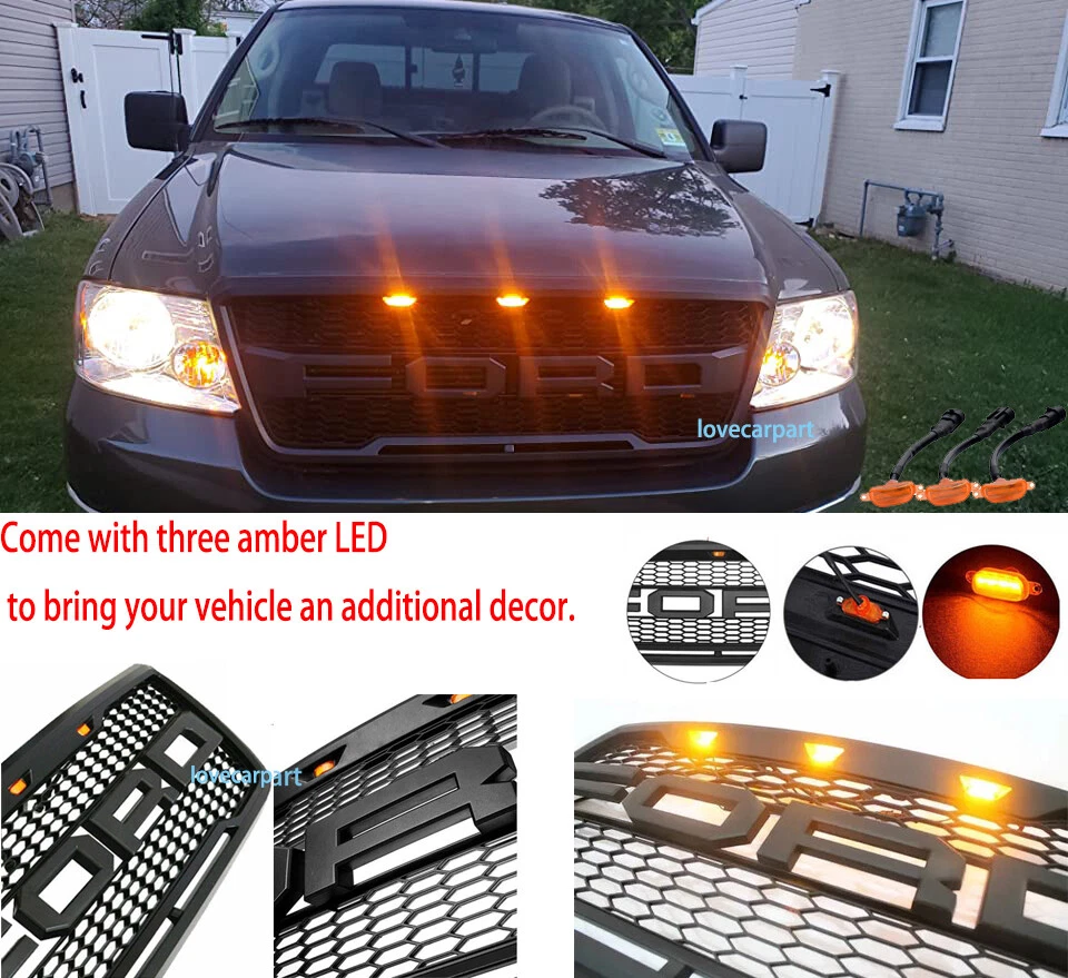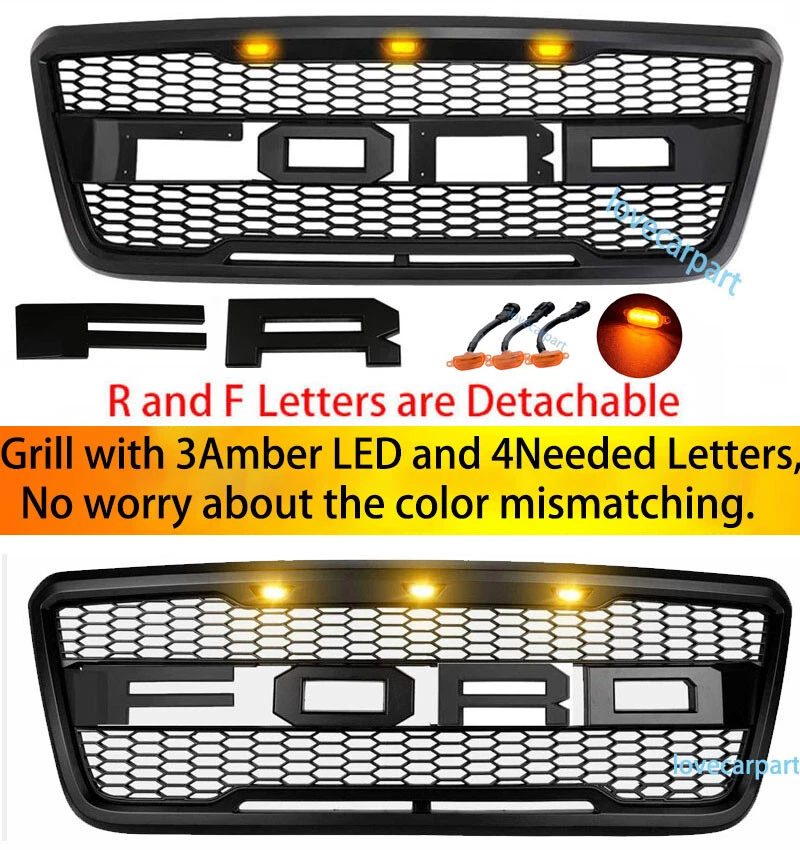 Product Description Grille For Ford F150 2004 2005 2006 2007 2008 New Raptor Style Grill With LED Matte Black Specification: Condition:100% brand new Color: Matte black Material: Durable ABS Plastic FR Letter is detachable,you could paint the grill in color you need. Q:Wha t you will got? A:Package inclued: 1x Grille with Letters 3x Amber LED Lights 1x Harness for LED Lights Q:Need to buy letter from other seller ? A:No,our grill come with 4letter. F*O*R*D Q:How to install? A: Grille is a direct fitment. Uses the cars existing bolts to install. Tip:installation video can be found by searching : F150 grill 2004 install : on YouTube. If you have any problem with the fitment or installation.Plz feel free to message us,we will send you the link of video to install it. About Items: 1. Grill with 4 Letters(F-O-R-D)You could paint the grill in color you like! 2. Including 3 amber LED lights with Needed Harness . 3. Made of high quality ABS plastic. Strict Factory QC test , High Quality guaranteed 4. Raptor style OEM fitment, no cutting or drilling required. 5. Provides better airflow to the radiator to help the cooling process better. About Us Payment Shipping Terms Contact Us ~~Please leave us positive feedback if you are satisfied with our product and service, if not please contact us,we will solve your problem asap, many thanks~ Figo is one of US’s fastest growing online retailersWith our best effort, we are now trusted by more than 100,000 customers nationwide. We are dedicated to offering you an unrivalled choice of products with unbeatable low price and best quality. 1.We accept PayPal only. 2.All major credit cards are accepted through secure payment processor PayPal. 3.Payment must be received within 7 business days of auction closing. 4.We ship to your eBay or Paypal address. Please make sure your eBay ID、contact and Paypal address is correct before you pay. Handling time We ship within ONE Working day after we received your cleared payment. Shipping ways 1.We check all items before sending out. All products are brand new, never been used or refurbished. 2.Shipping way:Standard Shipping ( mostly 3-5 days ) 3.Most packets arrive in 3-5 days.If there is any delay,it may be caused by bad weather/warehouse overcrouded/ irresistible force or custom inspection . If you need the item urgently,please contact us about extra shipping cost for express shipping. 4.We are not responsible for wrong or undeliverable address. We only accept PayPal verified and confirmed address. Please make sure your shipping address is correct and deliverable. If you need to change your address, please change it in PayPal first before you pay. 1.If item is defective and not working on arrival, please contact us within 7 days of receiving the defective for repair or refund.Refund will only be provided for products damaged in the post or which is defective. Item may be returned within 14 days of purchase upon your receipt.All items returned must contain all original packaging materials. 2.This item have 2 Years warranty. We offer free repairing service within 6 months from the date of purchased. If damaged is caused by undue wear and tear, dirt, misused, improper installation/operation, accident or repaired by unauthorized person, the warranty becomes void. 3.Please message us if you have any problem.Please contact us before you return the item. 4.Buyer is responsible for the return postage. If you ask for a refund during valid period, we will offer you a refund without postage charges. Shipping and handling charges, insurance are not refundable in any case. We are only responsible for once re-sending expense for replacement due to defects. Any questions, pls contact us via ebay message or email us.We will reply your message within 48 hours. If you do not receive our reply within 48 hours, pls post a message again because sometimes our message system may block some emails. About Us ~~Please leave us positive feedback if you are satisfied with our product and service, if not please contact us,we will solve your problem asap, many thanks~ Figo is one of US’s fastest growing online retailersWith our best effort, we are now trusted by more than 100,000 customers nationwide. We are dedicated to offering you an unrivalled choice of products with unbeatable low price and best quality. Payment 1.We accept PayPal only. 2.All major credit cards are accepted through secure payment processor PayPal. 3.Payment must be received within 7 business days of auction closing. 4.We ship to your eBay or Paypal address. Please make sure your eBay ID、contact and Paypal address is correct before you pay. Shipping Handling time We ship within ONE Working day after we received your cleared payment. Shipping ways 1.We check all items before sending out. All products are brand new, never been used or refurbished. 2.Shipping way:Standard Shipping ( mostly 3-5 days ) 3.Most packets arrive in 3-5 days.If there is any delay,it may be caused by bad weather/warehouse overcrouded/ irresistible force or custom inspection . If you need the item urgently,please contact us about extra shipping cost for express shipping. 4.We are not responsible for wrong or undeliverable address. We only accept PayPal verified and confirmed address. Please make sure your shipping address is correct and deliverable. If you need to change your address, please change it in PayPal first before you pay. Terms 1.If item is defective and not working on arrival, please contact us within 7 days of receiving the defective for repair or refund.Refund will only be provided for products damaged in the post or which is defective. Item may be returned within 14 days of purchase upon your receipt.All items returned must contain all original packaging materials. 2.This item have 2 Years warranty. We offer free repairing service within 6 months from the date of purchased. If damaged is caused by undue wear and tear, dirt, misused, improper installation/operation, accident or repaired 
